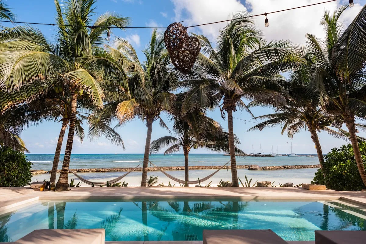 With its gorgeous beachfront location, charming hacienda-style architecture, and range of luxury amenities, Hacienda Corazon is a Riviera Maya vacation rental after your heart. Reserve its ten bedrooms for a getaway with up to twenty friends or extended family, or book with its two sister villas to host a family reunion, milestone celebration, or destination wedding.