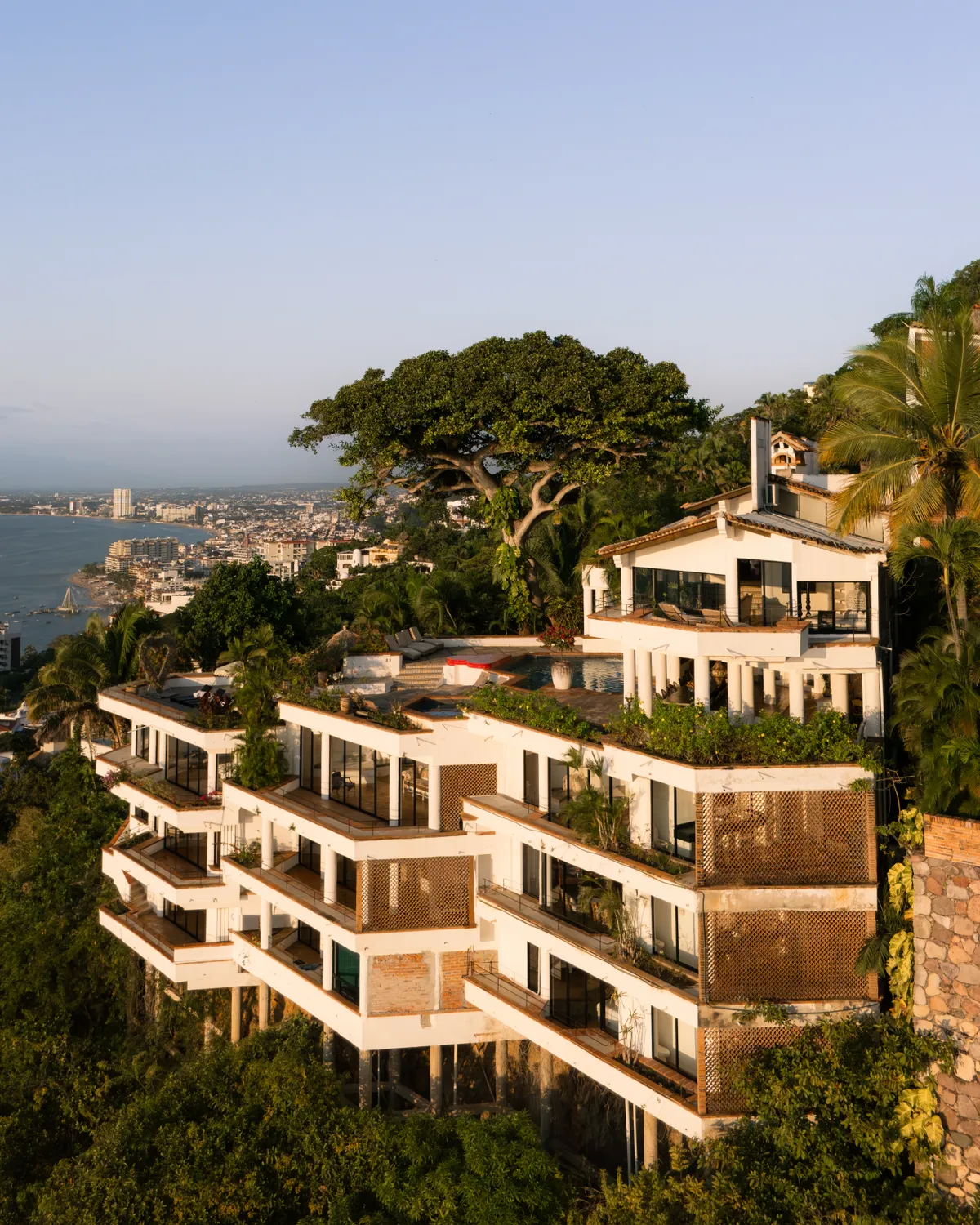 Set on a lush hillside above the Bay of Banderas, this elegant private Hacienda has uninterrupted views stretching from Los Arcos islands to Punta Mita. Though located just minutes from downtown Puerto Vallarta, the setting feels calm and secluded, offering a rare sense of space and privacy. The architecture blends classic Mexican craftsmanship with clean, contemporary design. Natural materials, artisanal details, and open-air living spaces create an atmosphere that feels refined yet relaxed. Spanning approximately 33,000 square feet, the home flows easily between indoors and out, designed to be both comfortable and generous in scale.