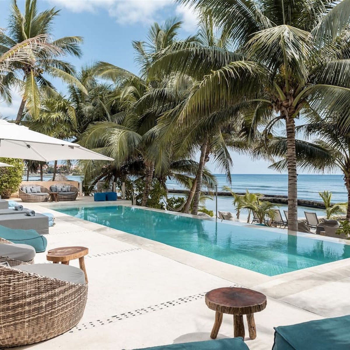 Discover the spectacular Hacienda del Mar in Puerto Aventuras! A place where dreams are made and memories last a lifetime. This magnificent fully staffed Mexican Hacienda-inspired beach villa with 15 luxurious suites is located on sandy shores in an exclusive private community in the Mexican Caribbean! Hacienda del Mar is perfect for families, groups, weddings, events, corporate incentives, yoga retreats, and more. Experience blissful sunny days pool and beachside chillaxing.