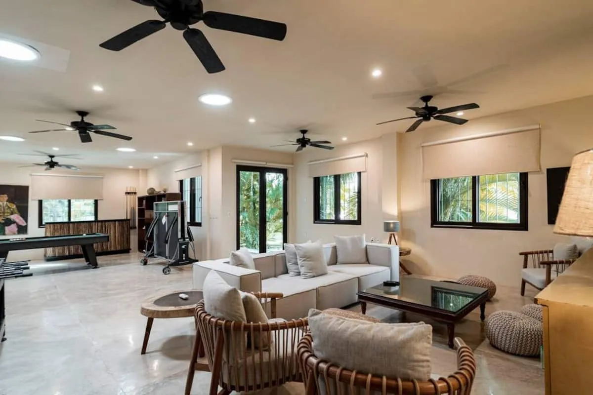 The main villa with 7 suites boasts 3 gorgeous master suites, each have breathtaking beach and ocean views to wake up with. There are 2 guests houses in the grounds, each with 4 suites. There is a games room with billiard and ping pong tables, to delight the young and young at heart.