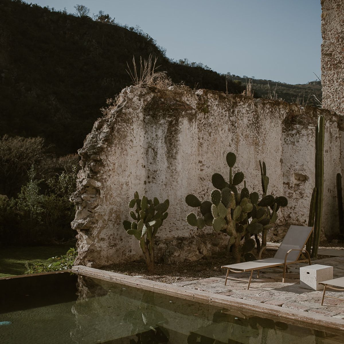 El Aguacate is the personal creation of architecture studio GOMA, a 19th-century mill brought back to life as a contemporary sanctuary on 30 hectares of quiet, open land in Querétaro. The spirit of the place remains intact: thick stone walls, old foundations, and a design that lets the landscape speak.