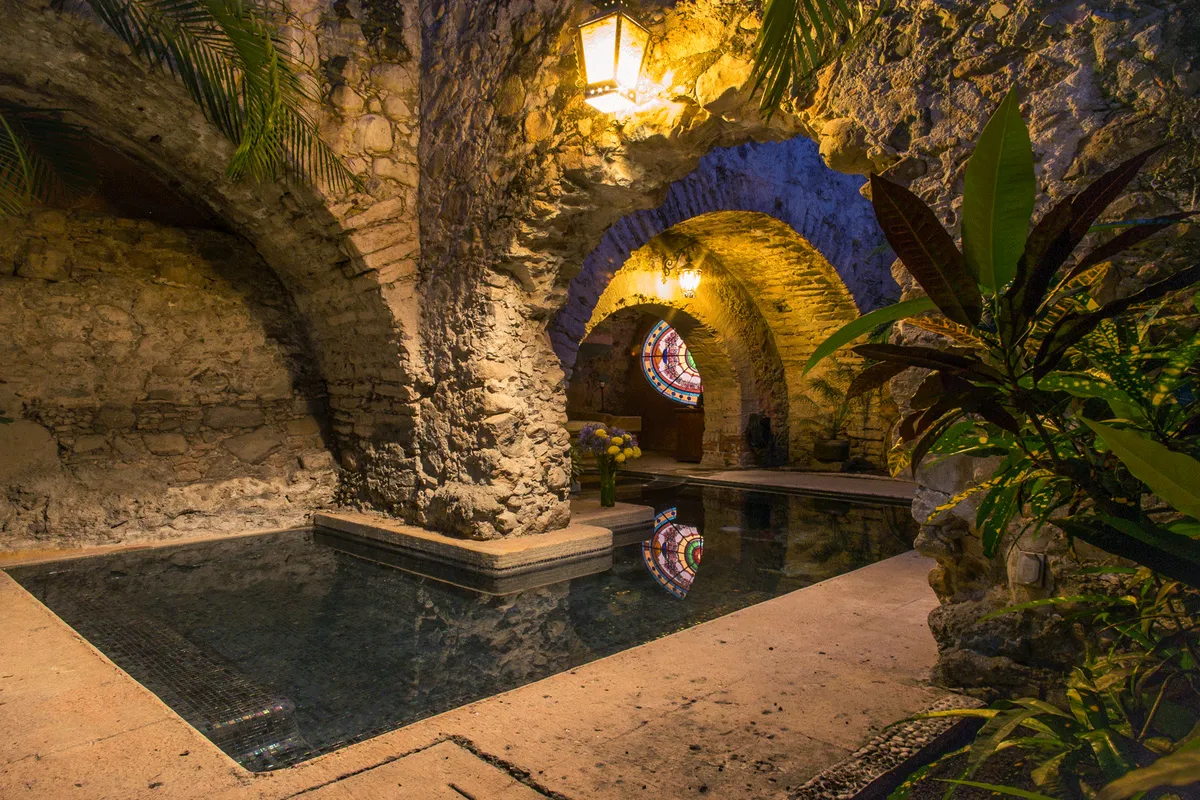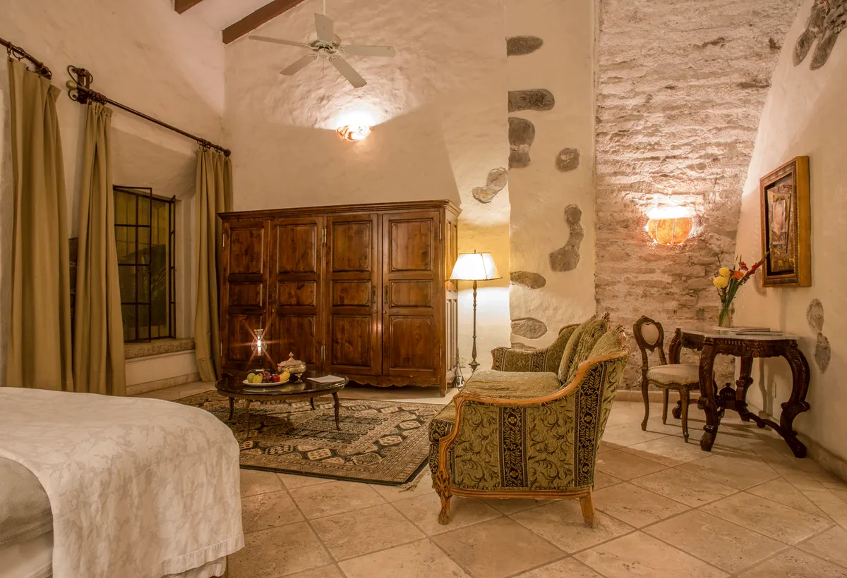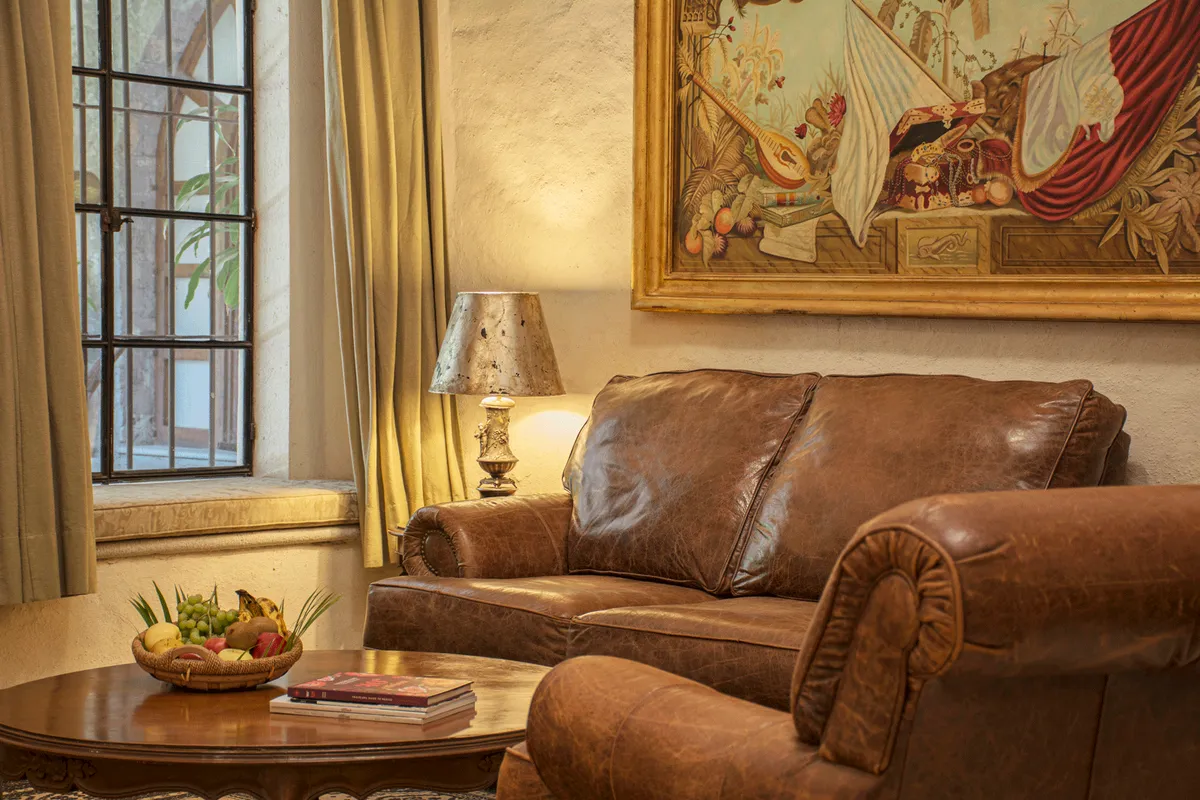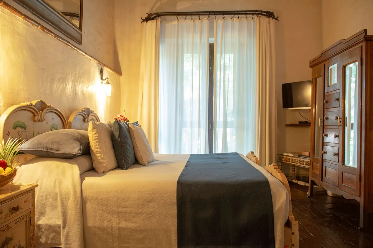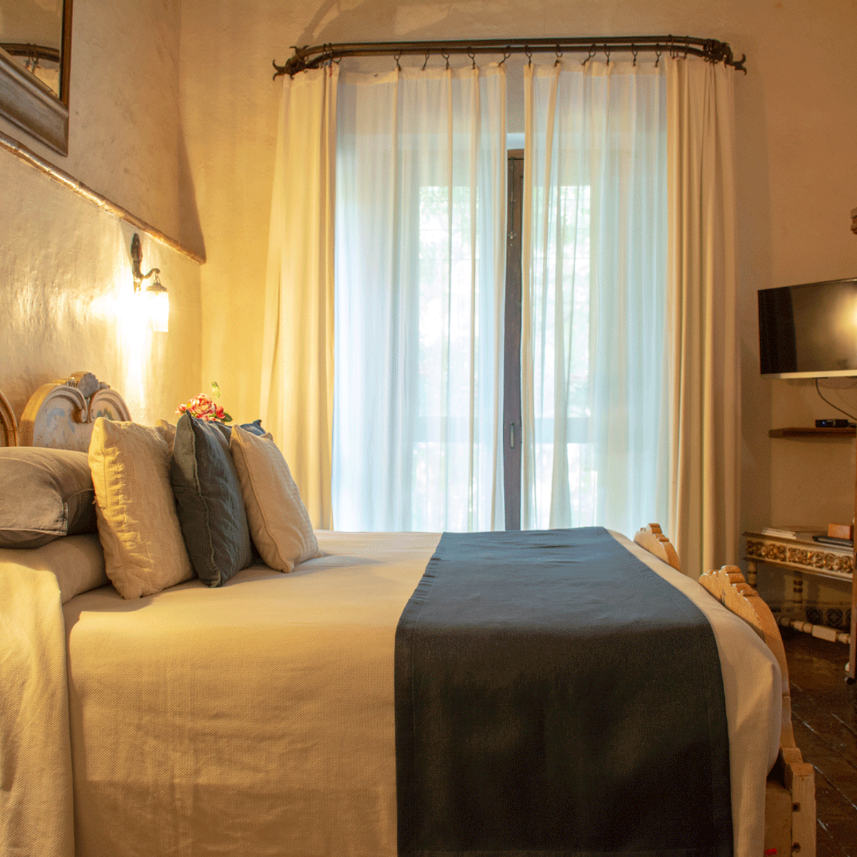 The property has 20 individually styled suites spread across historic buildings—some carved into original aqueducts, others with private jacuzzis, plunge pools, or garden terraces. Vaulted ceilings, antique stonework, and hand-crafted furnishings echo its heritage while offering modern comfort.