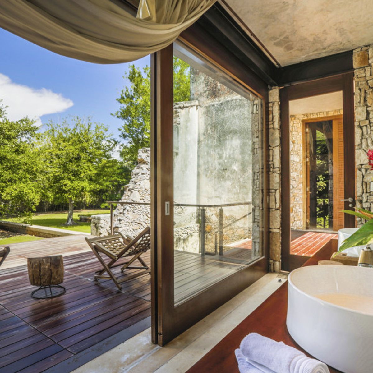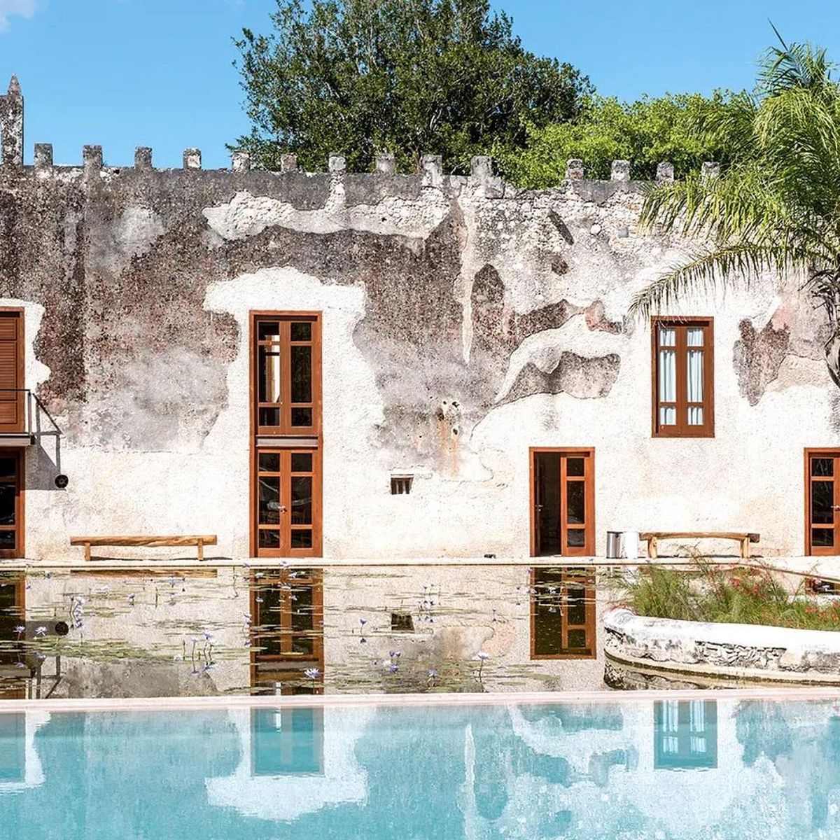 Conceptualized by a team of architects including Mario Peniche, Alejandro Vales, Augusto Quijano, Javier Muñoz, and Jorge Carlos Zoreda, this 6-bedroom colonial-era hacienda is one of the most breathtaking renovations in our collection. The project sought to embrace both the past and present by carefully preserving the existing ruins and adding exquisite contemporary accents.