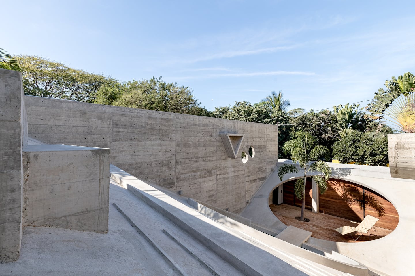 Designed by renowned French architect Ludwig Godefroy in "Brutalist" style, the home offers unique a indoor/outdoor living experience, with gardens and the private pool integrated into the living areas.