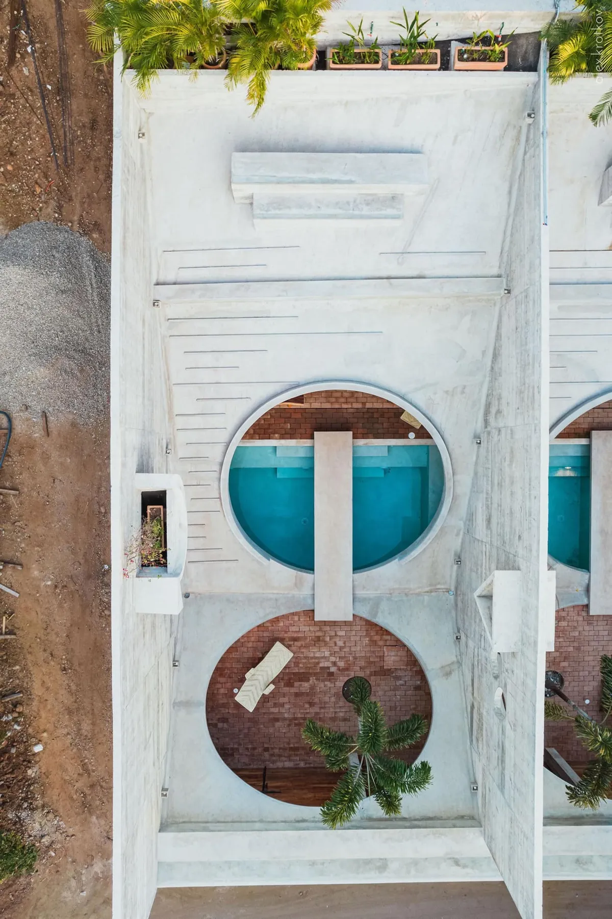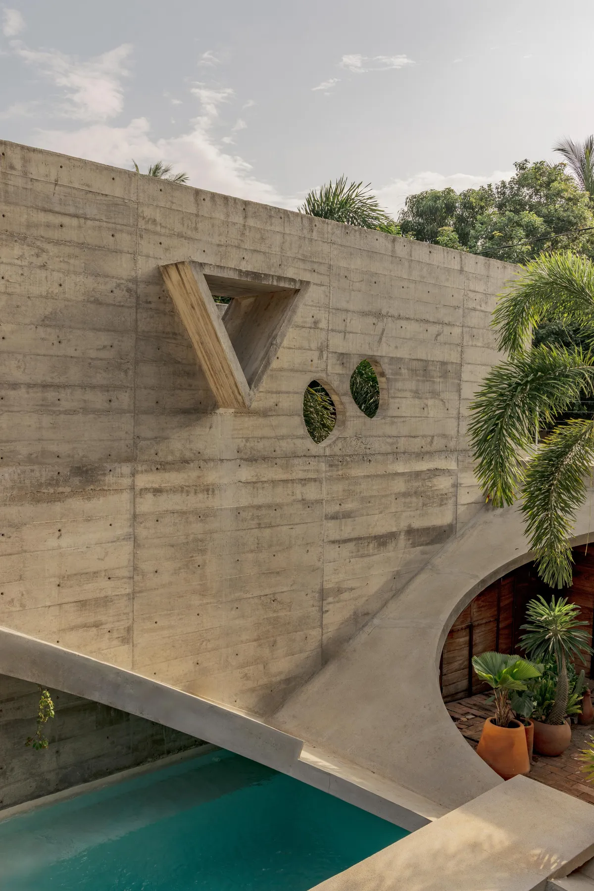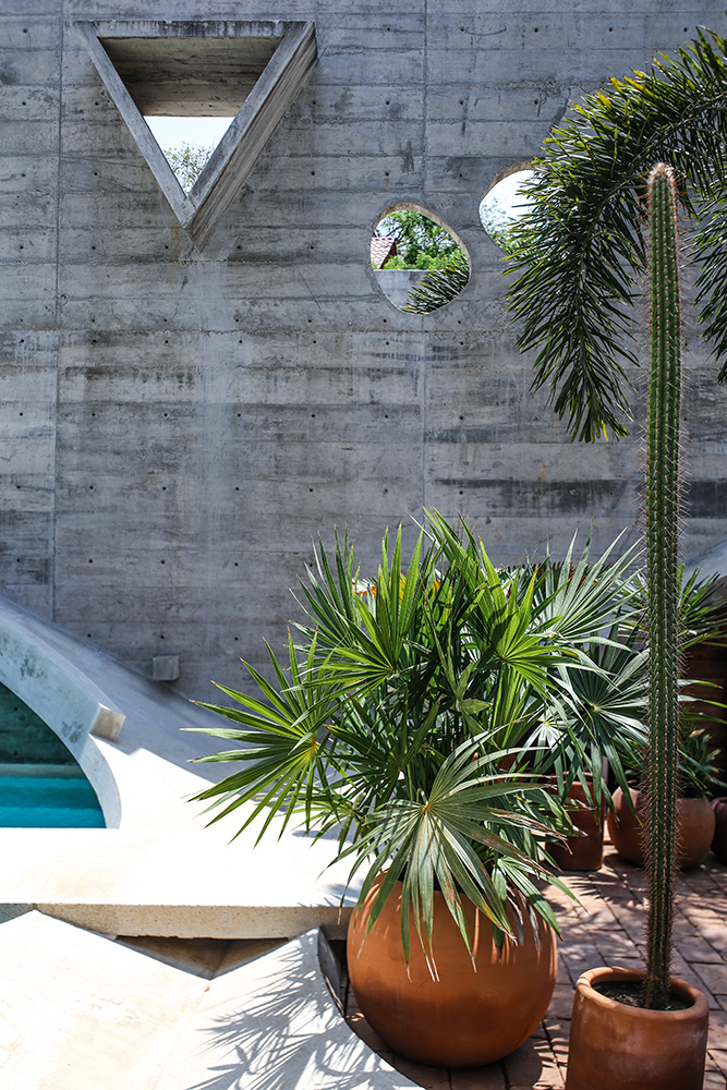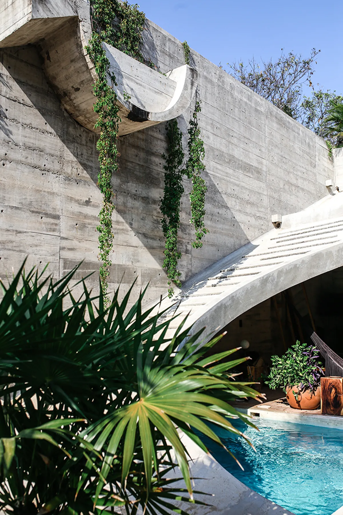 Designed by renowned French architect Ludwig Godefroy in "Brutalist" style, the home offers unique a indoor/outdoor living experience, with gardens and the private pool integrated into the living areas.