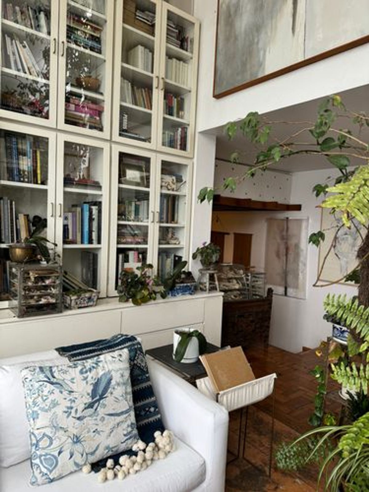 The highlights of Artist's Atelier include a stunning third floor sunroom filled with plants, a rooftop garden, and an unrivaled art and book collection.