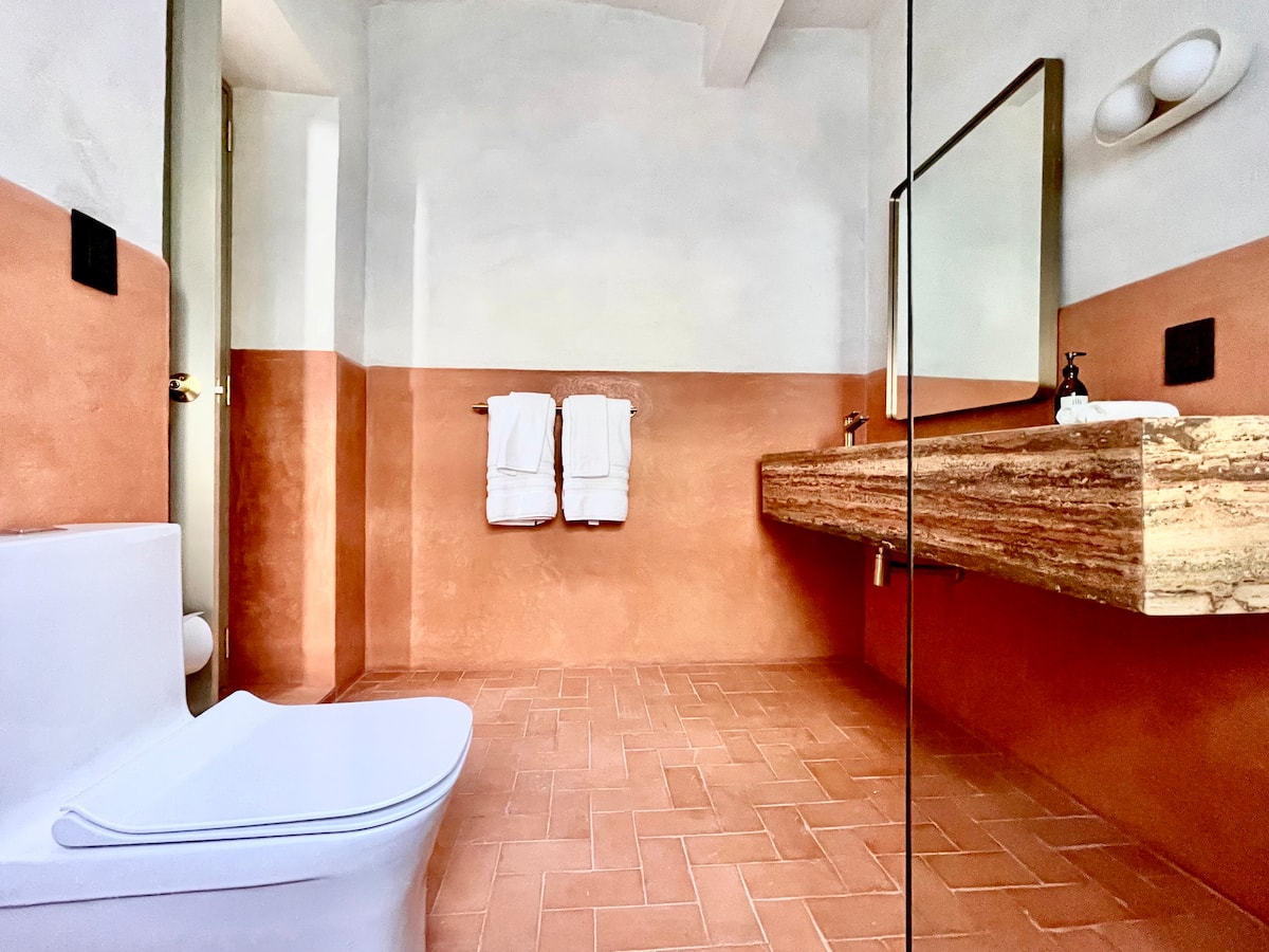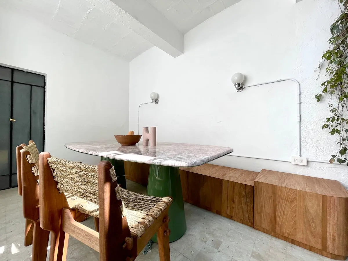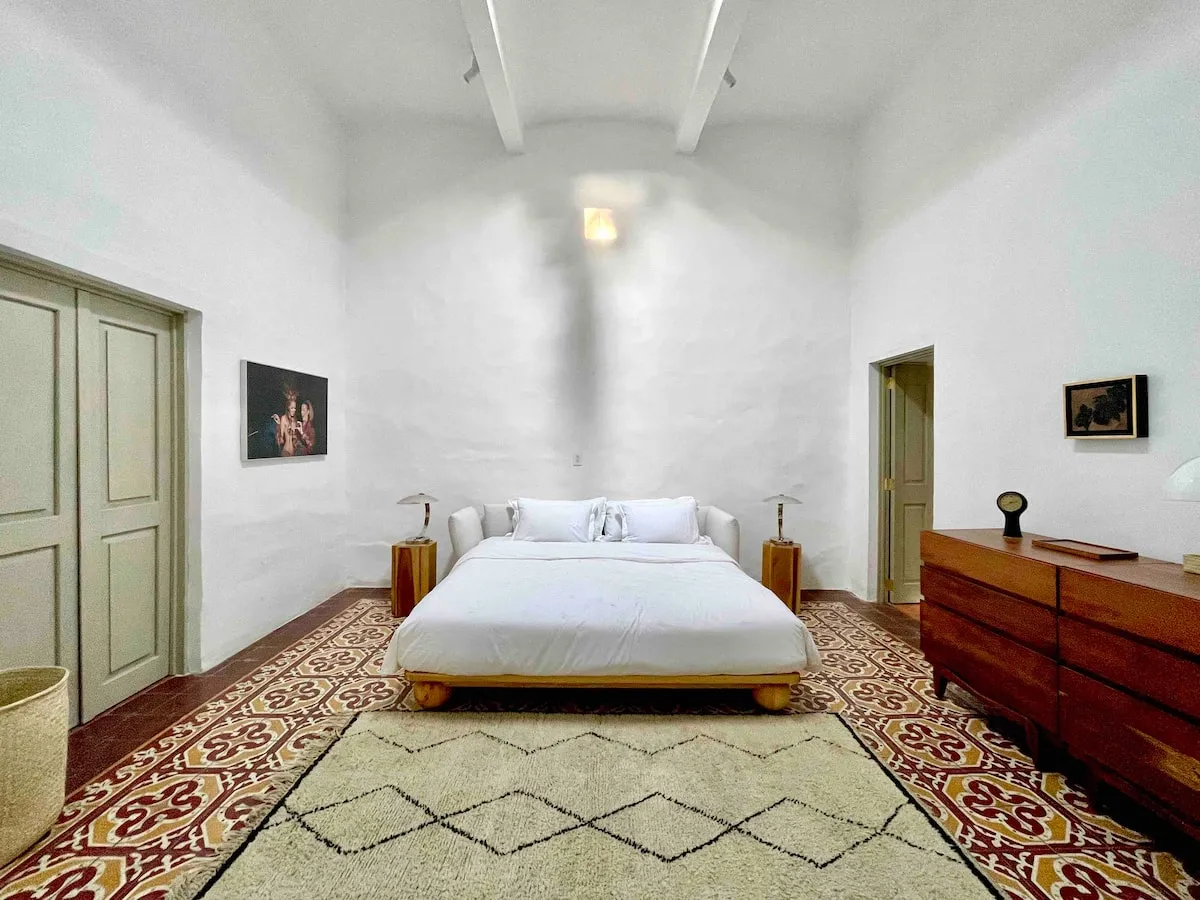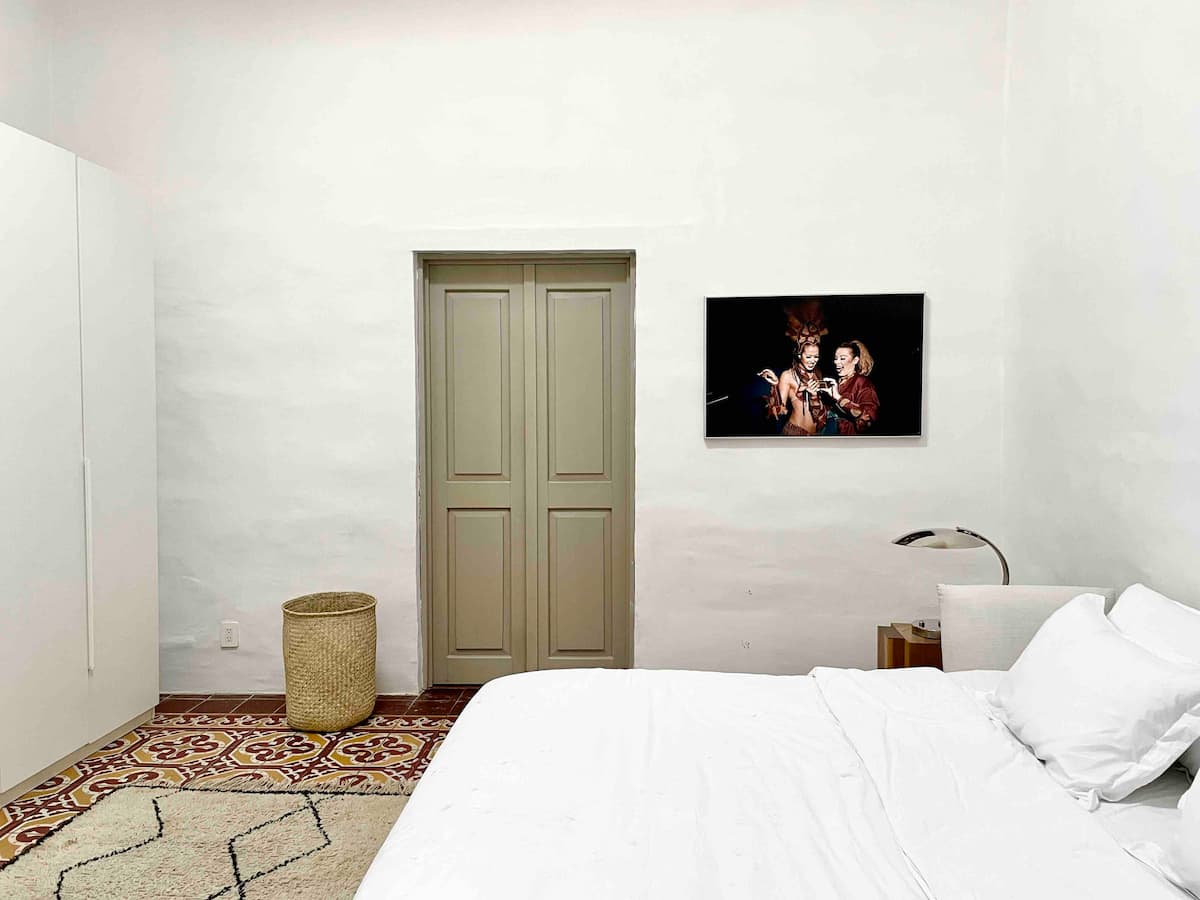 This stunning colonial era home is a 5 minute walk to Zócalo and 12 min walk to Santo Domingo. The Colonial bones and original 1930s flooring are tastefully contrasted with mid century style furnishings. Artisanal elements are subtlety featured though out. Comfortable interiors and exterior spaces allow you to gather or find privacy for yourself. Cleaning service on Monday, Wednesday and Friday is included.