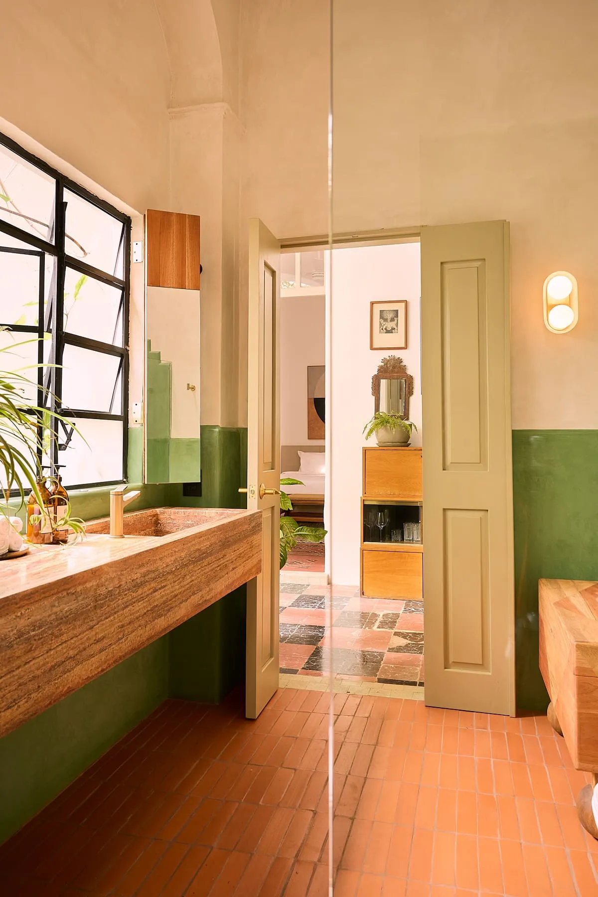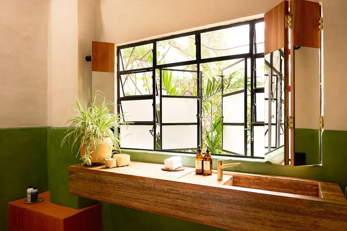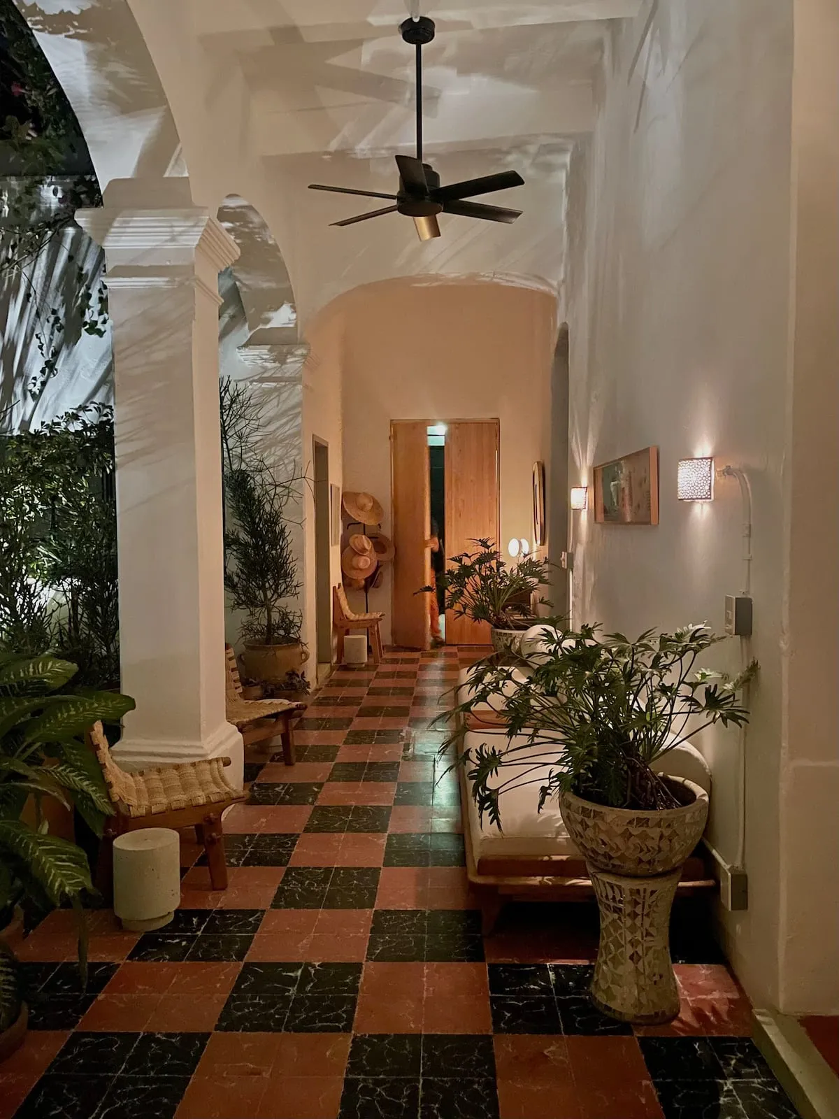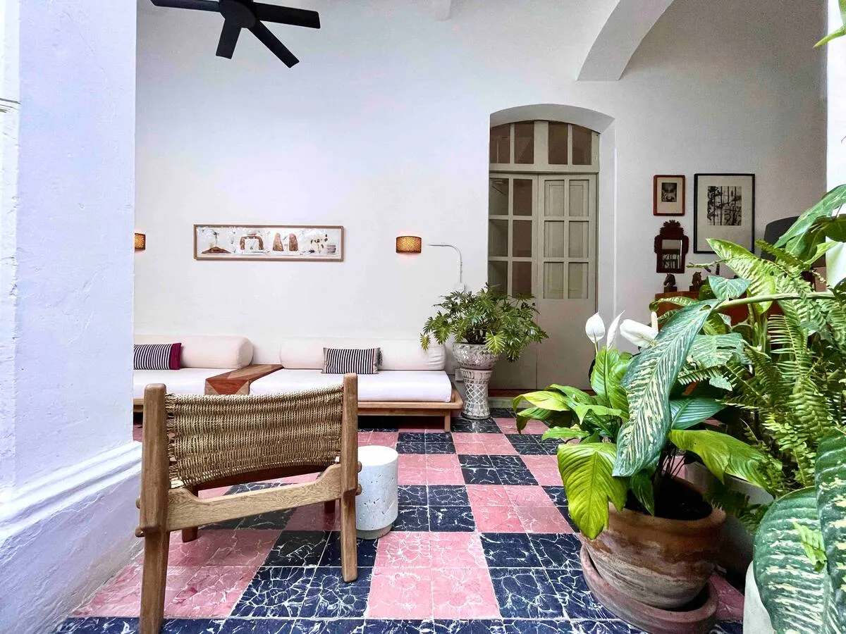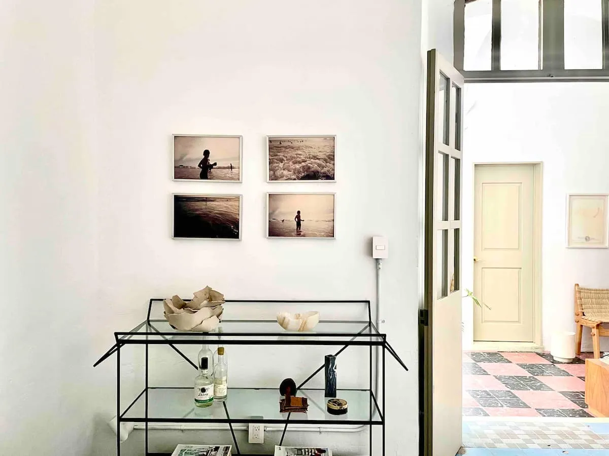 Past the lobby, discretely behind a set of large wooden doors: our home, your home - is a colonial built at the end of the 1800s with all rooms connecting to the open sky patios overflowing with vegetation where humming birds visit every day.