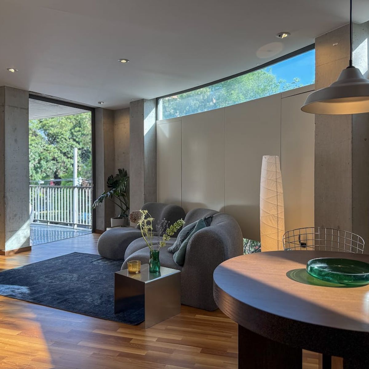 After crossing the main door, you are received by a central atrium. The stairs in helicoidal shape guide you to this thoughtfully designed duplex. On the first floor, you'll find the living space, a dining table for three, a completely equipped kitchen, and a private terrace. On the second floor,r find the bedroom with a full private bathroom, a half bathroom for visits, and a laundry room with a washer/dryer.