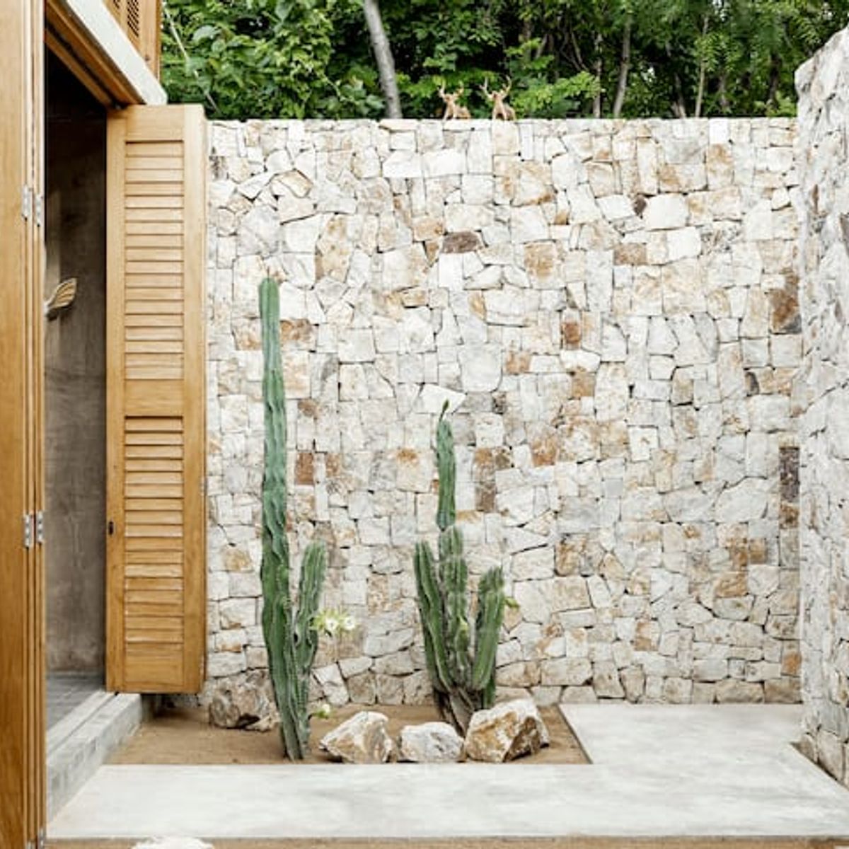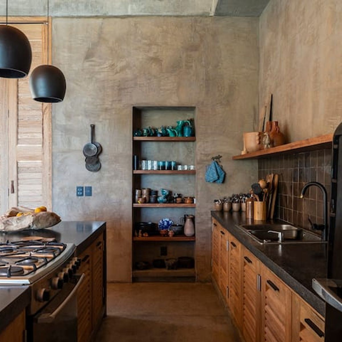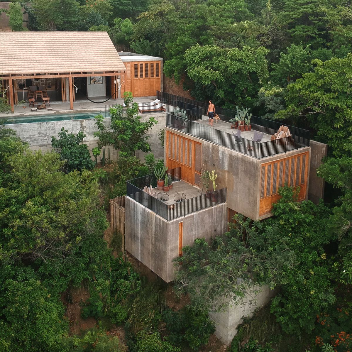 Seemingly carved into the hillside, this 2-bedroom villa is gracefully distributed on the cliffs overlooking Mermejita Beach. Conceived by architect Ivan Esqueda Martinez and interior designer Gala Sánchez-Renero Labelle of EM Estudio, the design embraces the elements of weather, salt, sun, and humidity to further incorporate the architecture into its coastal setting.