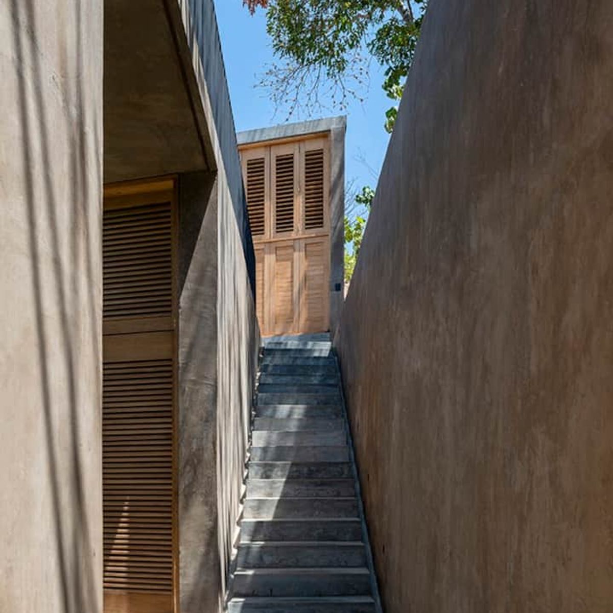 The architecture adapts to the mountain's topography, revealing its spaces gradually as you ascend or descend the interior staircases, creating a sense of discovery. The breathable, local materials integrate seamlessly with their environment through floor-to-ceiling windows that open onto the sea. This promotes constant airflow to cool the home while remaining in constant conversation with the outside.