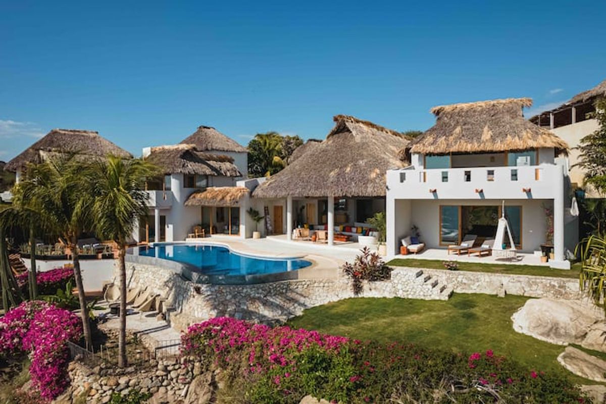 This villa is a true hidden gem. Set behind unassuming black gates, the 5-bedroom cliffside villa brings together an old-school Acapulco aesthetic with laid-back surf culture, combining the glamor of a classic Mexican resort with quintessentially Oaxacan details.