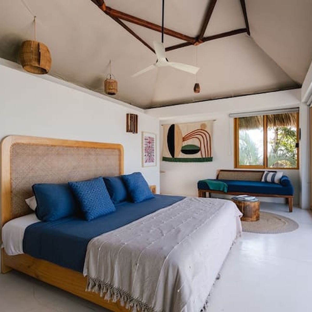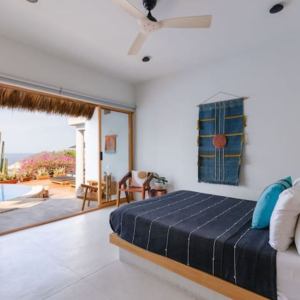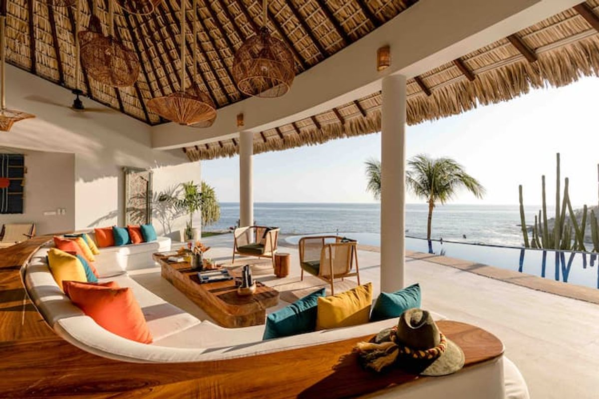 Meticulously restored by Puerto Escondido-based architect Luis Mendel, the villa is one of the most sought-after resort-style properties in the collection. Playfully decorated with textiles by M.A. Estudio in Mexico City, the interior brings together modern and rustic accents to create a future-retro-tropical look that’s all its own.