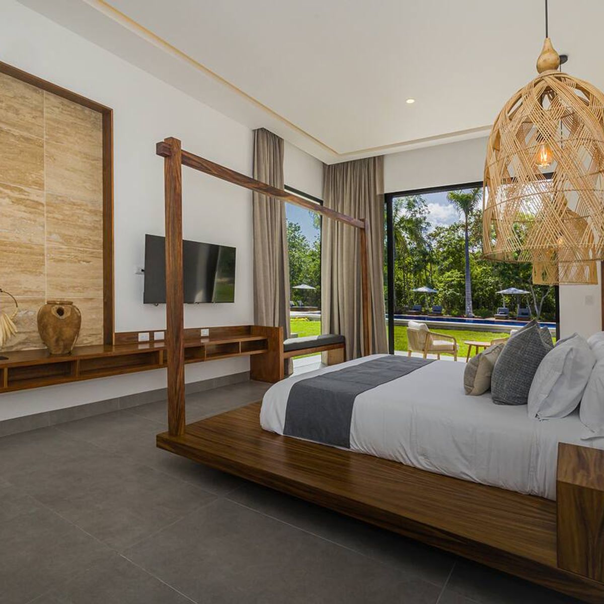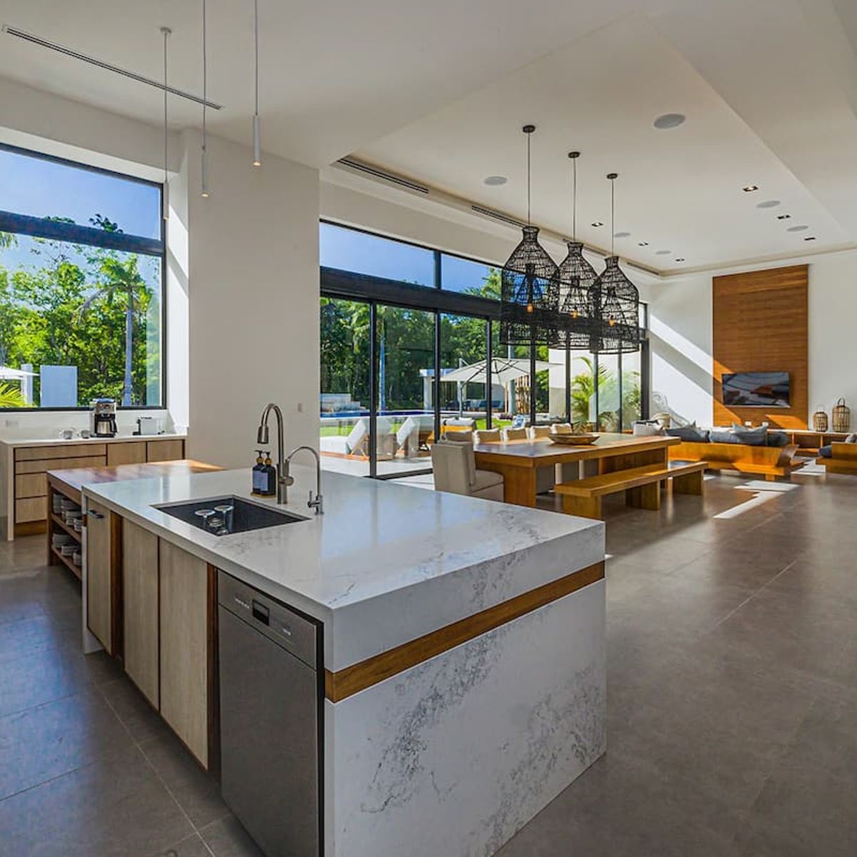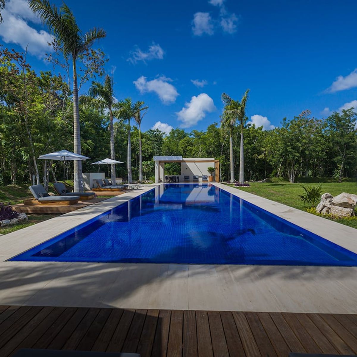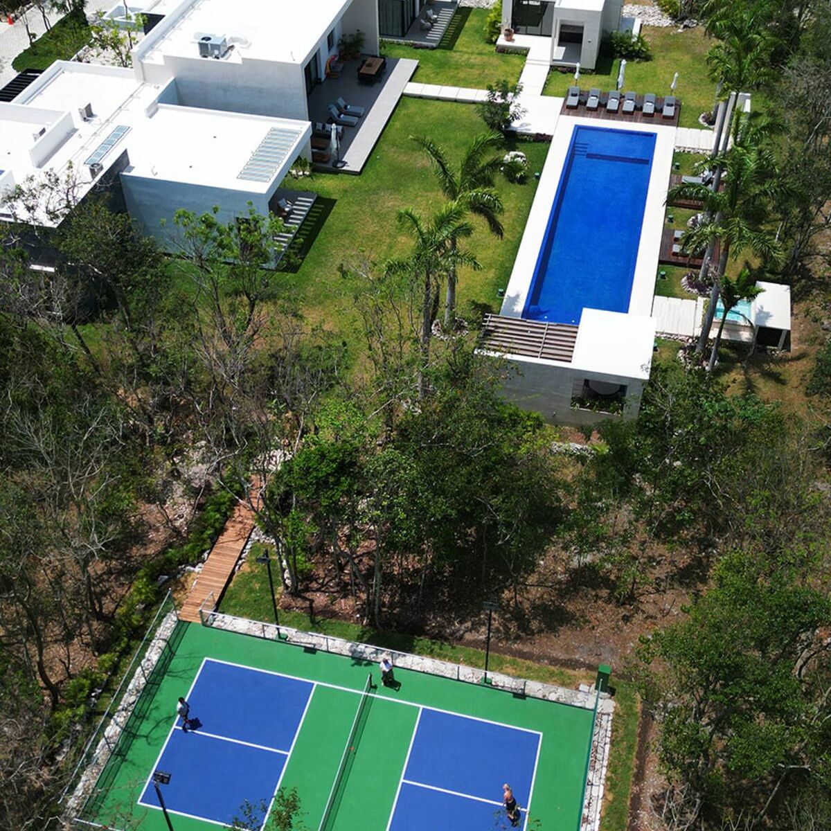 With 7 bedrooms and 7.5 bathrooms, the residence is designed for both intimacy and grandeur. A soaring Great Room with 5-meter-high ceilings sets the tone for effortless gatherings. Outdoors, guests enjoy a spectacular 22-meter pool, a hot tub, and a shaded pavilion. For recreation, a private pickleball court and a fully equipped gym complement the lifestyle, while an outdoor kitchen and grill offer casual al fresco dining.