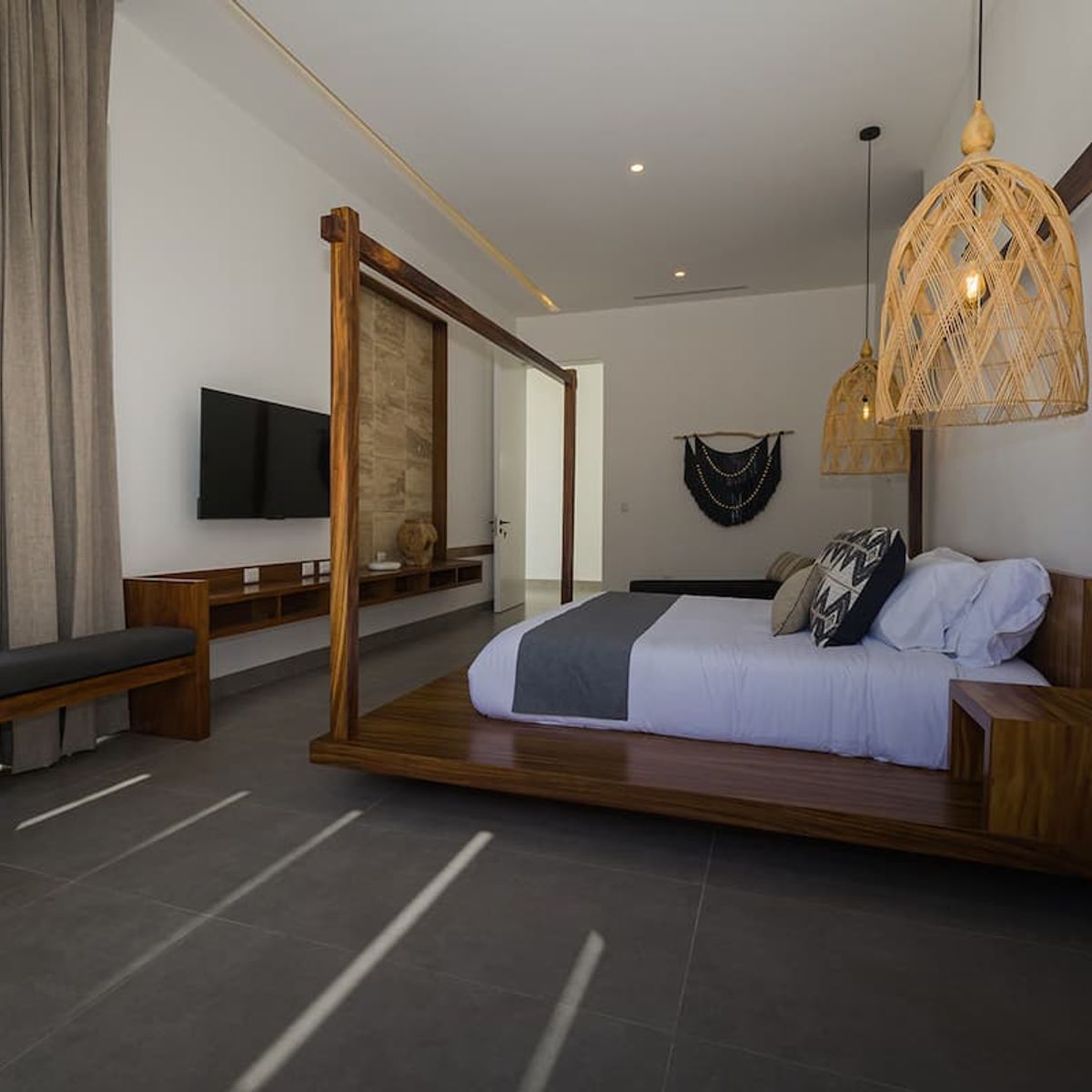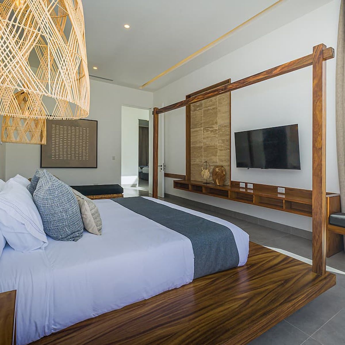 Each bedroom is thoughtfully arranged with premium bedding: four feature King beds, while three offer double Queen beds, accommodating up to 18 adults or 22 guests including children.