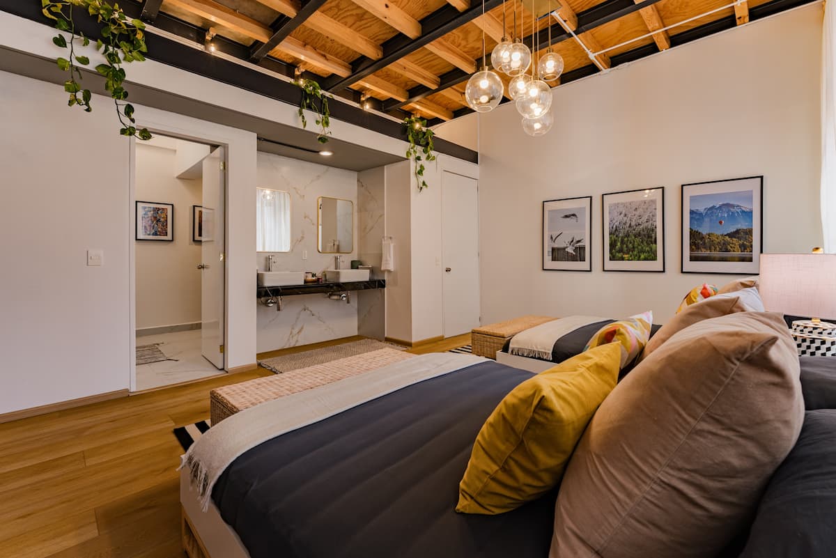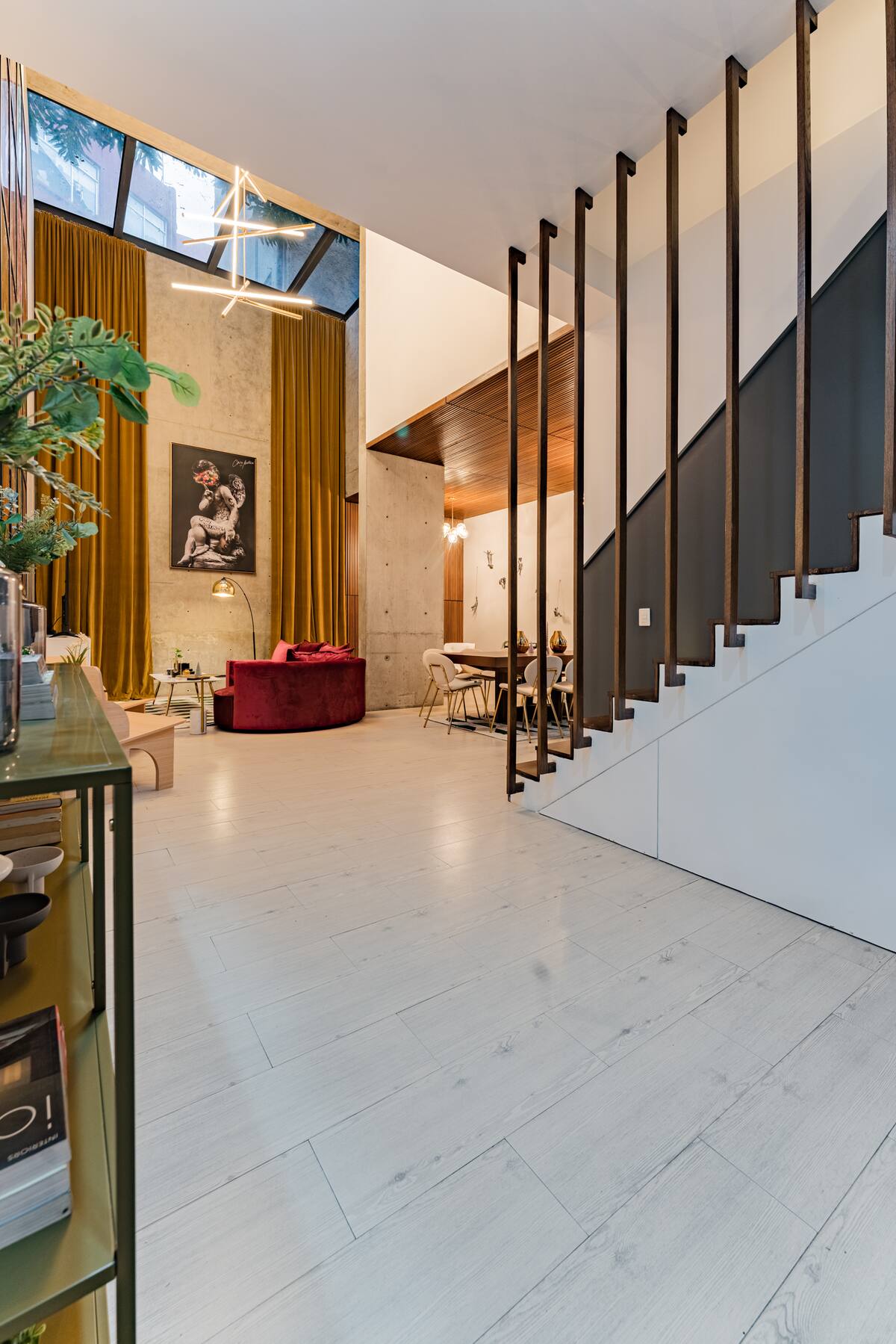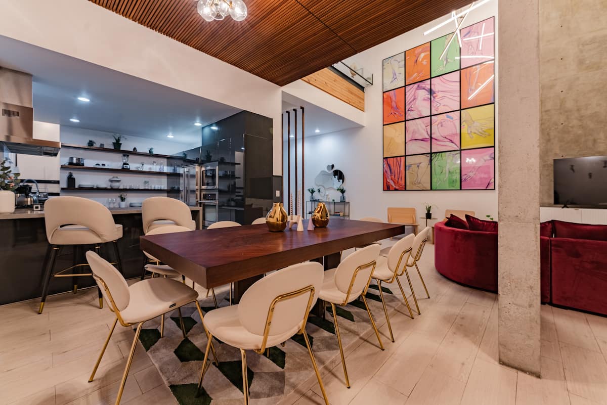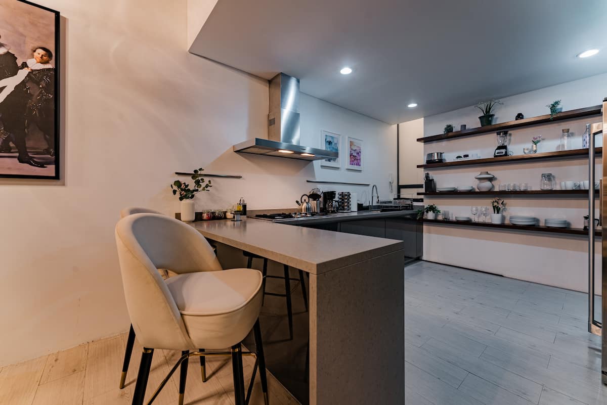 A striking six-level residence in Condesa combining modern design with urban energy. The home features dramatic double-height ceilings, curated designer furnishings, and panoramic city views from multiple levels. Natural light floods the interiors, while the rooftop terrace offers a spacious outdoor retreat in the heart of the city.