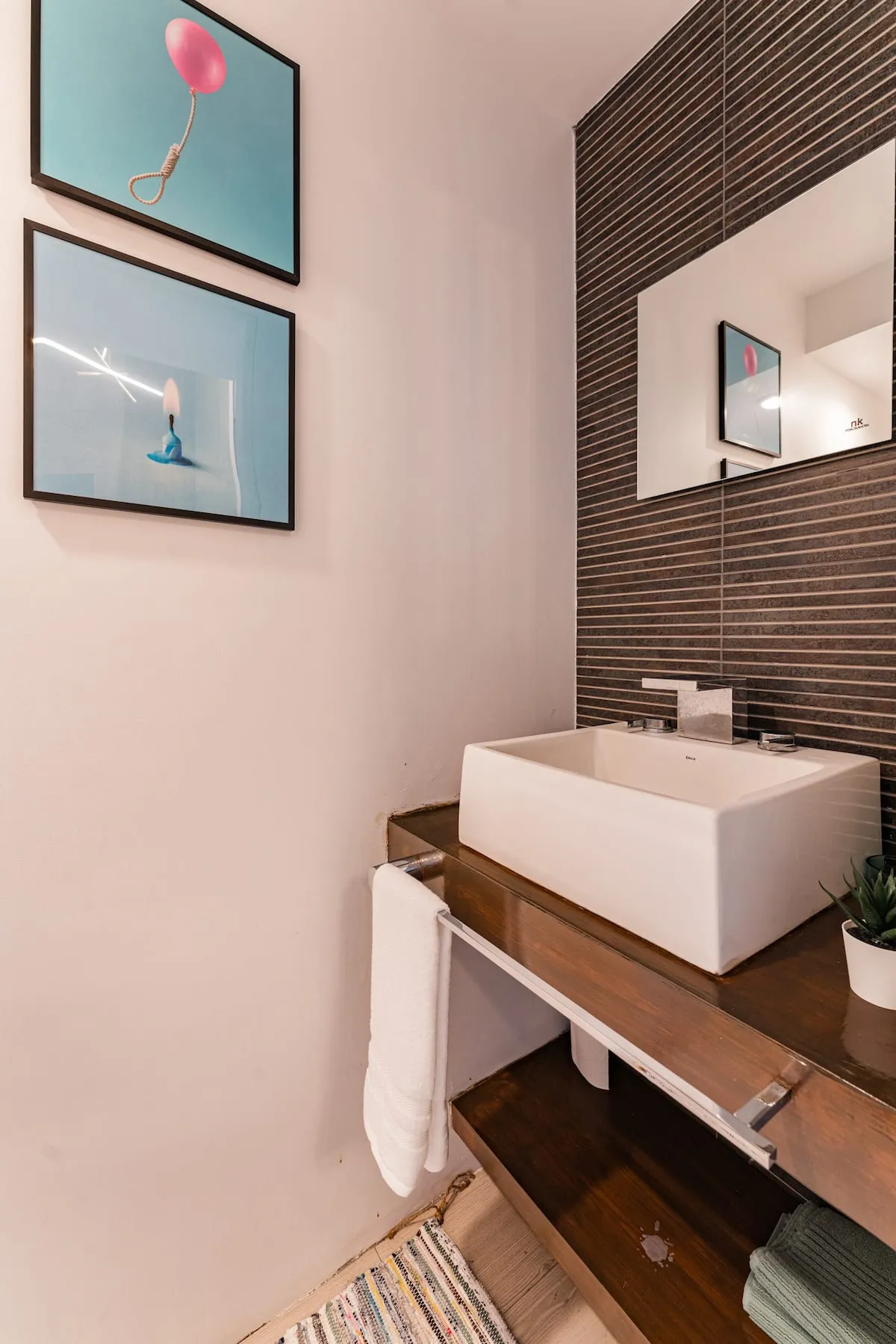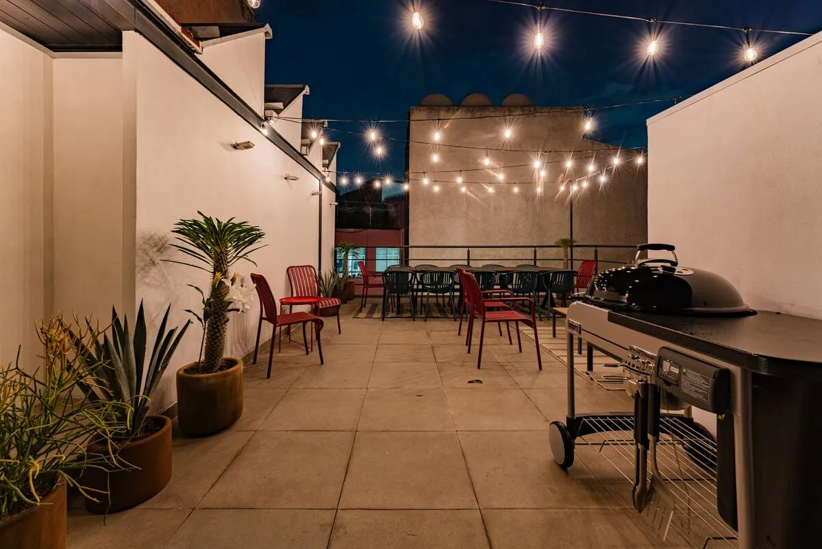 – Rooftop terrace with dining table (seats 12), outdoor lounge (seats 4), coffee table, grill, and large sink