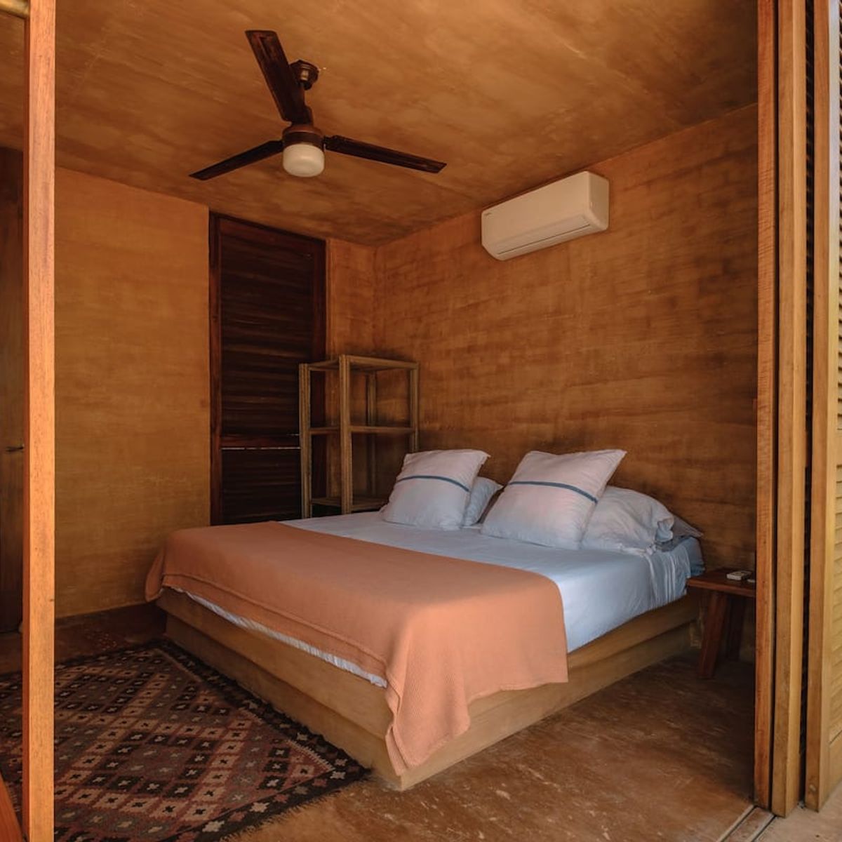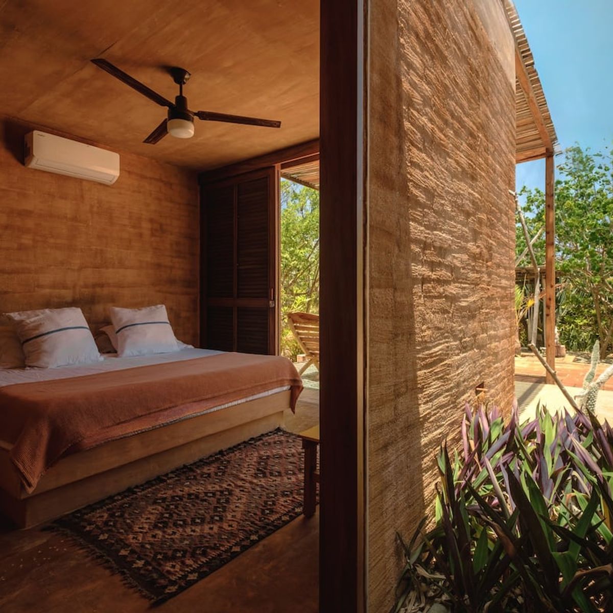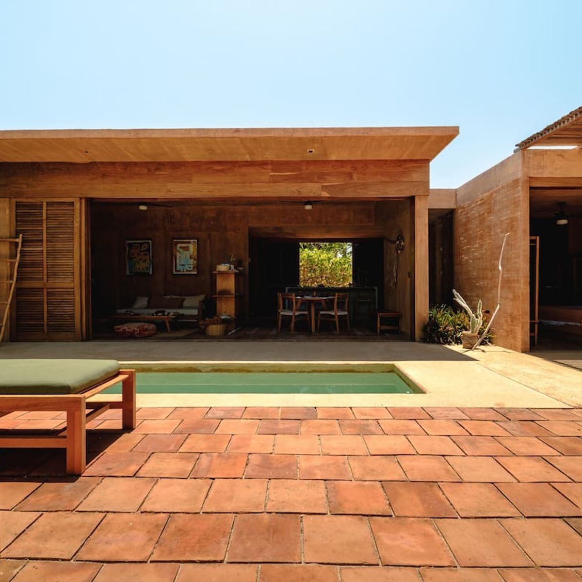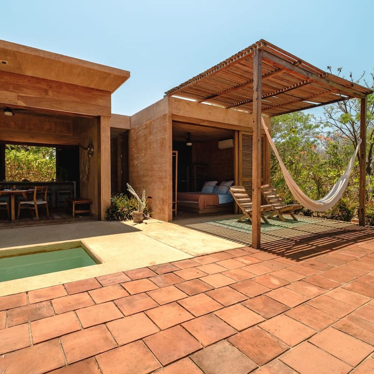 The 2-bedroom villas sleep up to 6, with two ensuite double rooms and a pull-out. The communal space includes a kitchen area, dining area, plunge pool, and first-floor and rooftop terraces, where you can catch breathtaking Oaxacan sunsets. All the villas are air-conditioned.