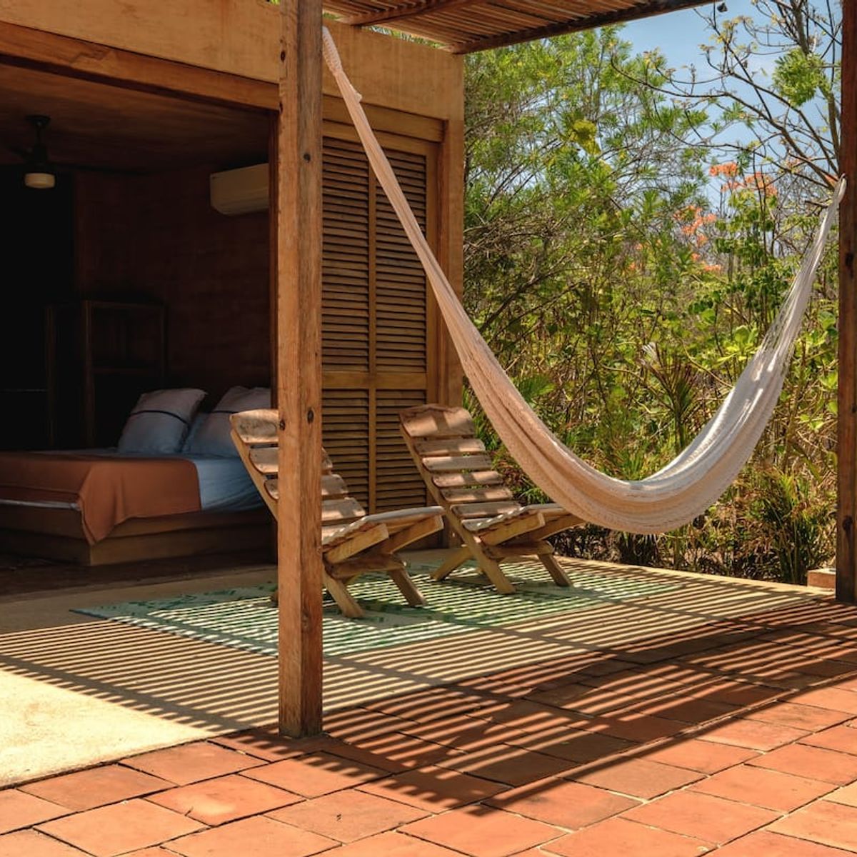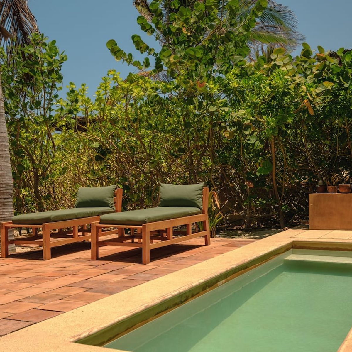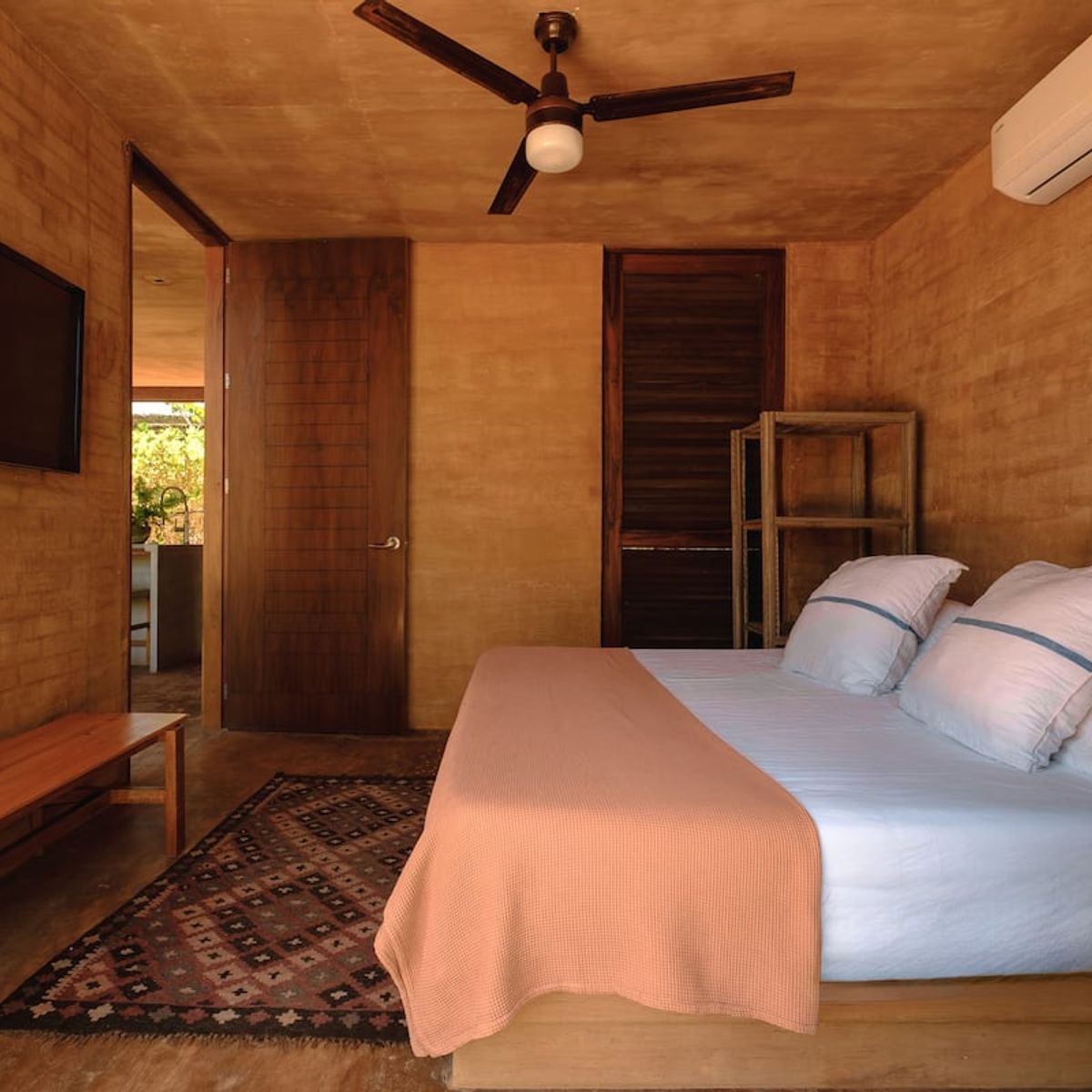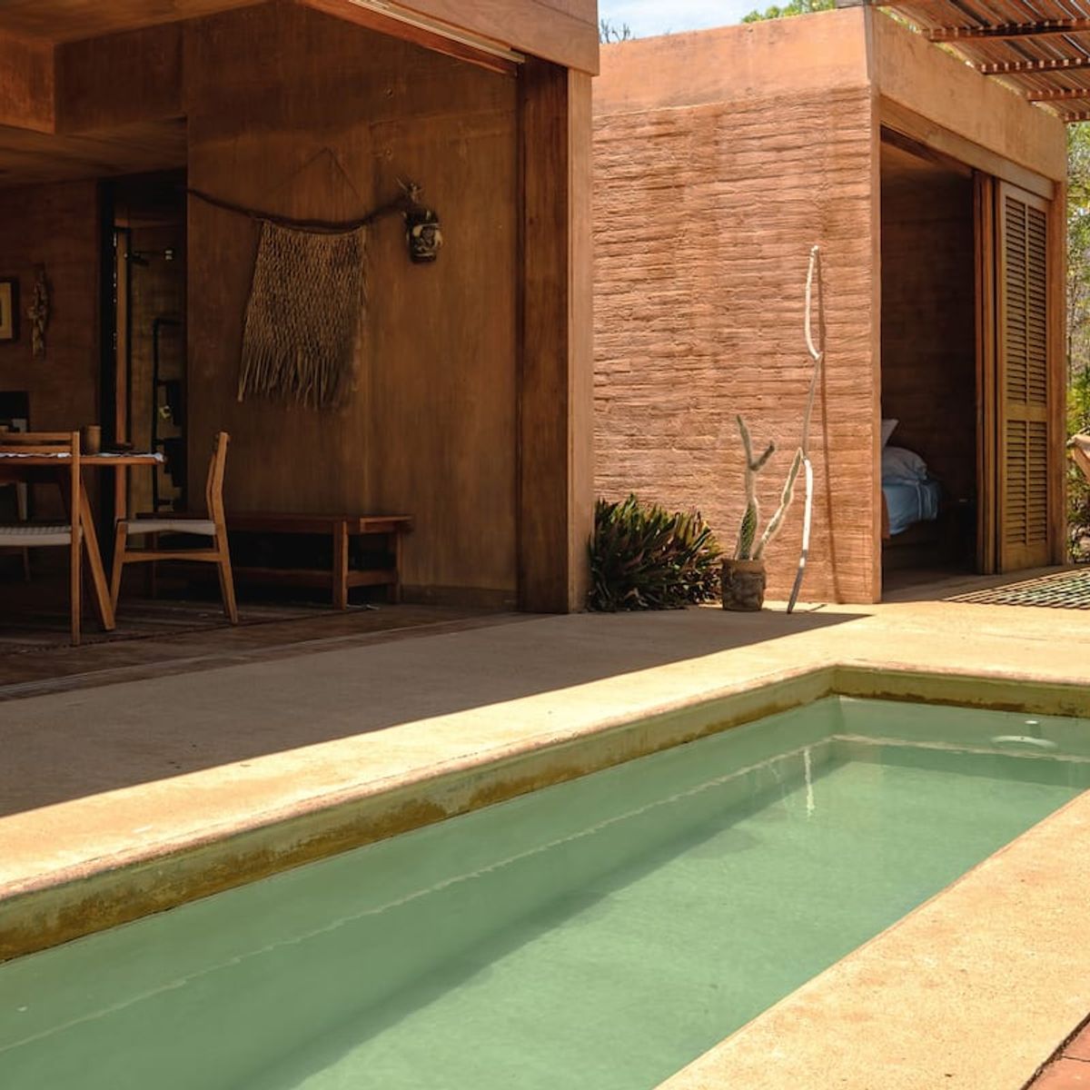 The 2-bedroom villas sleep up to 6, with two ensuite double rooms and a pull-out. The communal space includes a kitchen area, dining area, plunge pool, and first-floor and rooftop terraces, where you can catch breathtaking Oaxacan sunsets. All the villas are air-conditioned.