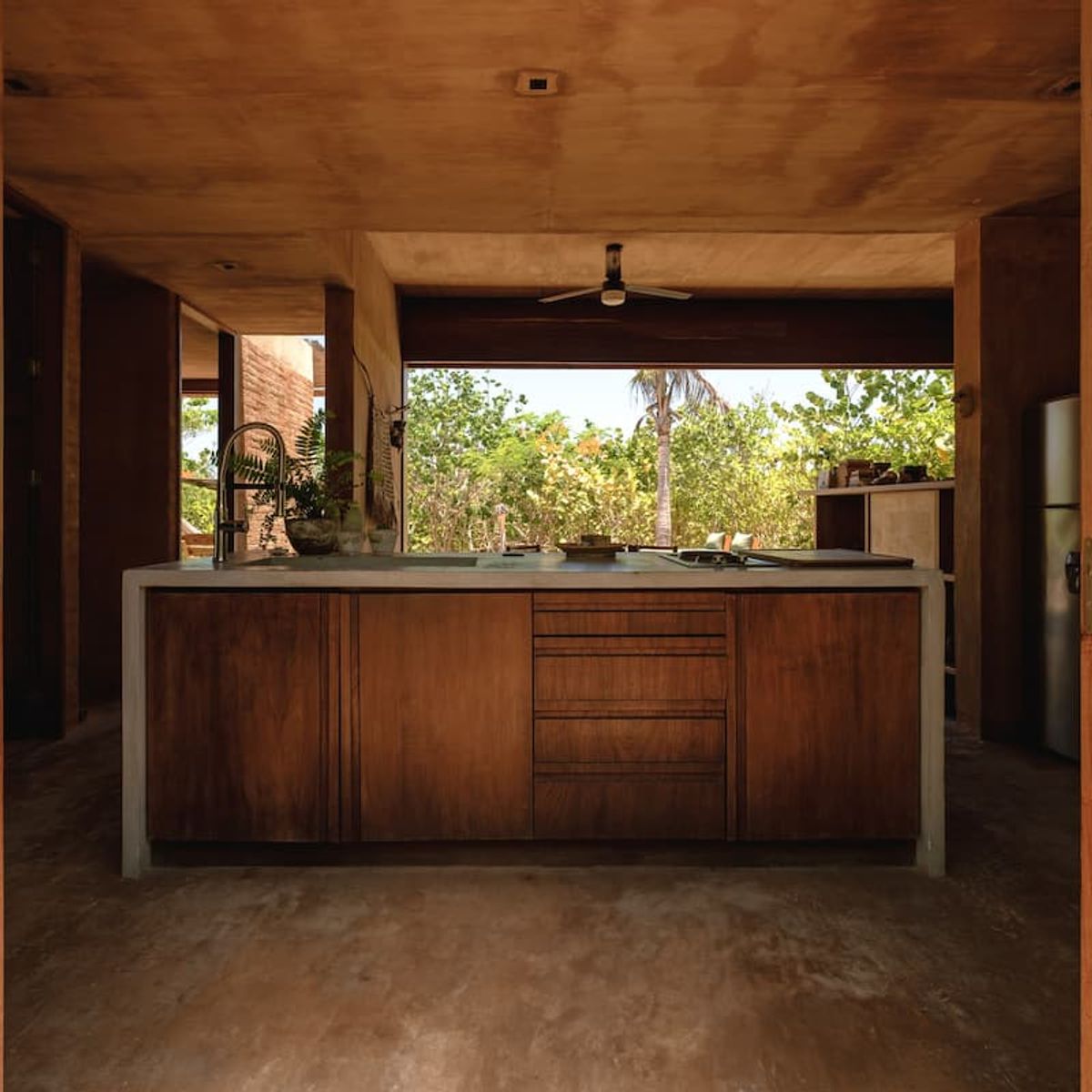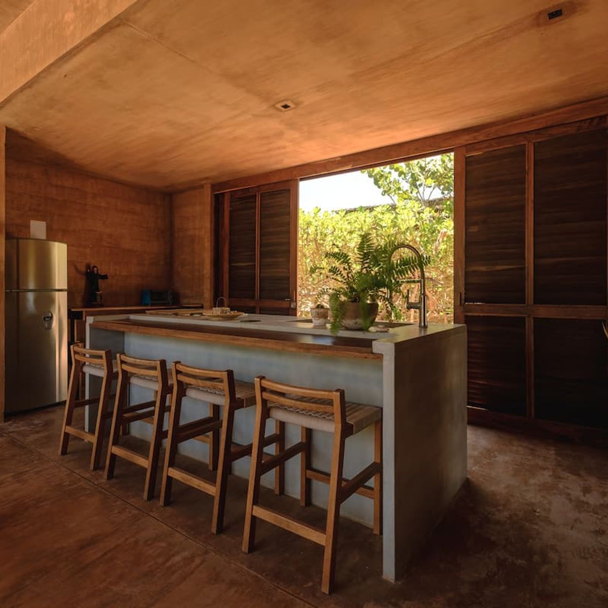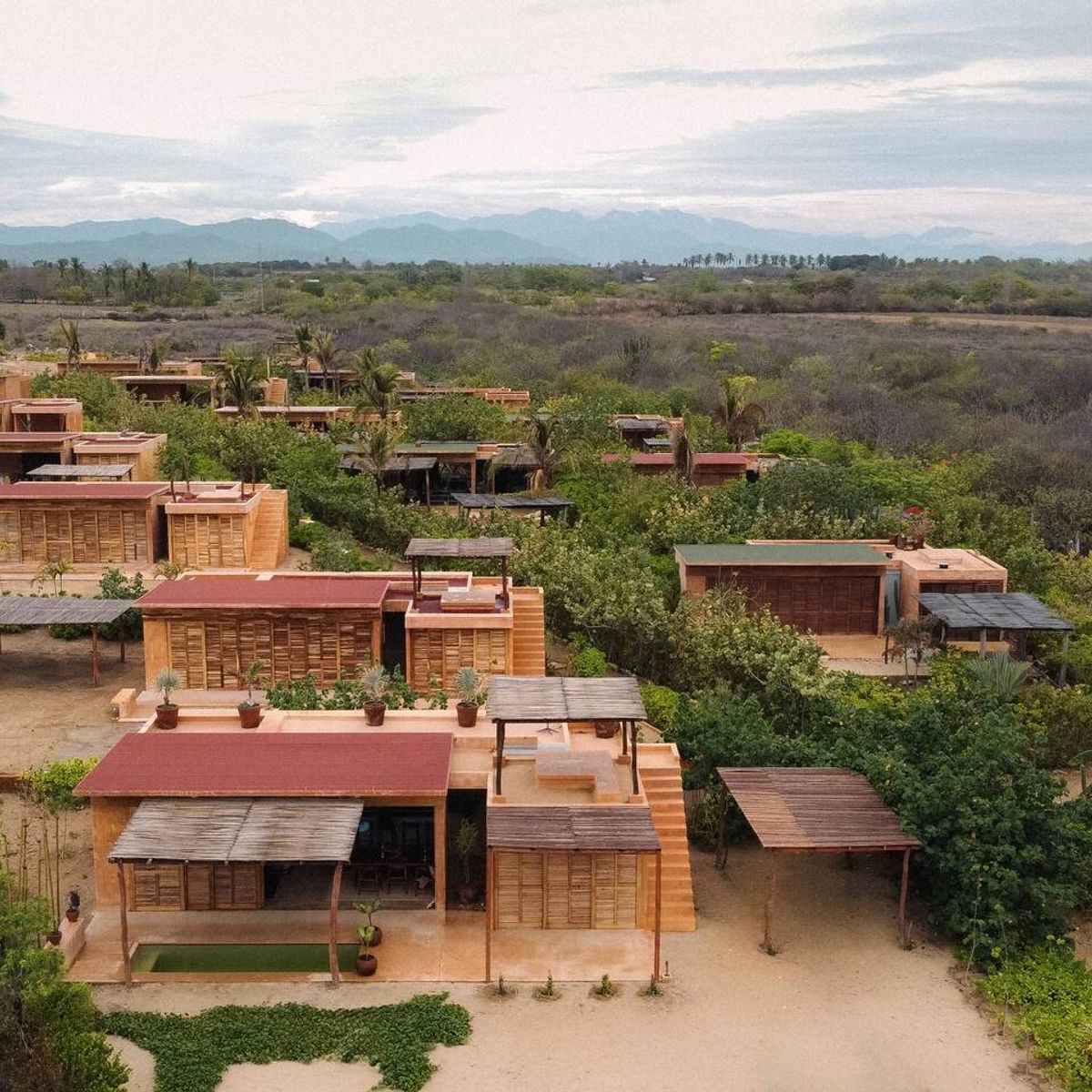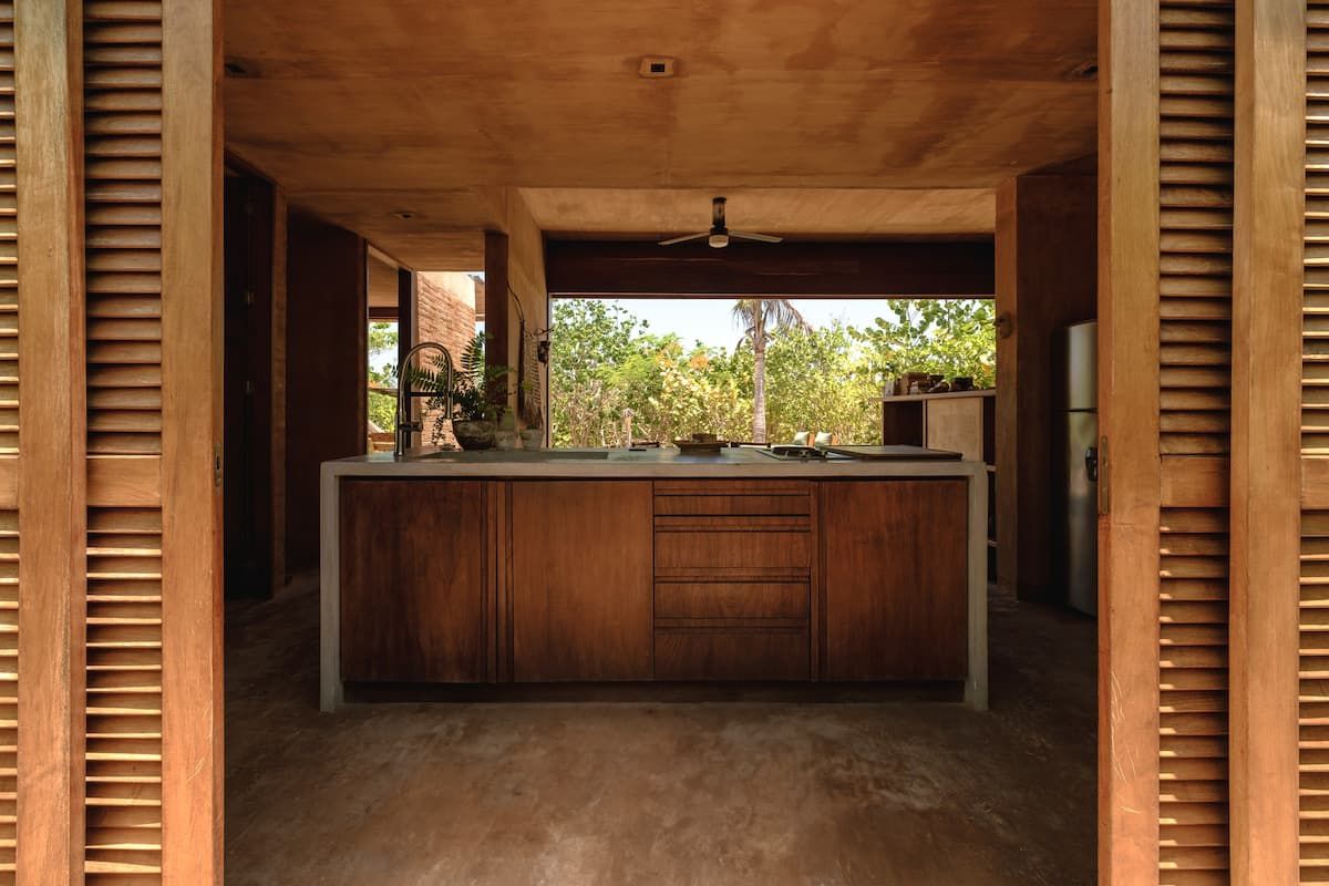 The architects aimed to respect the virgin coastal site as much as possible by utilizing only local expertise and materials. Each of the 16 compact units is built from concrete and rough brick that mimics chicharrón, the dappled rock formations that dot the site. Meanwhile, load-bearing concrete walls were stained with reddish pigment to bend with the sandy landscape.