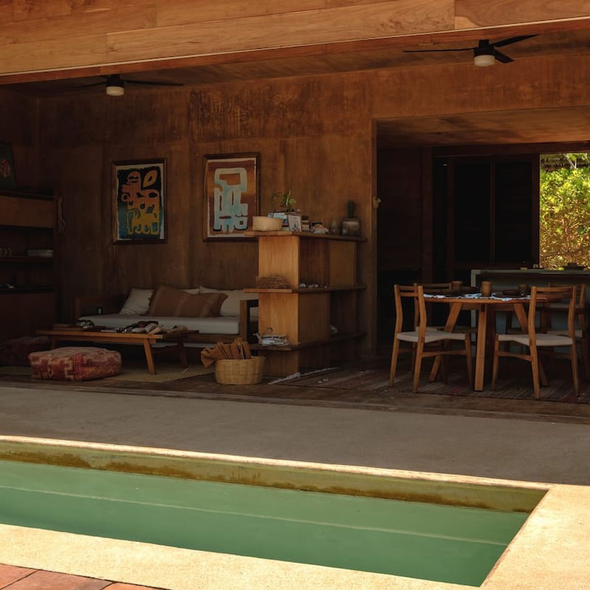 Beyond their striking aesthetic, the property’s configuration is also ingenious. Each villa has floor-to-ceiling sliding doors that connect the entire space to the terrace, with its own private plunge pool positioned immediately in front. This layout cools the breezes that ventilate the interconnected interior spaces while maximizing each villa’s stunning ocean vista.