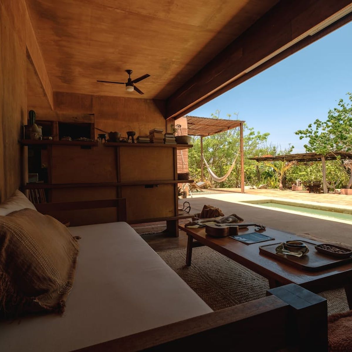The Mazul Collection is in the small coastal community of Santa Elena El Tule, a town 45 minutes from Puerto Escondido Airport (PXM) and the downtown area. The same distance in the other direction is Mazunte, a bohemian enclave where you can find a few restaurants, small shops, and a yoga studio or two. Casa Cal is a place to completely disconnect—so if you do get the urge to explore, we suggest renting a car.