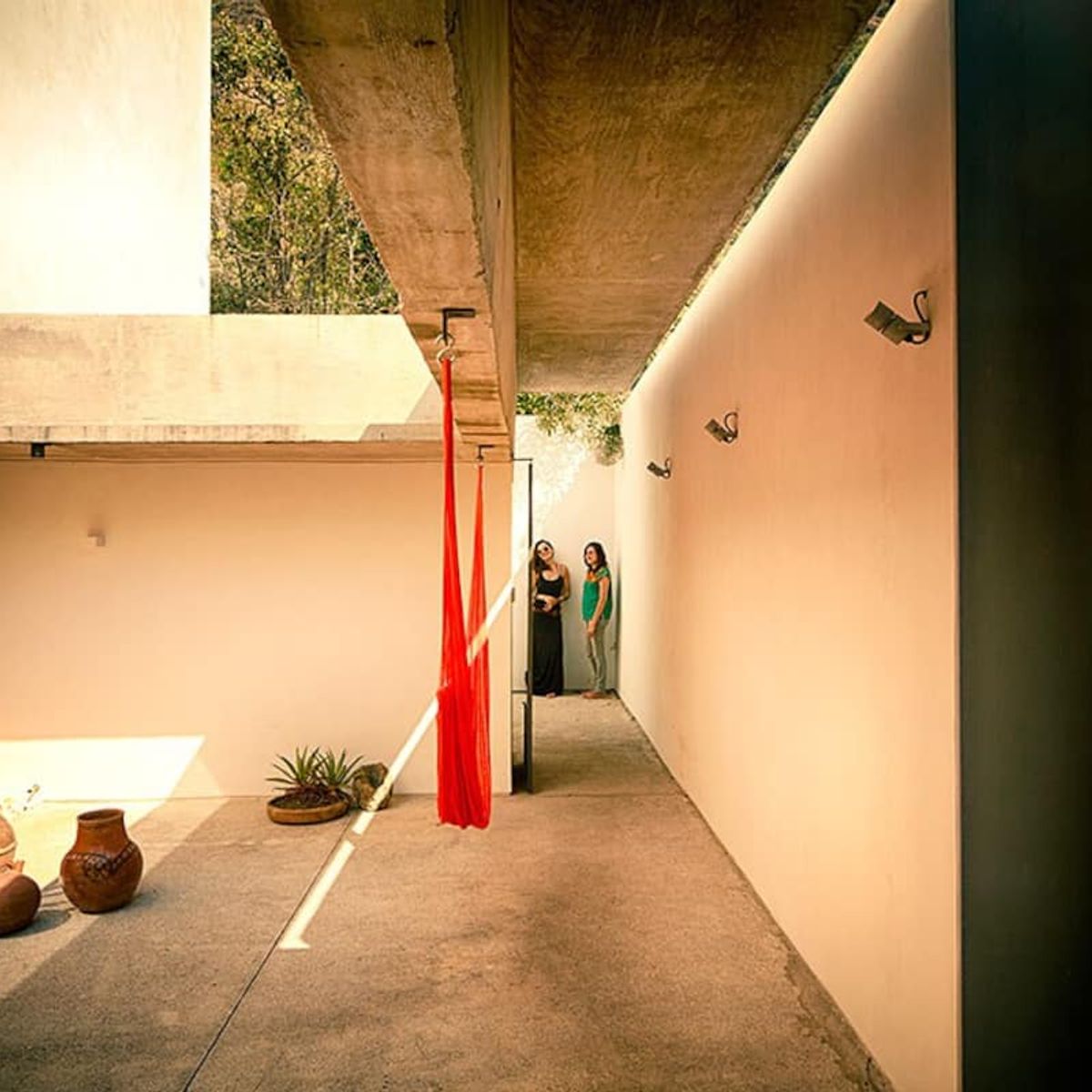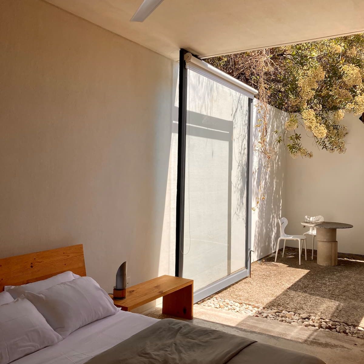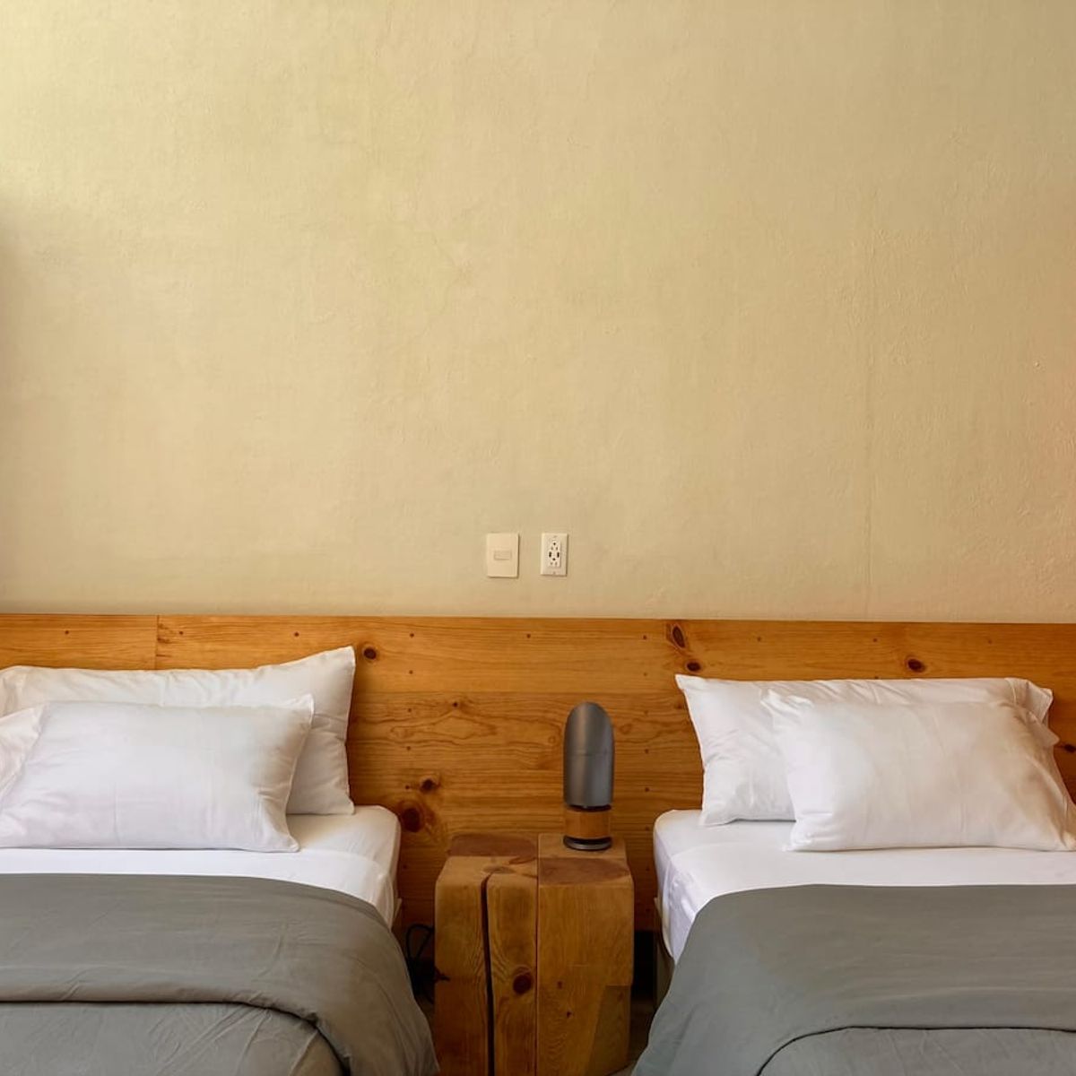 The house comfortably sleeps up to 8 guests across four double bedrooms: Two master bedrooms feature a King- and Queen-size bed, large full-body mirrors, and wooden sliding doors that separate the sleeping area from the private bathrooms; each room opens to a private furnished patio that blends with the room by simply opening the door-window. Two spacious twin rooms offer two single beds each, abundant natural light, and access to a shared central patio with hammocks, perfect for lounging or an afternoon nap.