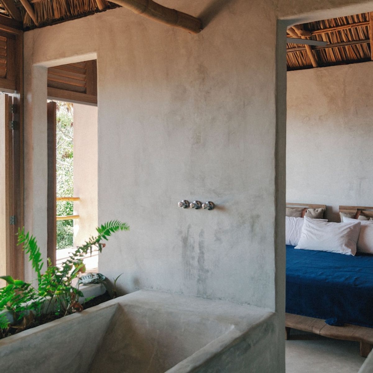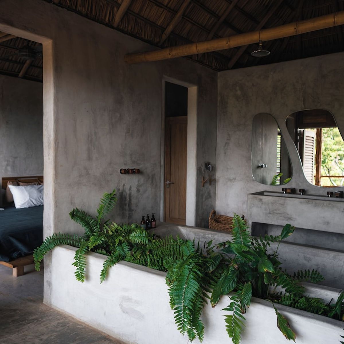The estate was commissioned to Taller LU ́UM, an interior design studio specialized in working together with artisan groups throughout Mexico, of which we are very proud. For this project Taller LU´UM collaborated with 4 artisan groups, among Mariana Ruíz from AT-TE for architecture and management, Paola José from Sombre for the lighting project, Valentina Deffis for the finishes of the wall and Tiago Pinto de Carvalho for the conceptual project; Templo Oaxaca biodigester specialist; Edgar Ludert who developed the branding and local constructors for creating a congruent, conscious and unique place.Each suite has a terrace with a privileged view of the Pacific Ocean and the Oaxaca jungle.