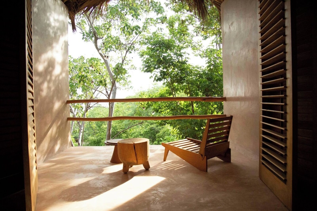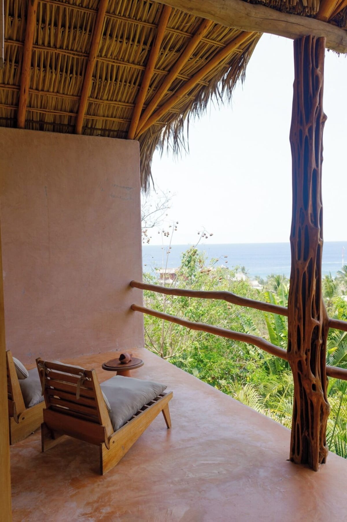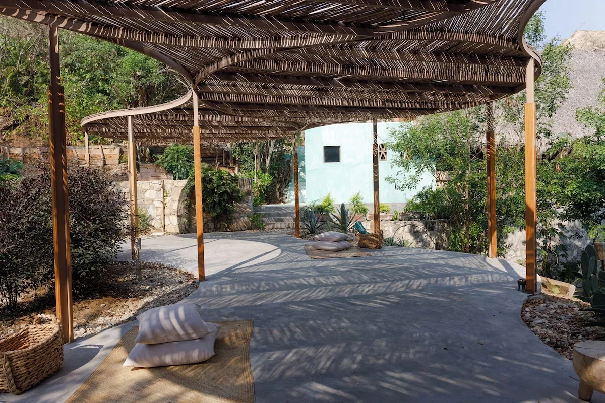 The estate was commissioned to Taller LU ́UM, an interior design studio specialized in working together with artisan groups throughout Mexico, of which we are very proud. For this project Taller LU´UM collaborated with 4 artisan groups, among Mariana Ruíz from AT-TE for architecture and management, Paola José from Sombre for the lighting project, Valentina Deffis for the finishes of the wall and Tiago Pinto de Carvalho for the conceptual project; Templo Oaxaca biodigester specialist; Edgar Ludert who developed the branding and local constructors for creating a congruent, conscious and unique place.Each suite has a terrace with a privileged view of the Pacific Ocean and the Oaxaca jungle.