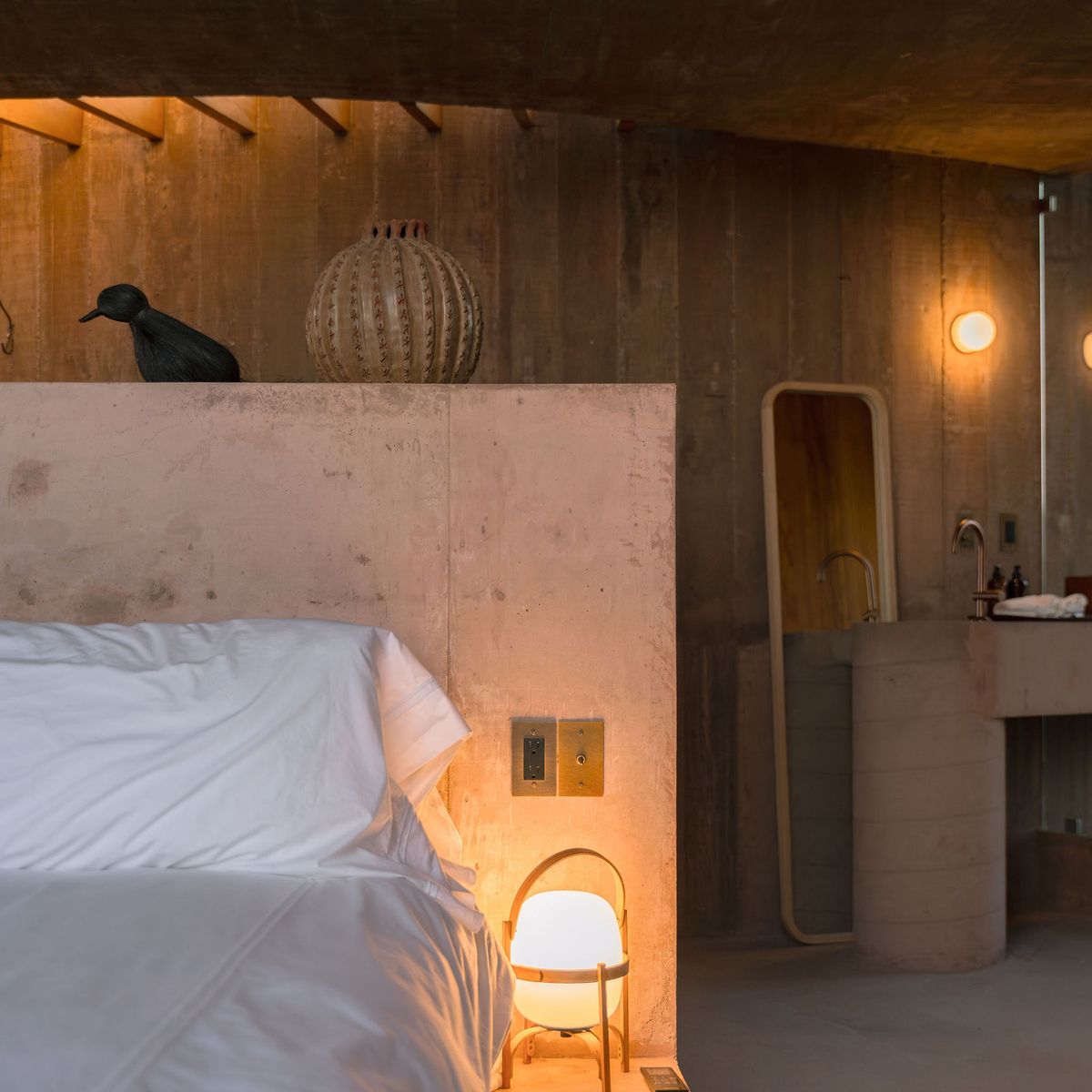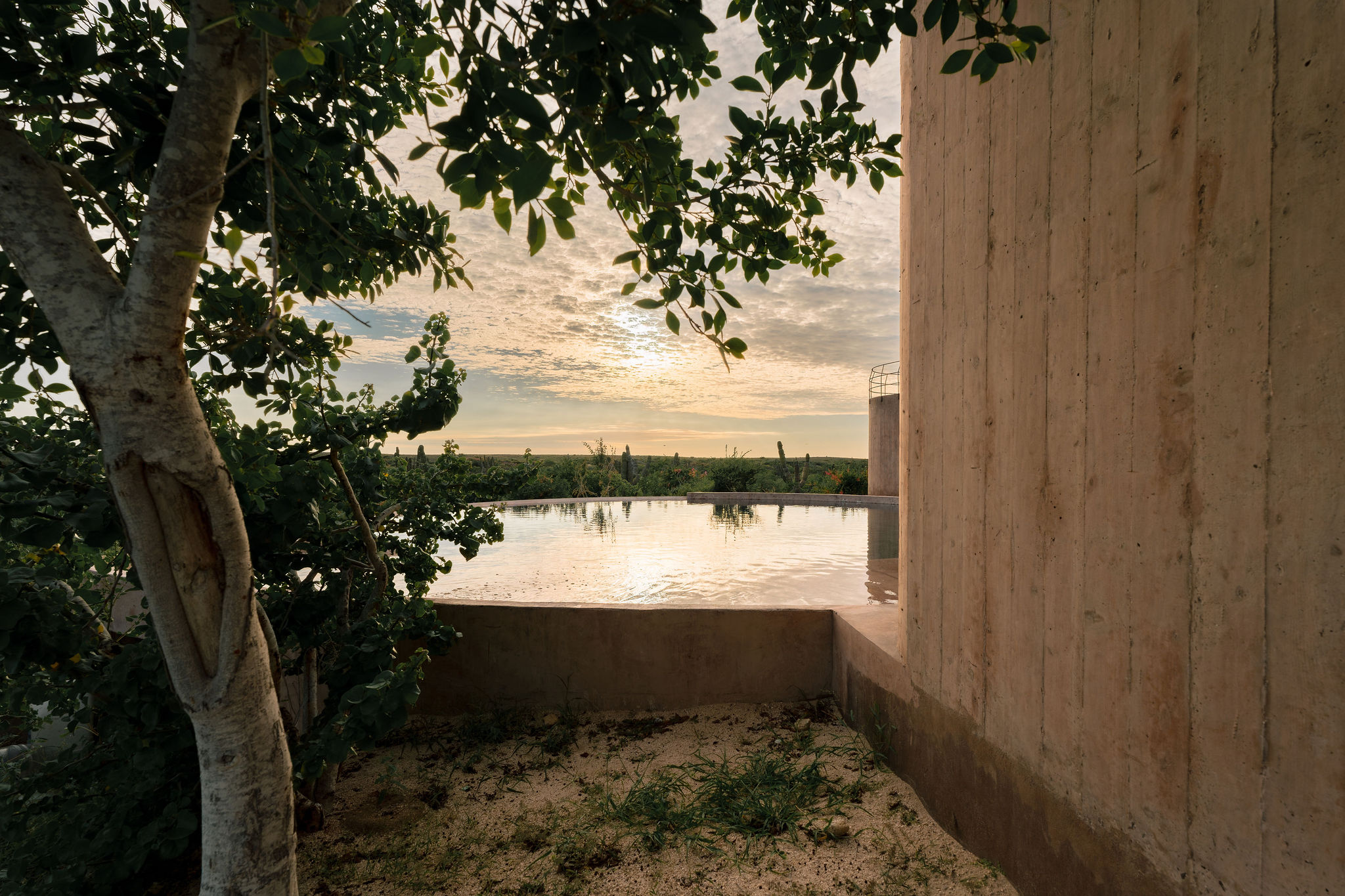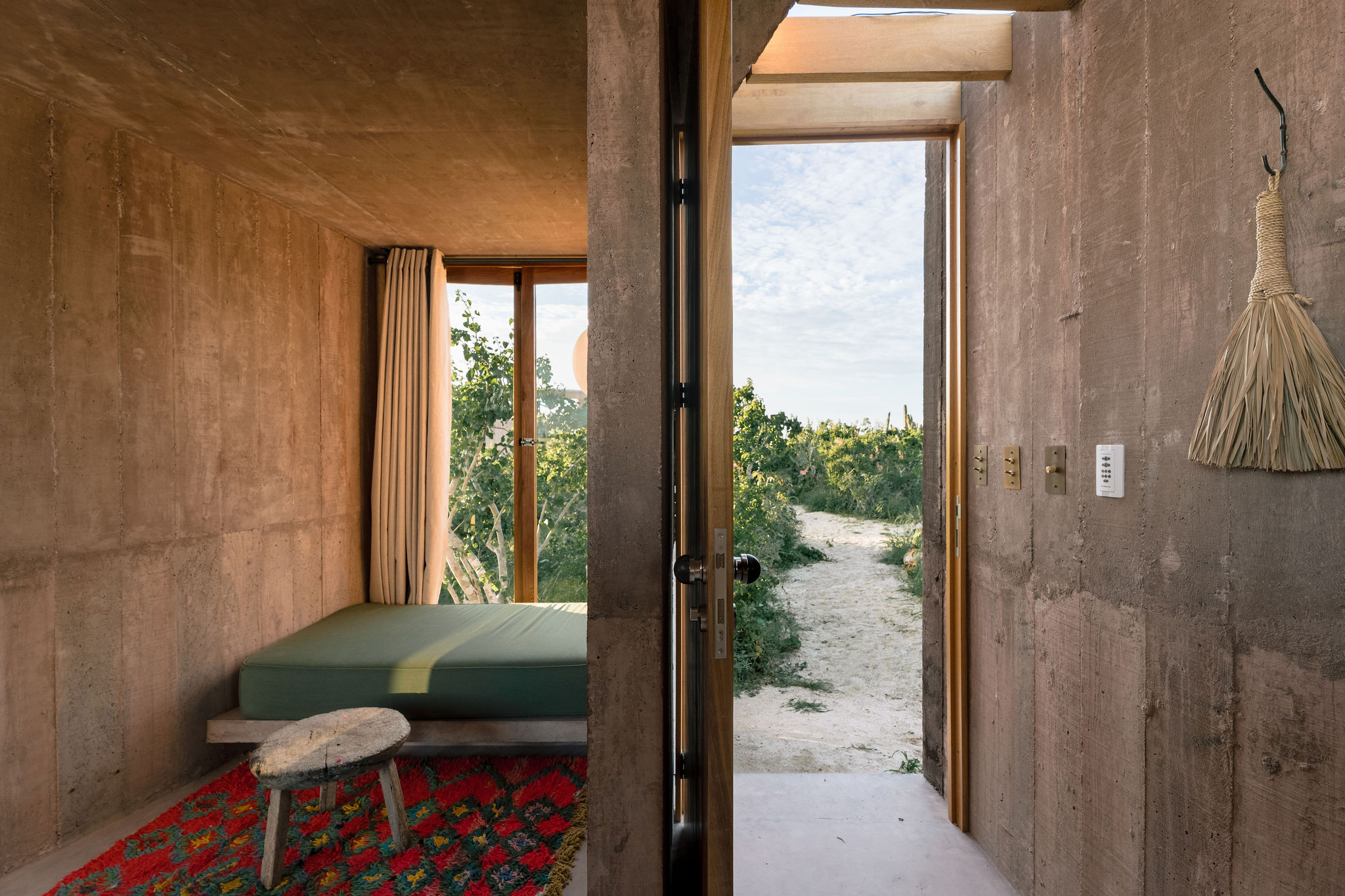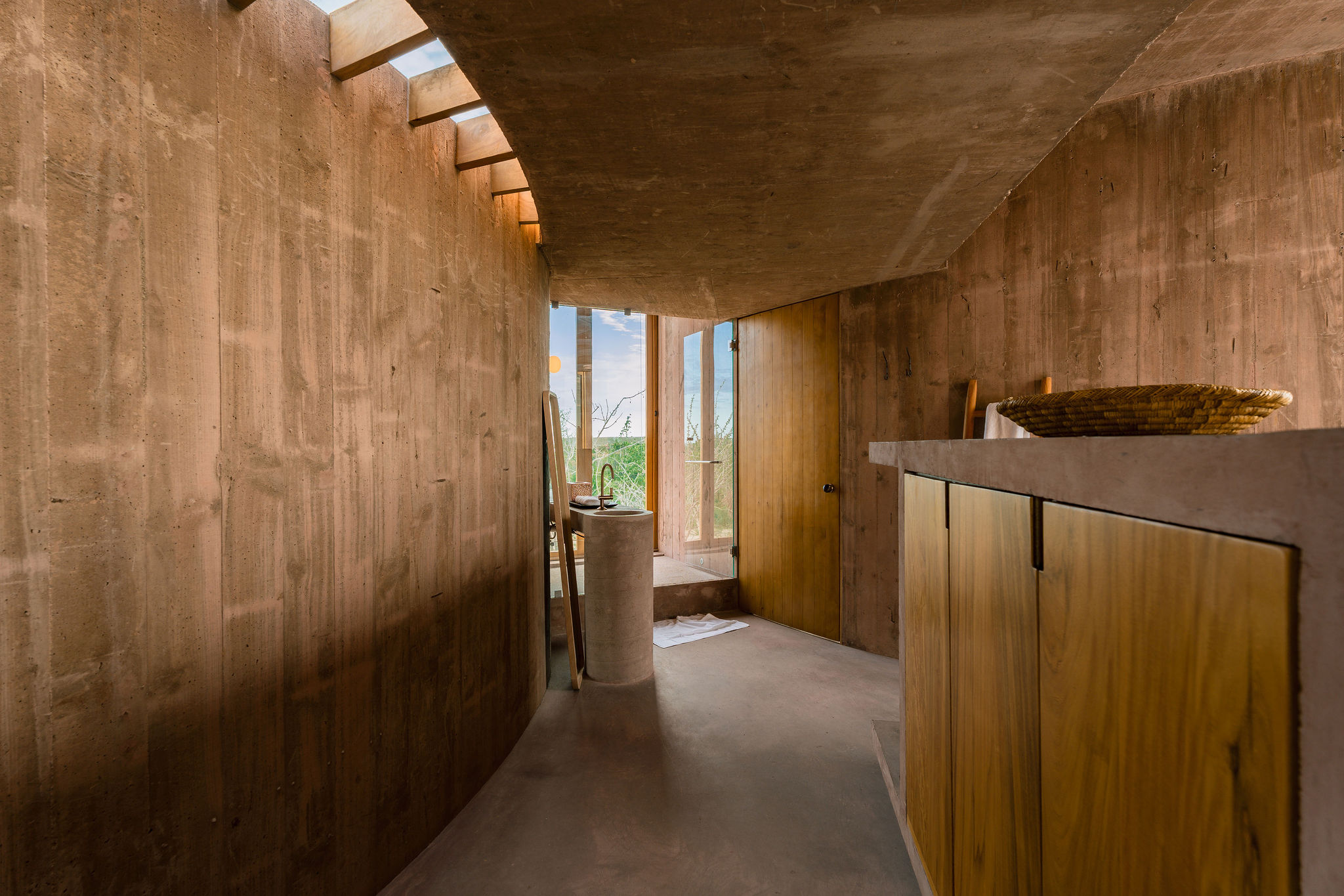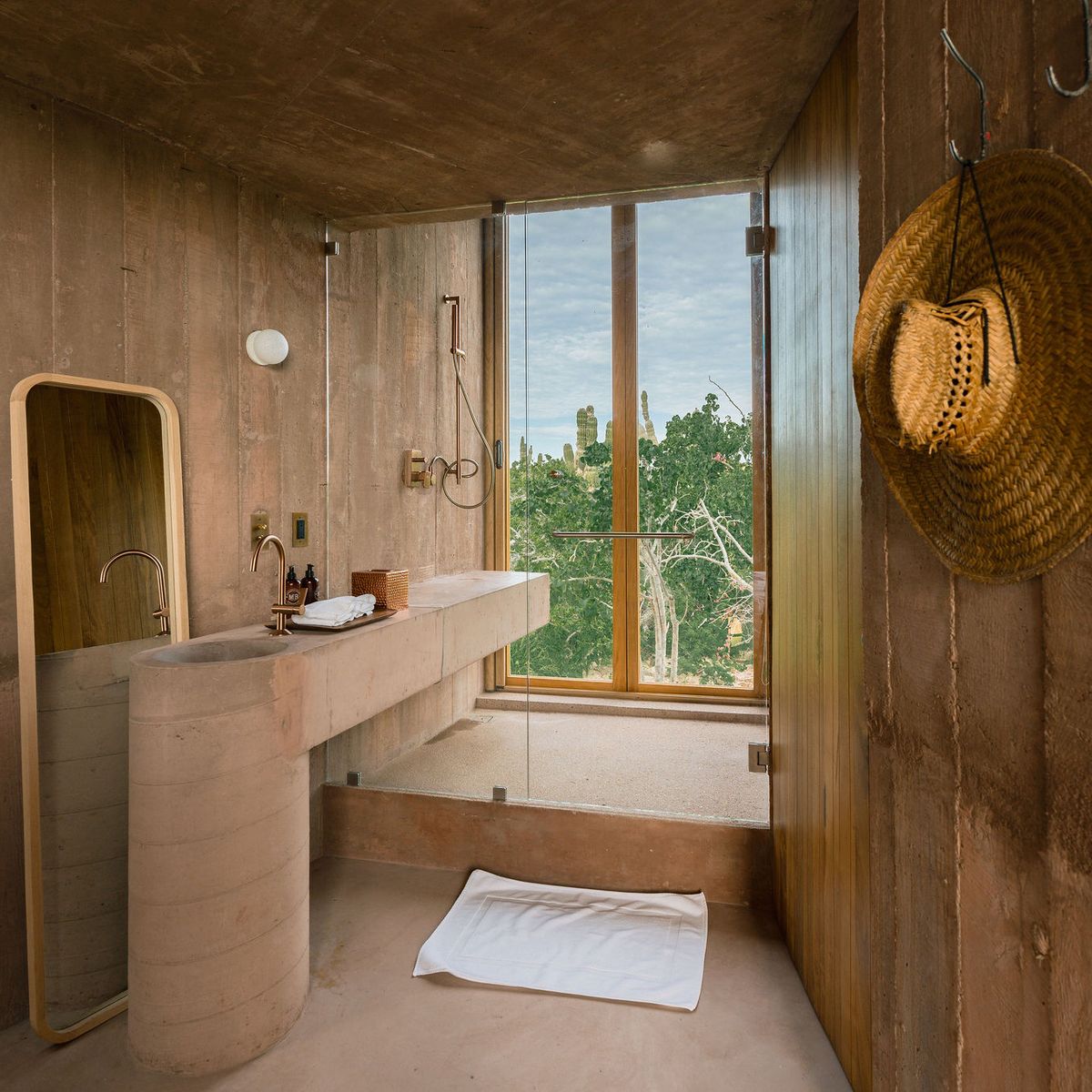 Rising from the desert landscape just north of Todos Santos, Nereidas is a brutalist statement piece softened by Baja’s wild beauty. Concrete walls, clean lines, and expansive windows frame endless views of the ocean and desert, creating a space that feels both sculptural and deeply livable.