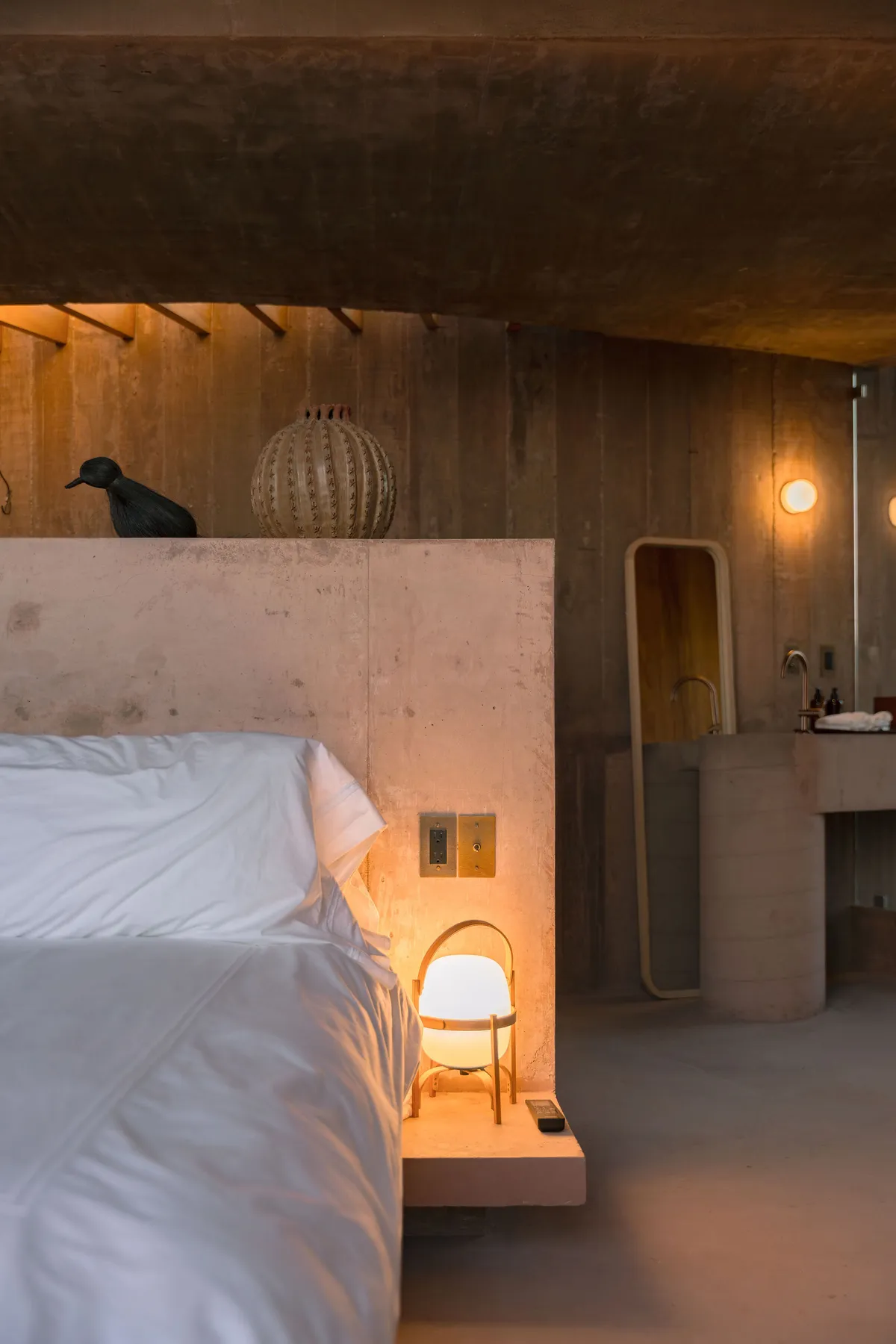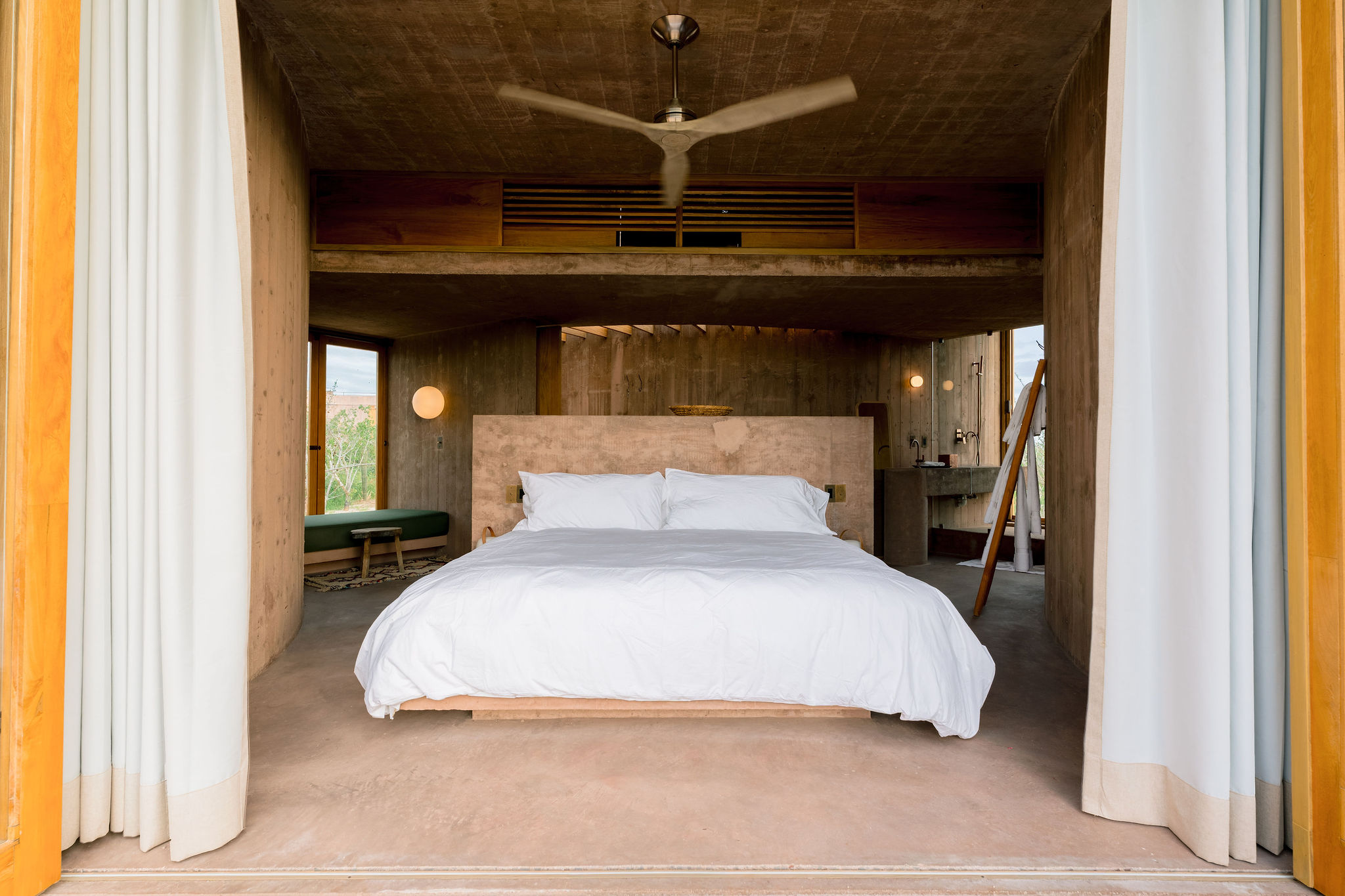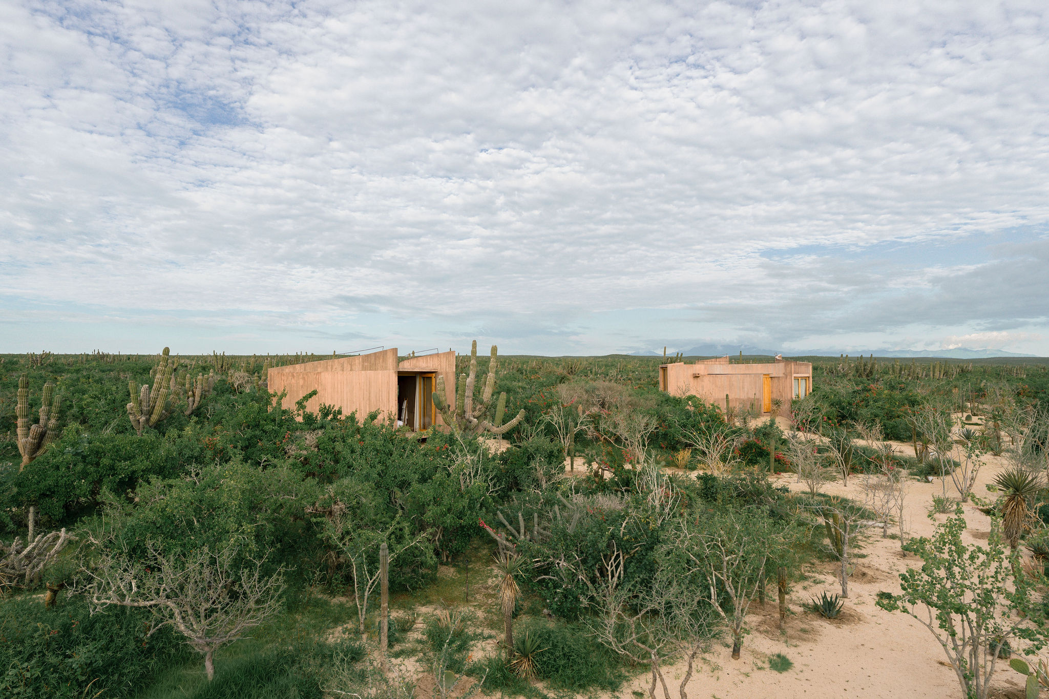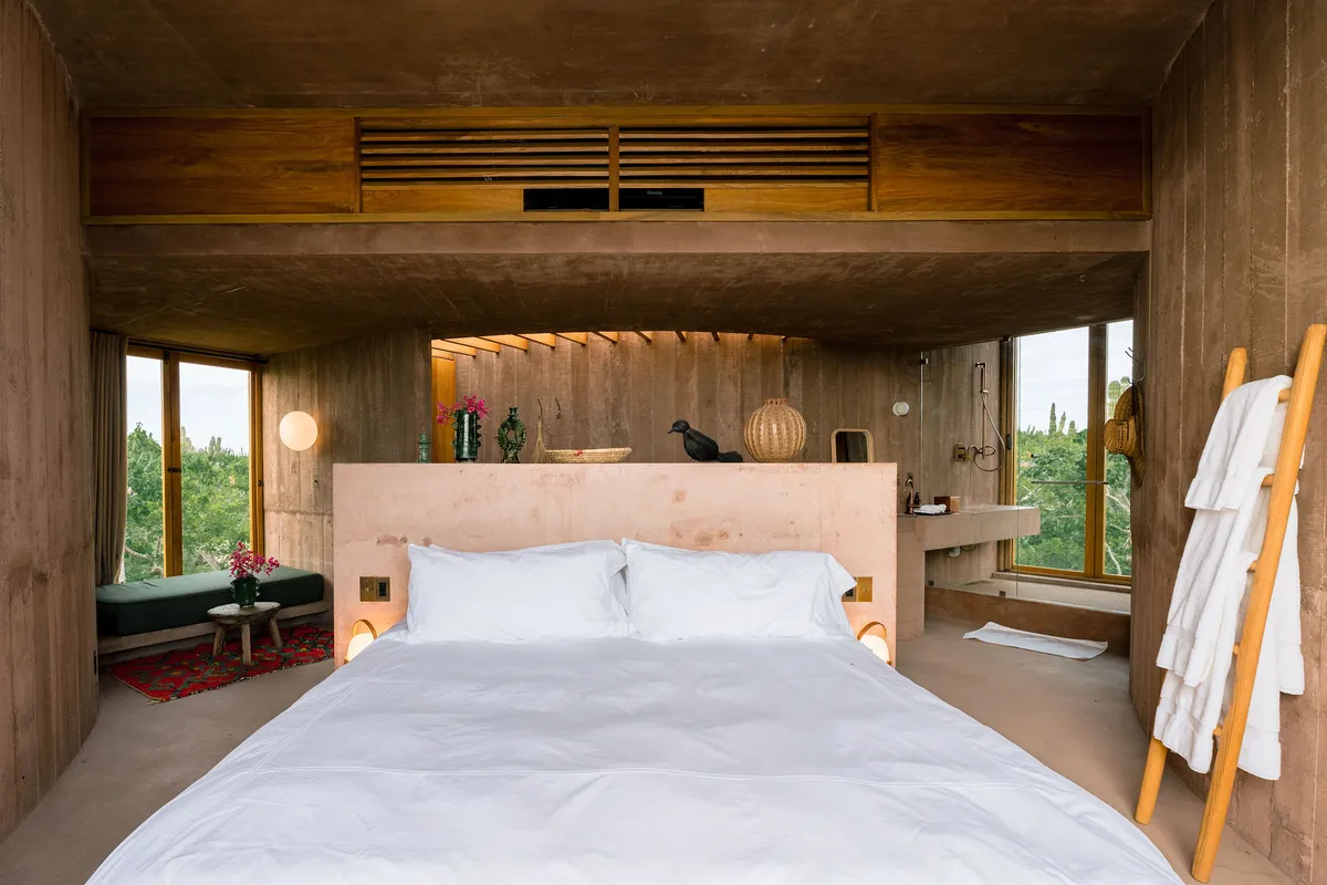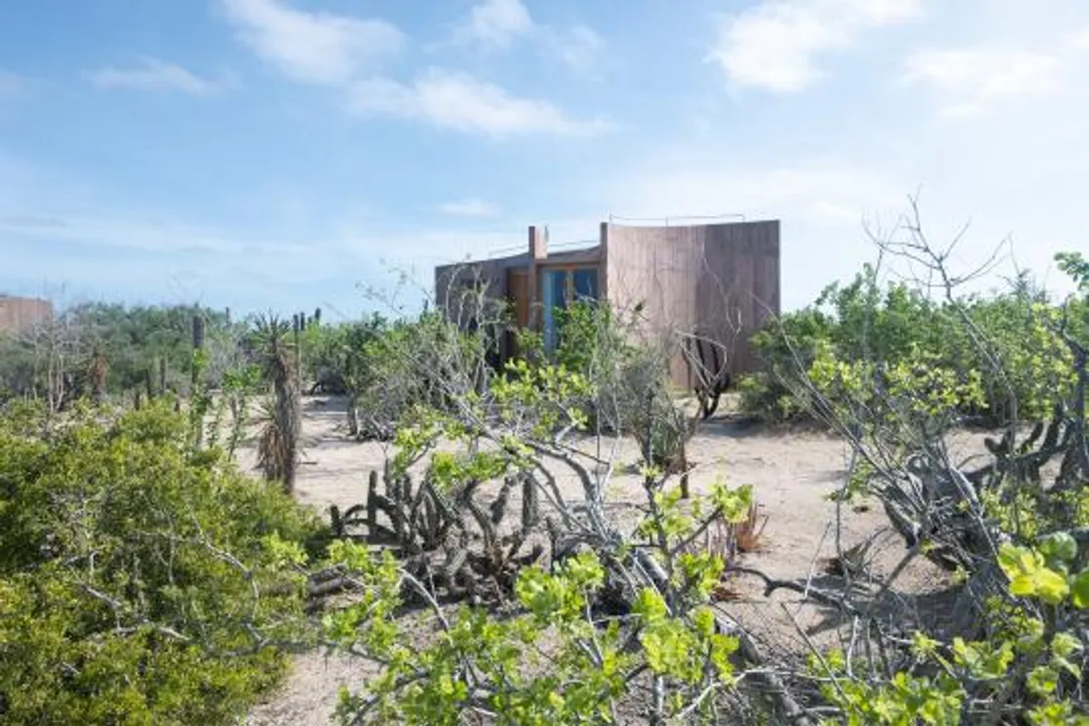 Rising from the desert landscape just north of Todos Santos, Nereidas is a brutalist statement piece softened by Baja’s wild beauty. Concrete walls, clean lines, and expansive windows frame endless views of the ocean and desert, creating a space that feels both sculptural and deeply livable.
