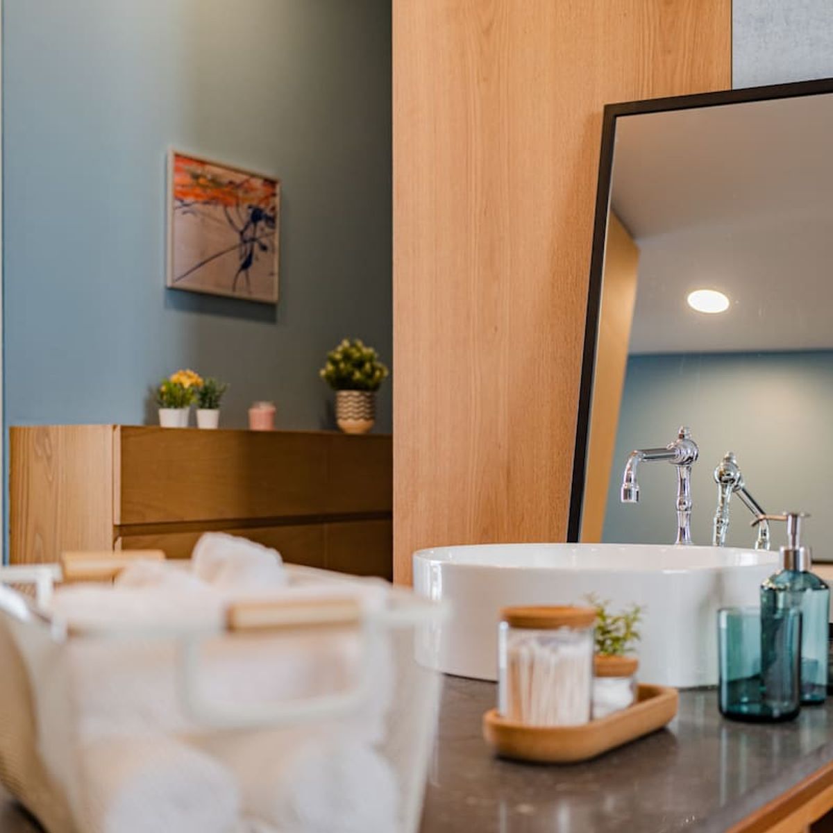 – Bedroom 3: Double bed + single bed, full bathroom, closet, 60" smart TV