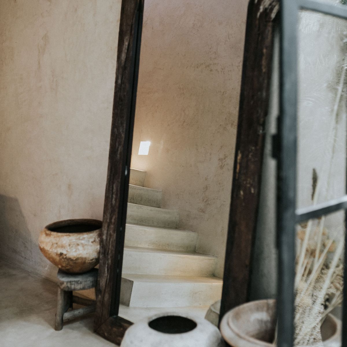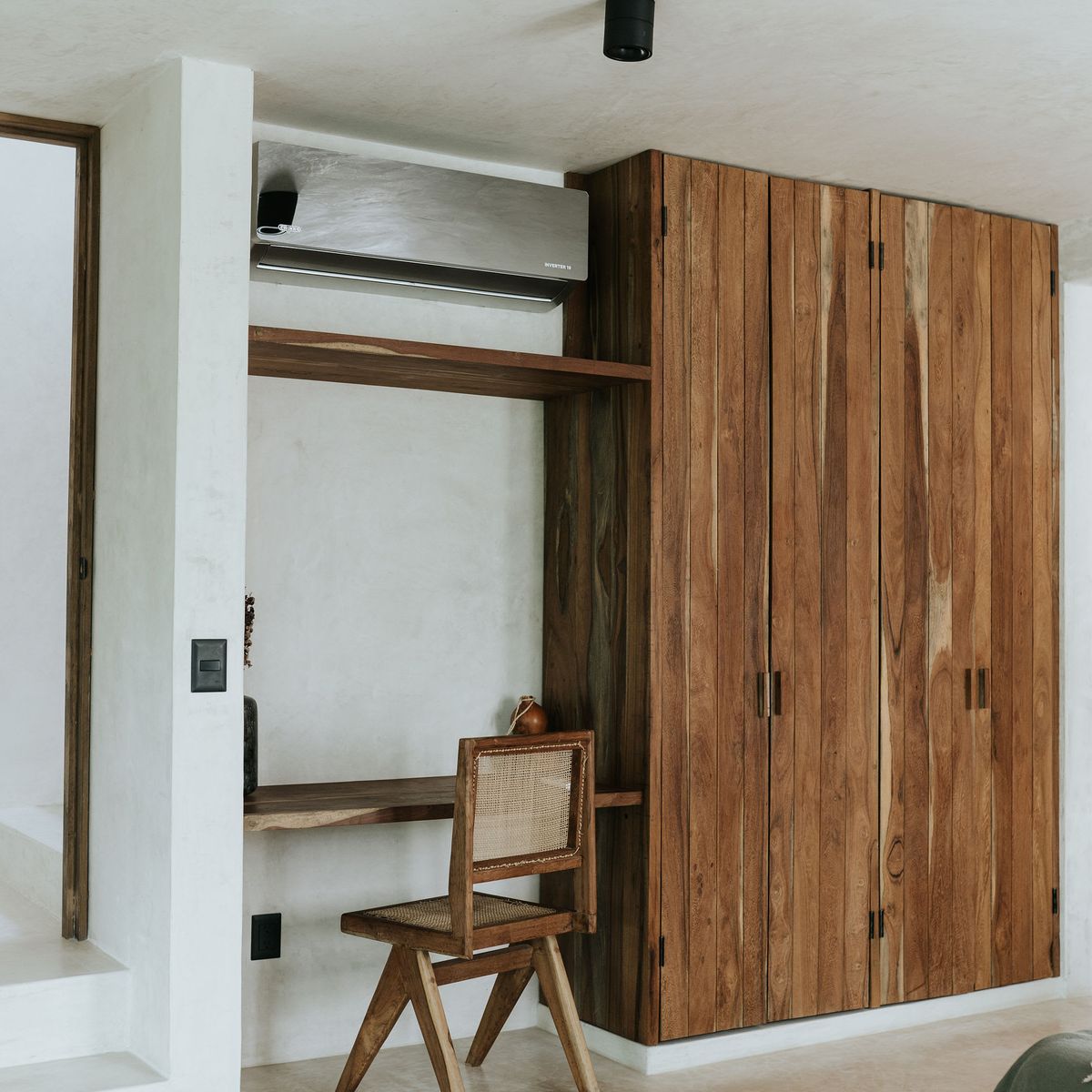 Penthouse Canopia let you experience the magic of Tulum. You walk in through a beautiful intimate jungle garden with hundreds of palms and tropical plants and peaceful water fountain. Entering the space over a private entrance you start in our Lobby, the spacious kitchen with views into the trees is fully equipped and made with beautiful wood of the region and a stunning long dining table.