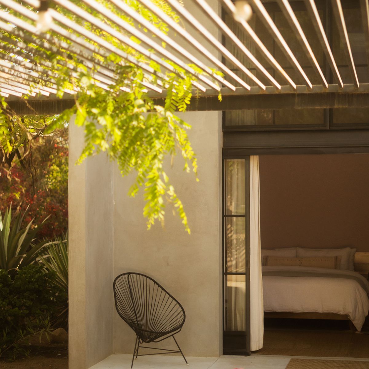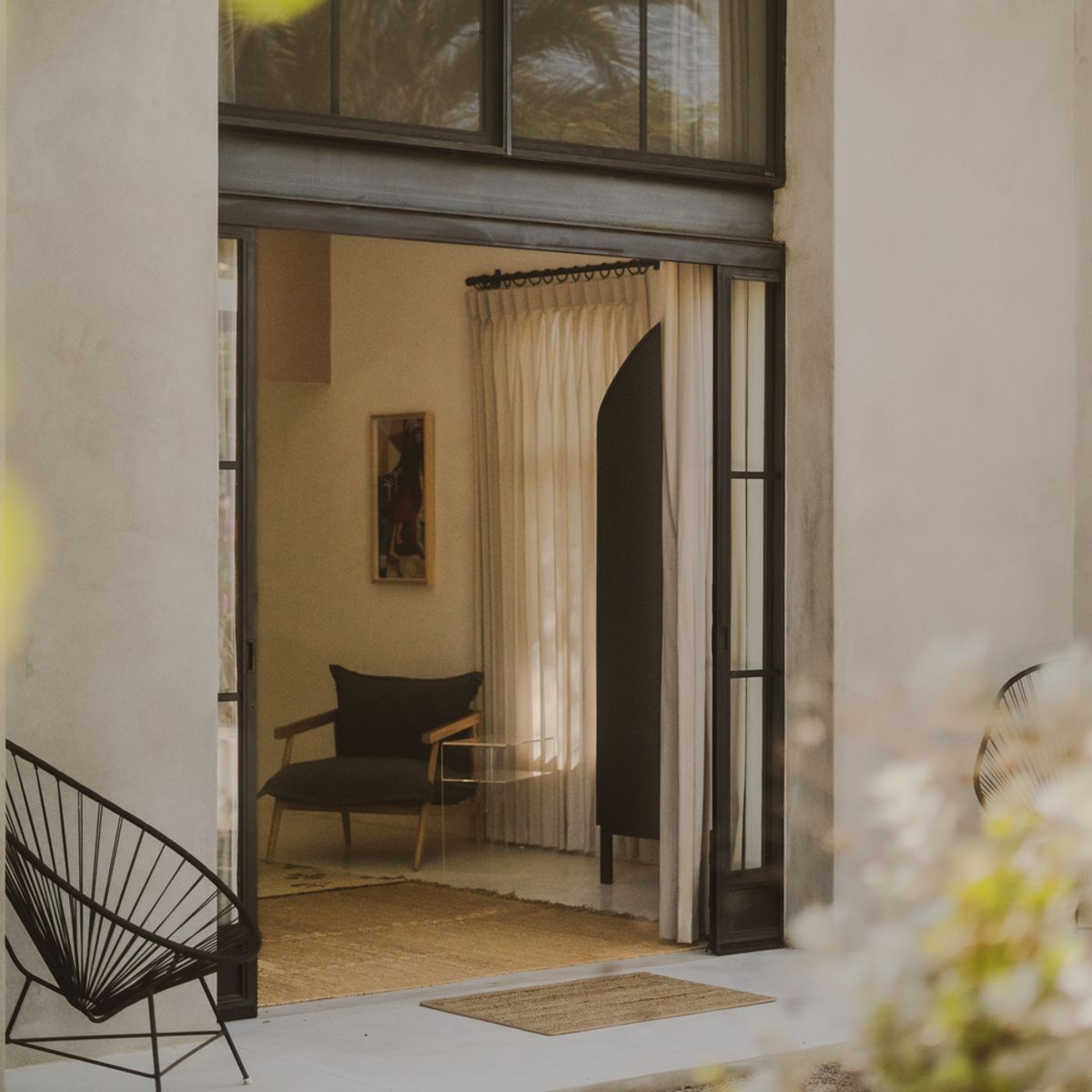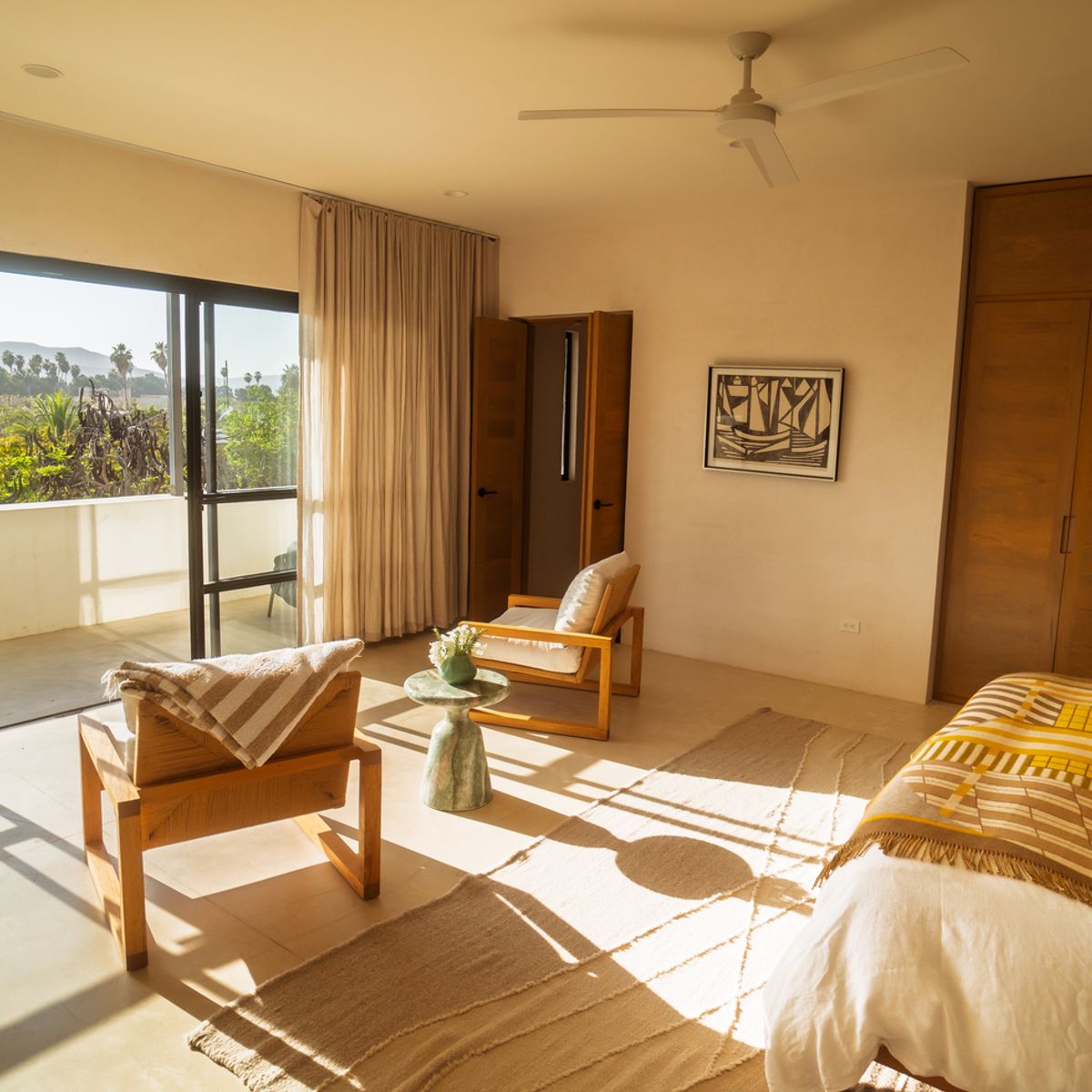 Guests arrive to a warm sense of openness: desert landscape, palm groves, and wide views of the mountains. Throughout the property, curated interiors combine natural materials with refined design—artisan ceramics, handcrafted furniture, mid-century pieces, and textiles sourced from across Mexico.