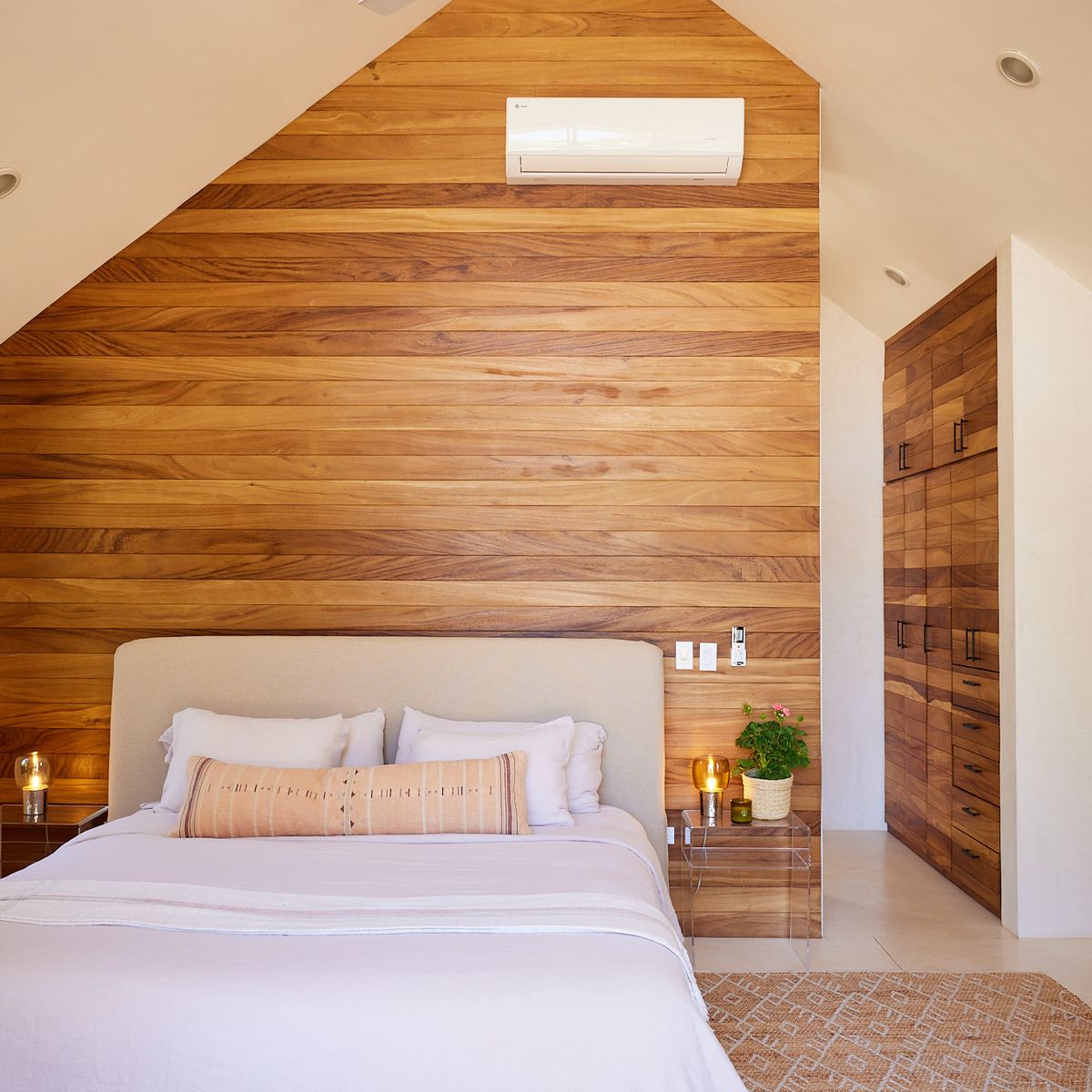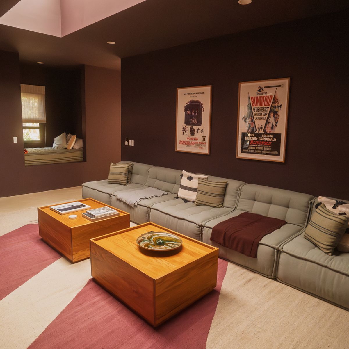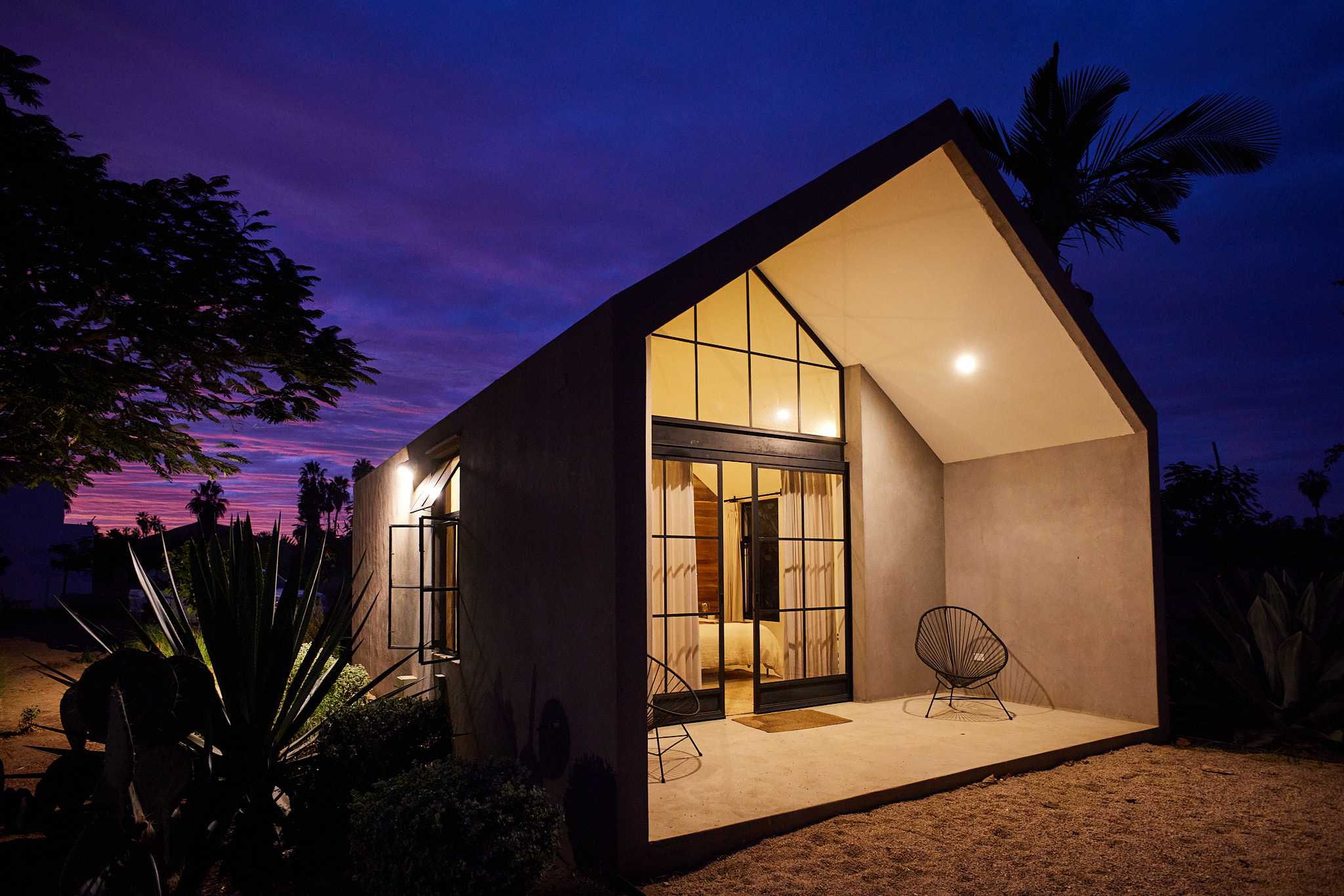 At the center of the estate is the communal house, the hub for gathering and dining. Here, guests have access to a full kitchen, indoor living room, laundry area, an outdoor dining terrace, and a wood-fired pizza oven. Just steps away, a 75-foot pool stretches alongside a jacuzzi and palapa, creating a relaxed environment for long days in the sun.