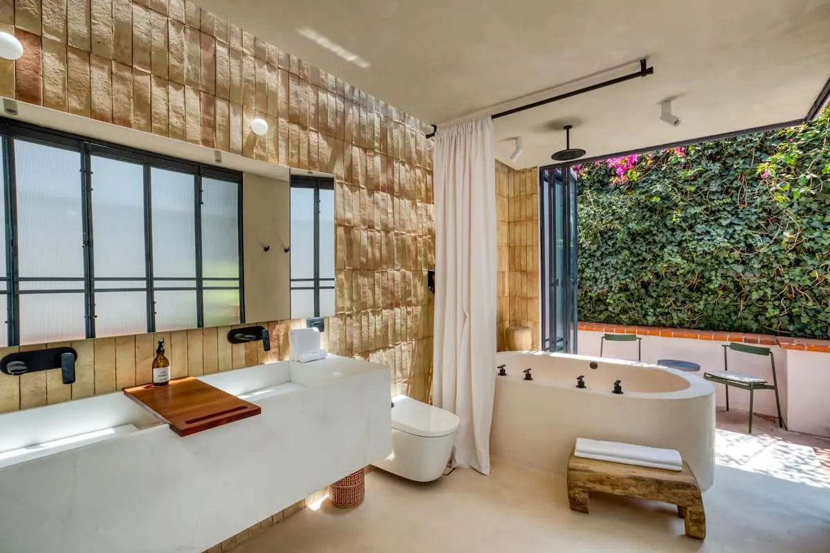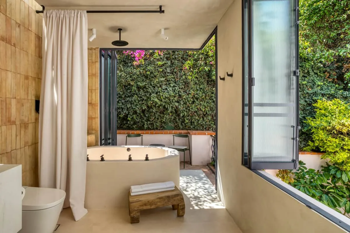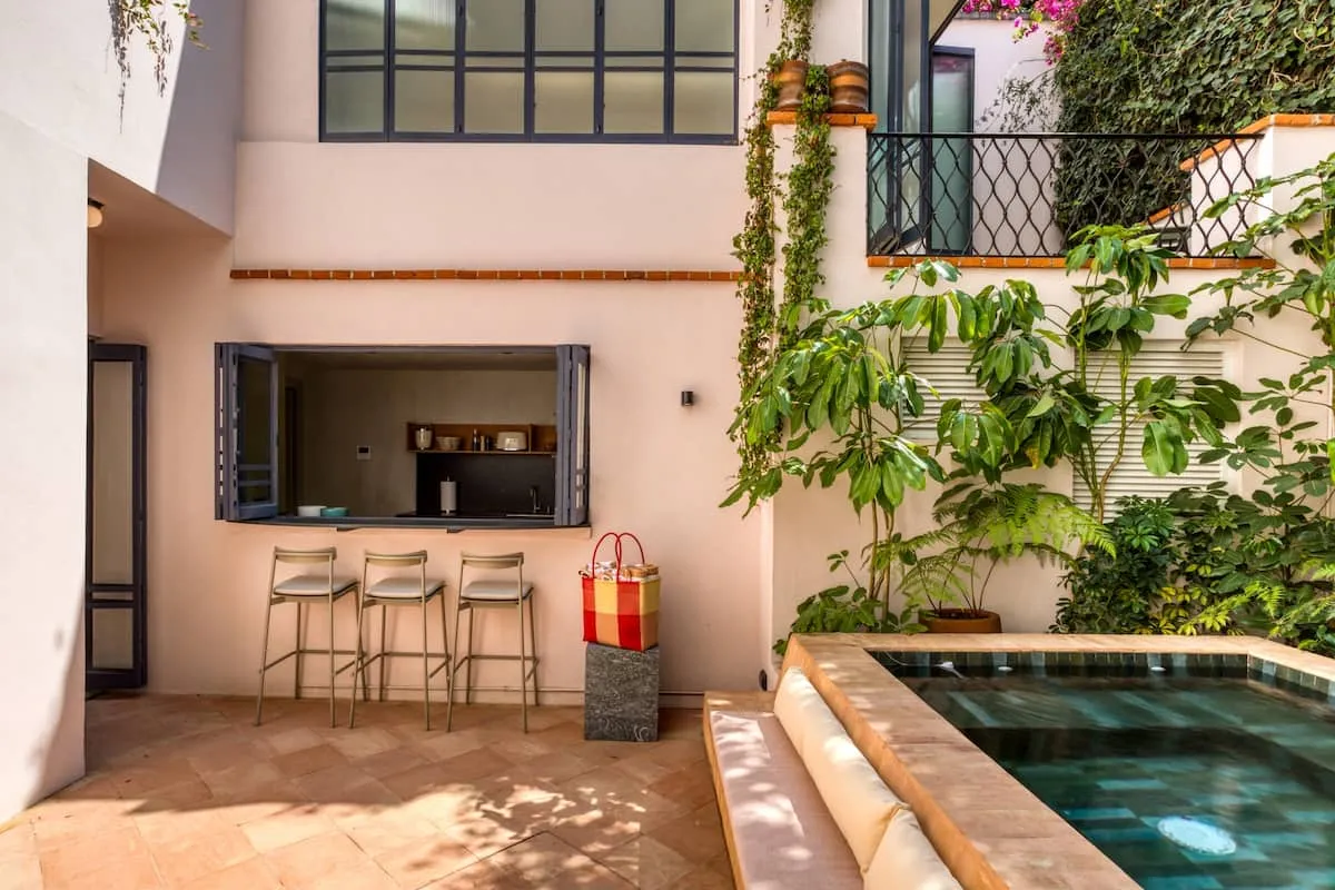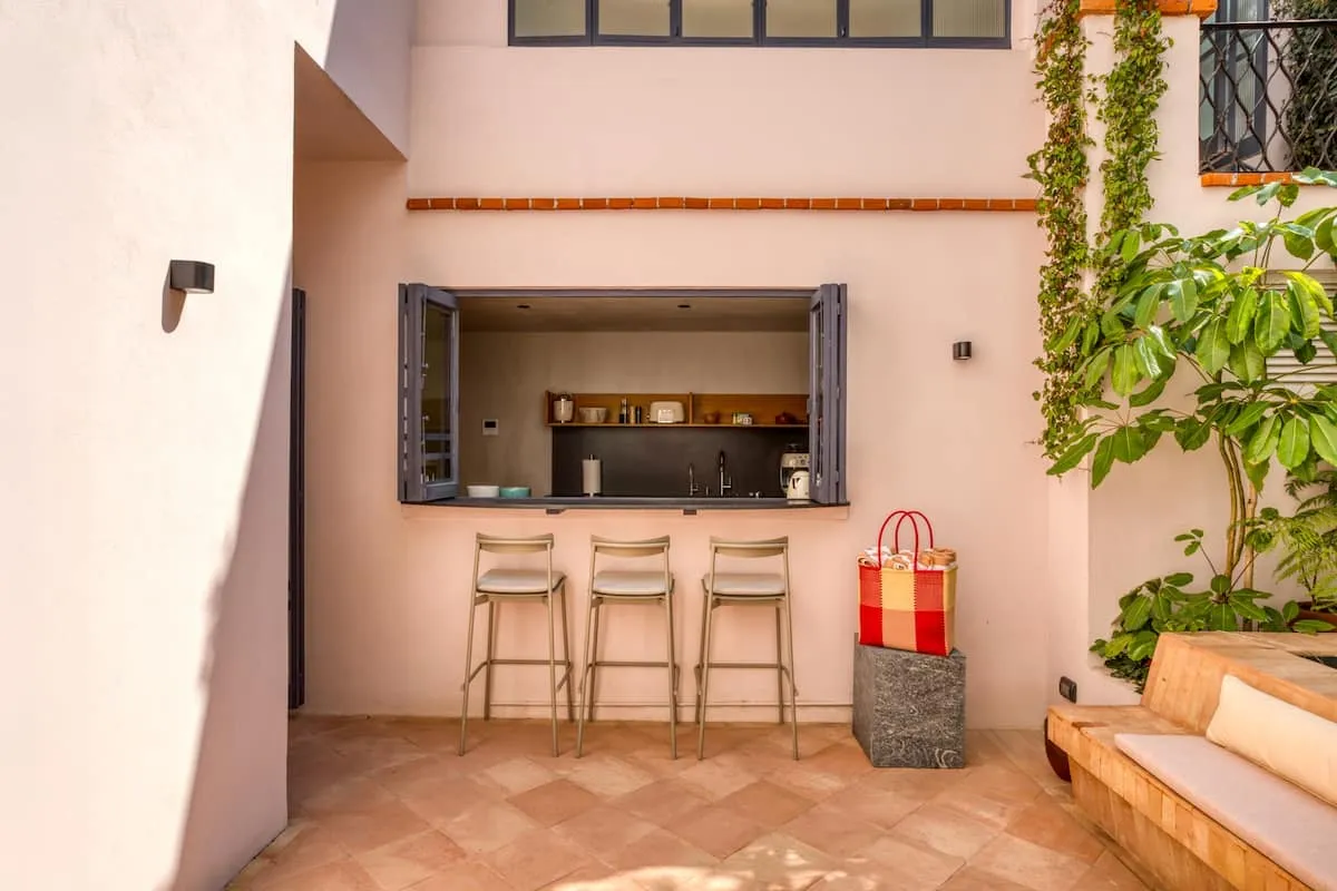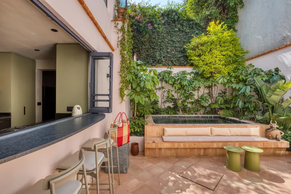 This gorgeously restored 1940s home features four spacious bedrooms, each thoughtfully designed with king-size beds and air conditioning. The primary suite features a private bathroom featuring a soaking tub, as well as a terrace—perfect for enjoying a quiet morning or evening. Throughout the home, you’ll find a carefully selected collection of Mexican art.