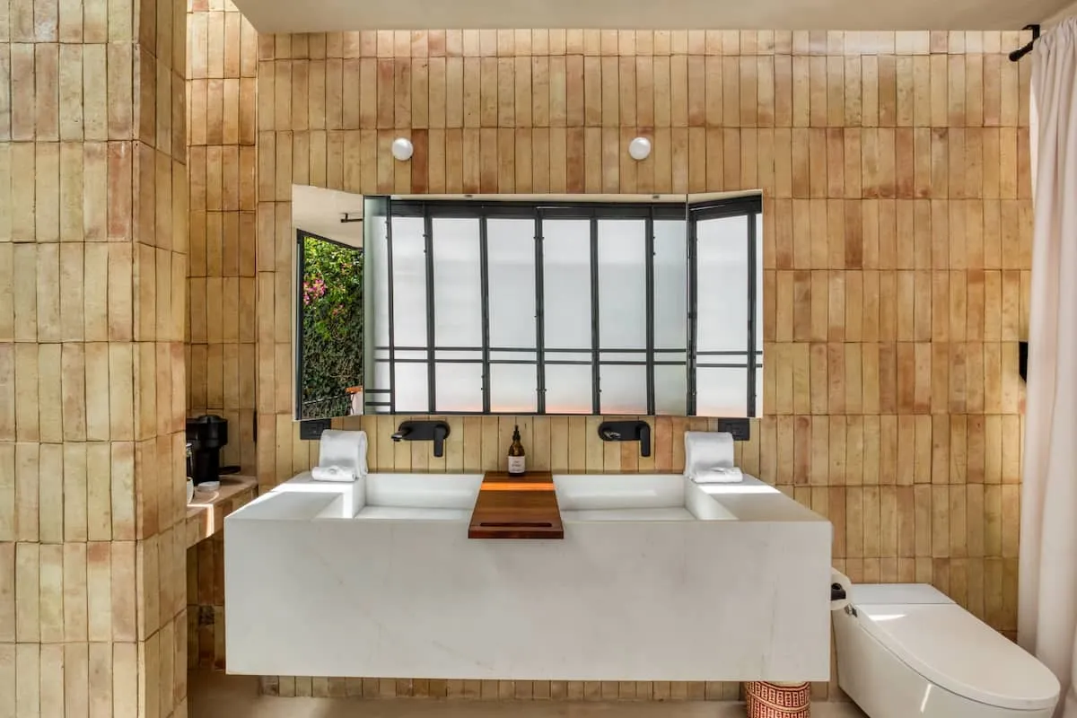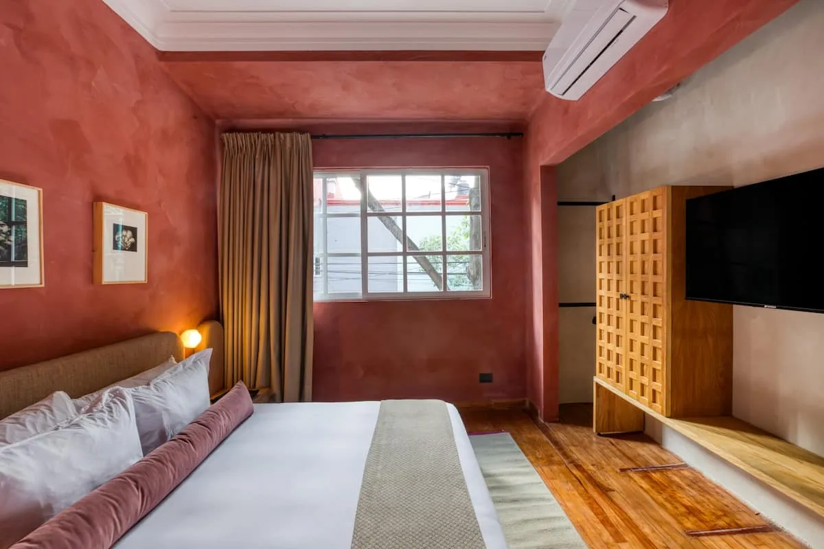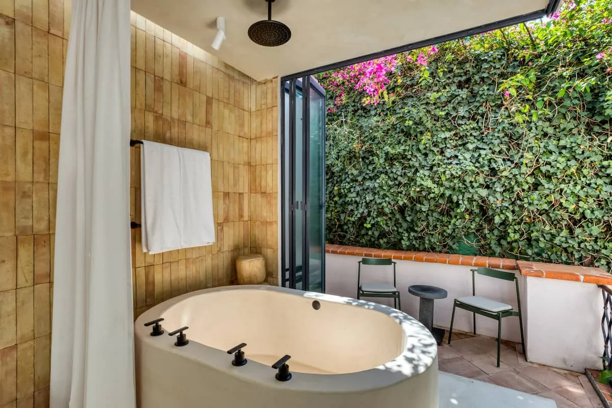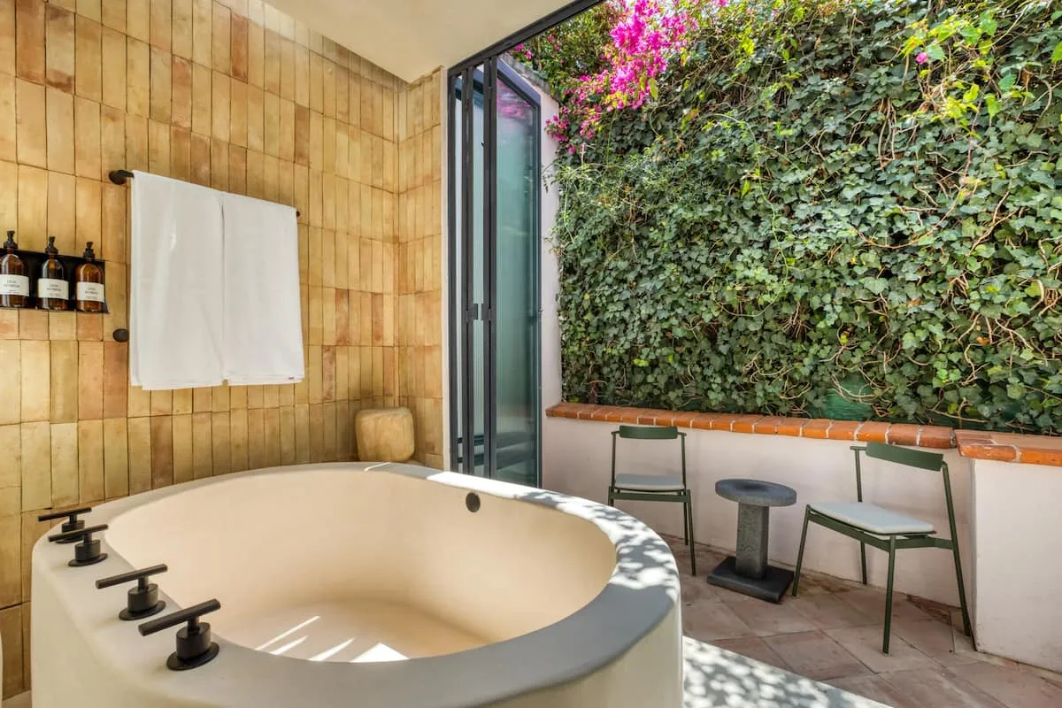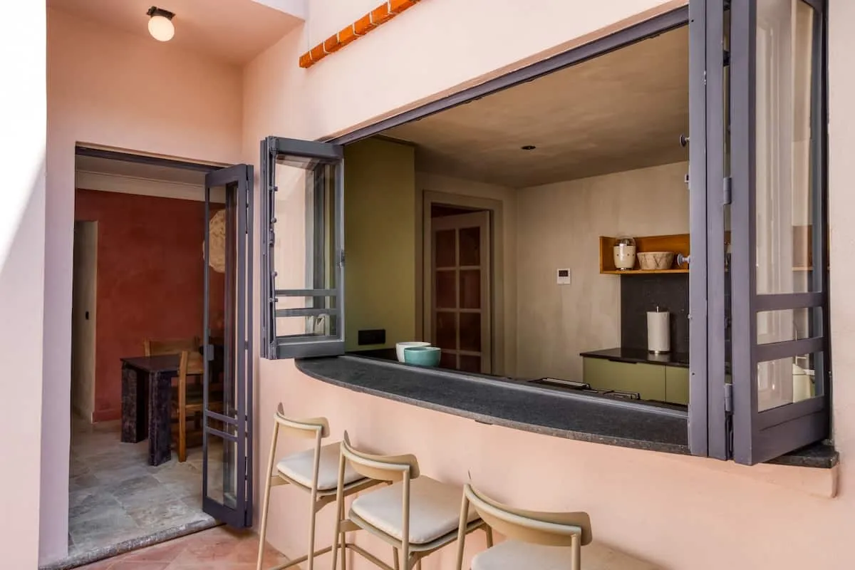 This gorgeously restored 1940s home features four spacious bedrooms, each thoughtfully designed with king-size beds and air conditioning. The primary suite features a private bathroom featuring a soaking tub, as well as a terrace—perfect for enjoying a quiet morning or evening. Throughout the home, you’ll find a carefully selected collection of Mexican art.