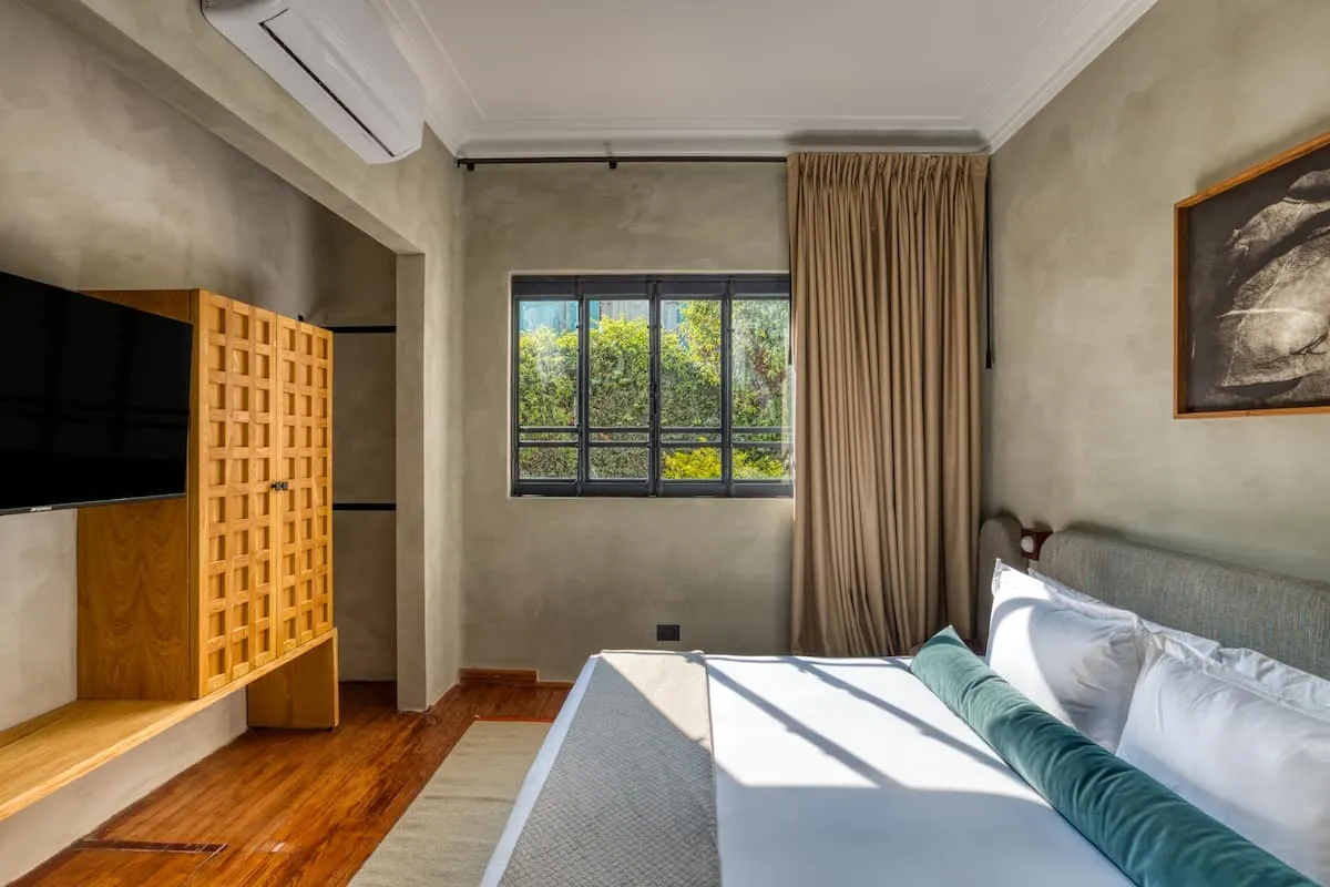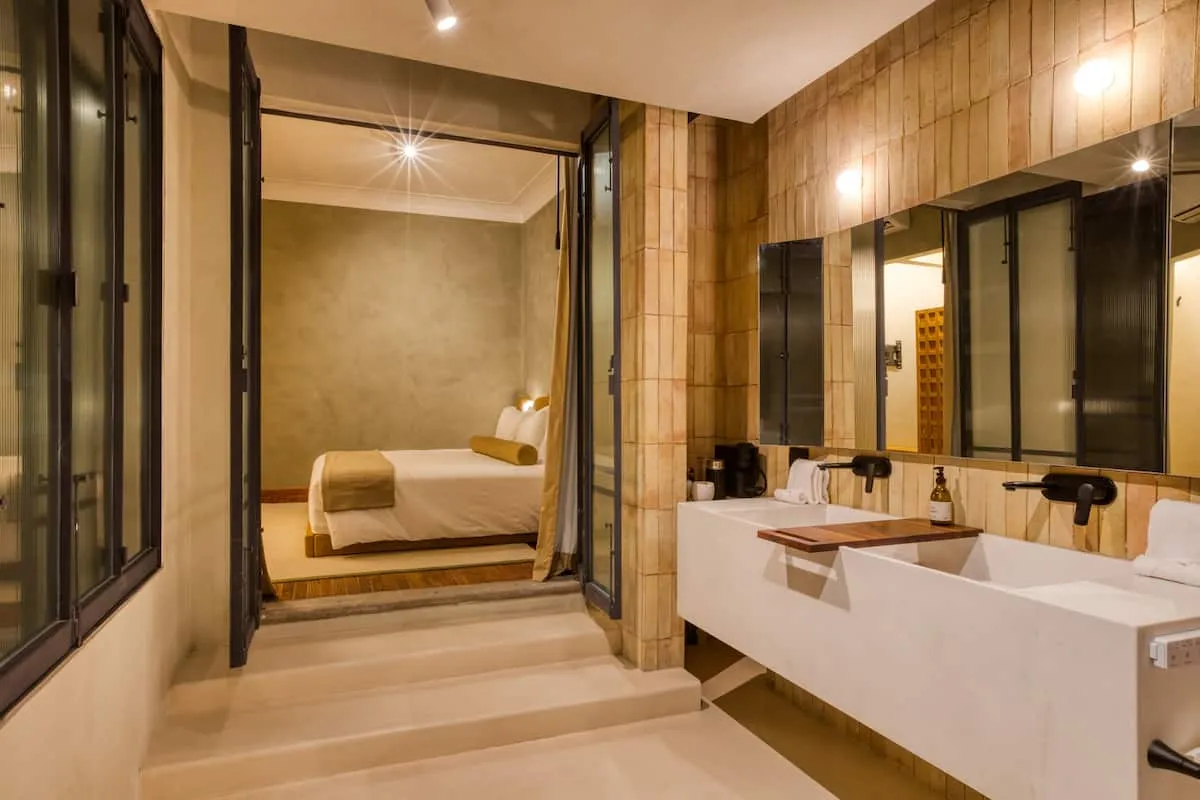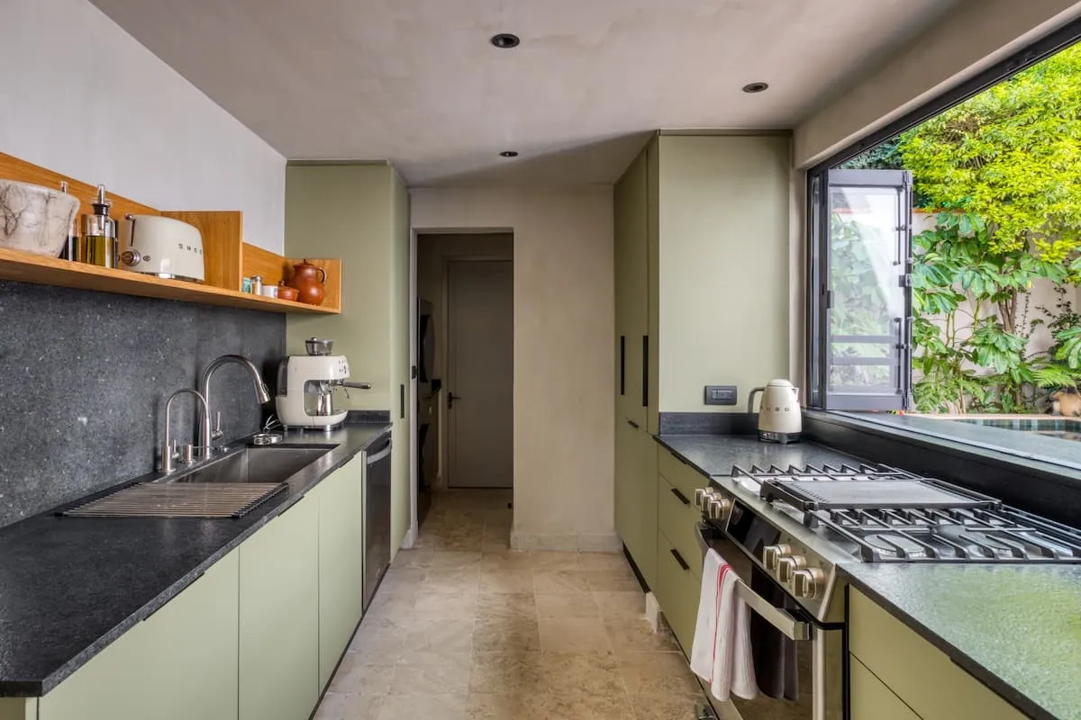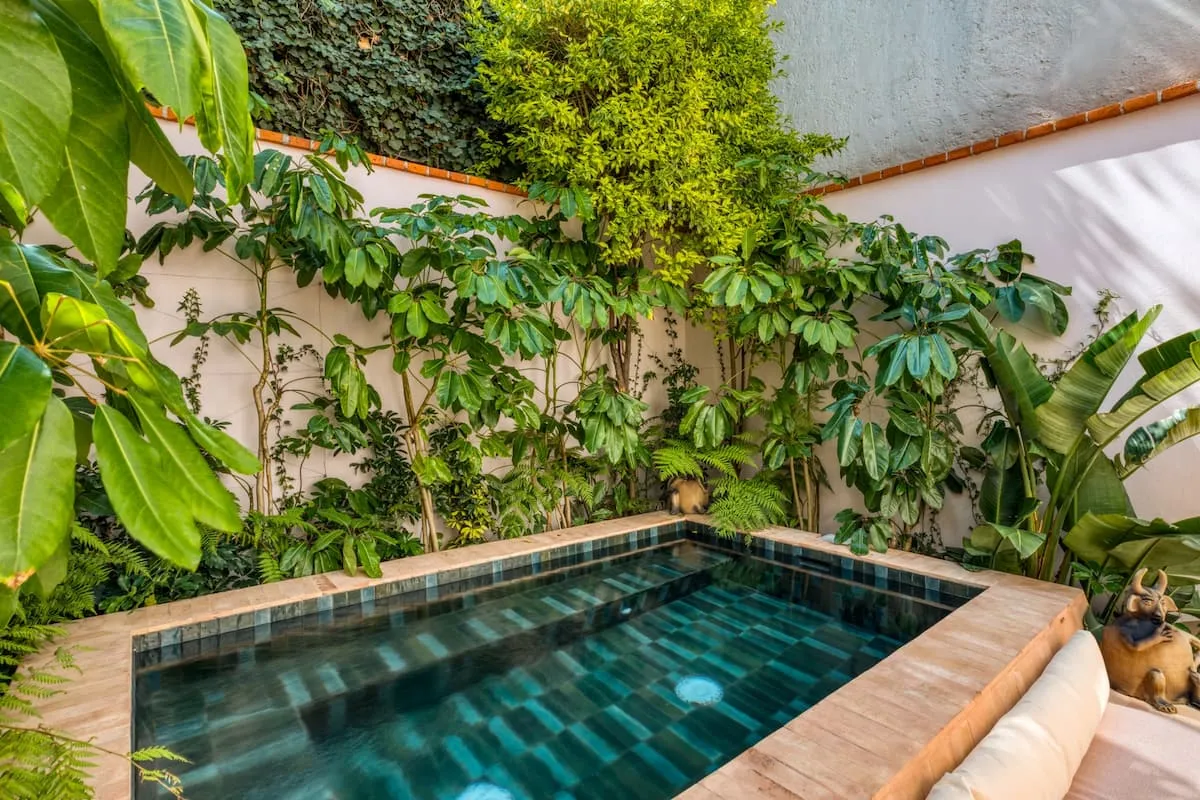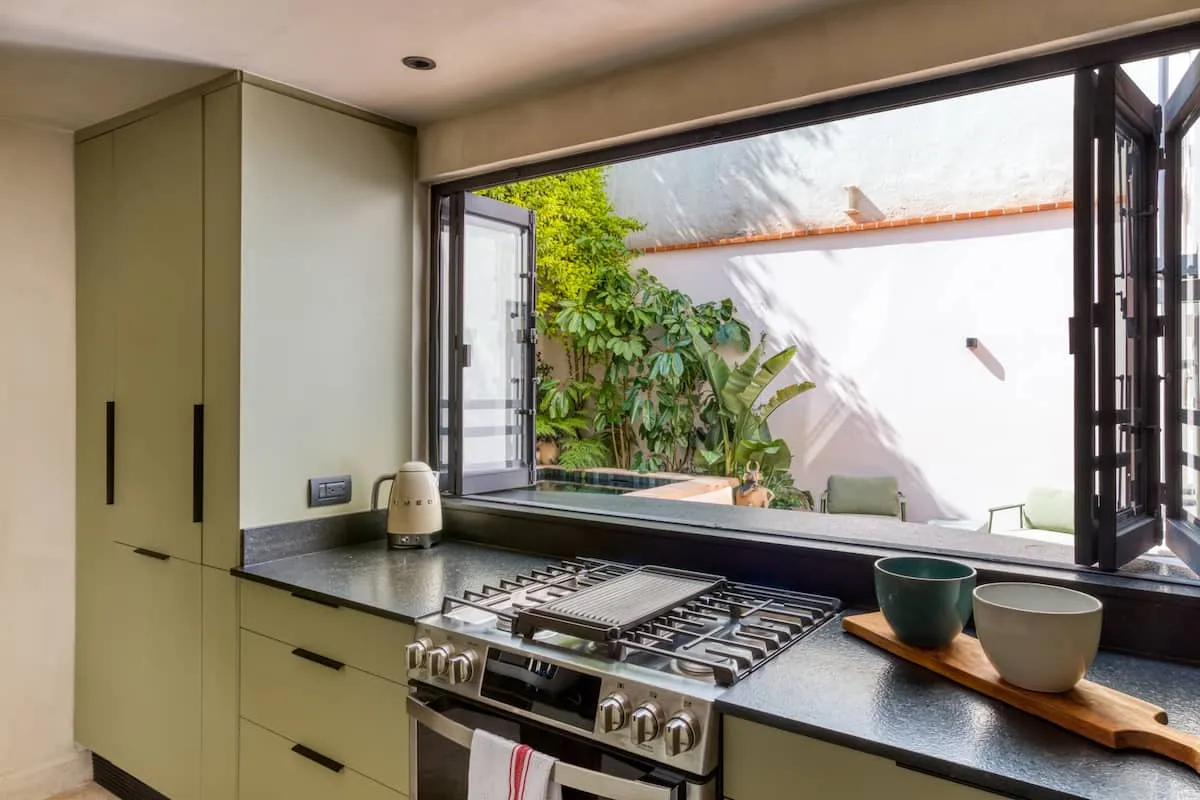 This gorgeously restored 1940s home features four spacious bedrooms, each thoughtfully designed with king-size beds and air conditioning. The primary suite features a private bathroom featuring a soaking tub, as well as a terrace—perfect for enjoying a quiet morning or evening. Throughout the home, you’ll find a carefully selected collection of Mexican art.