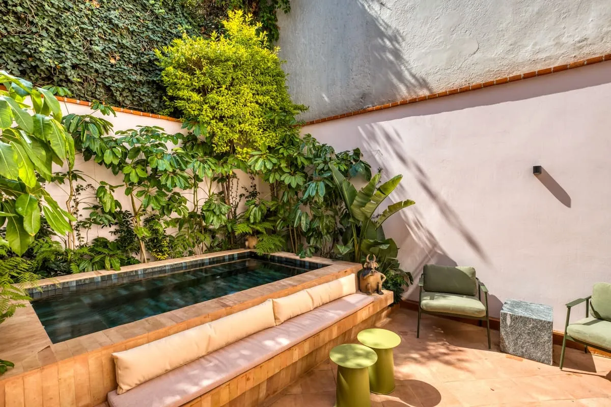 Step outside into the private garden, where a small heated pool invites you to unwind in total privacy - an ideal retreat after a day exploring the city.