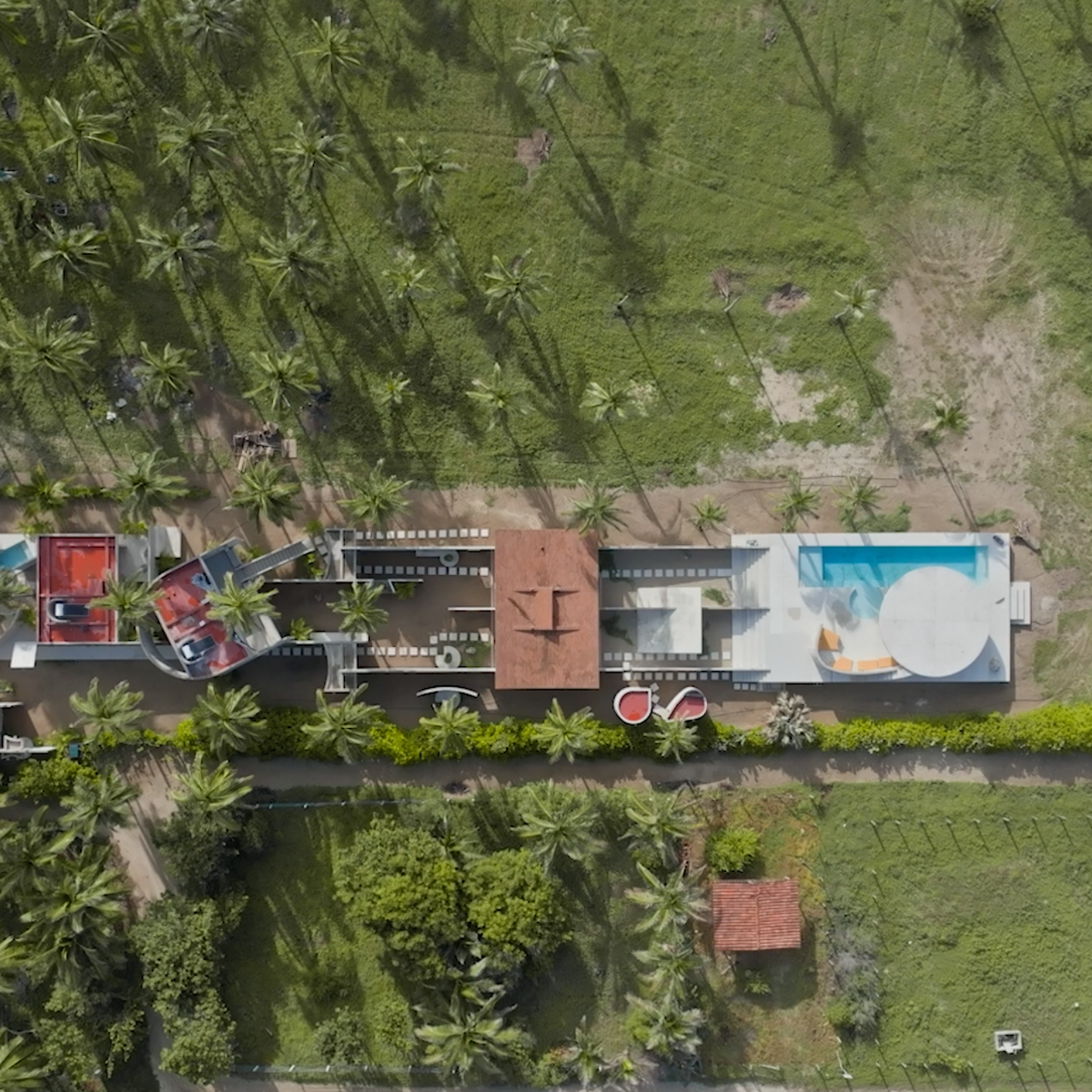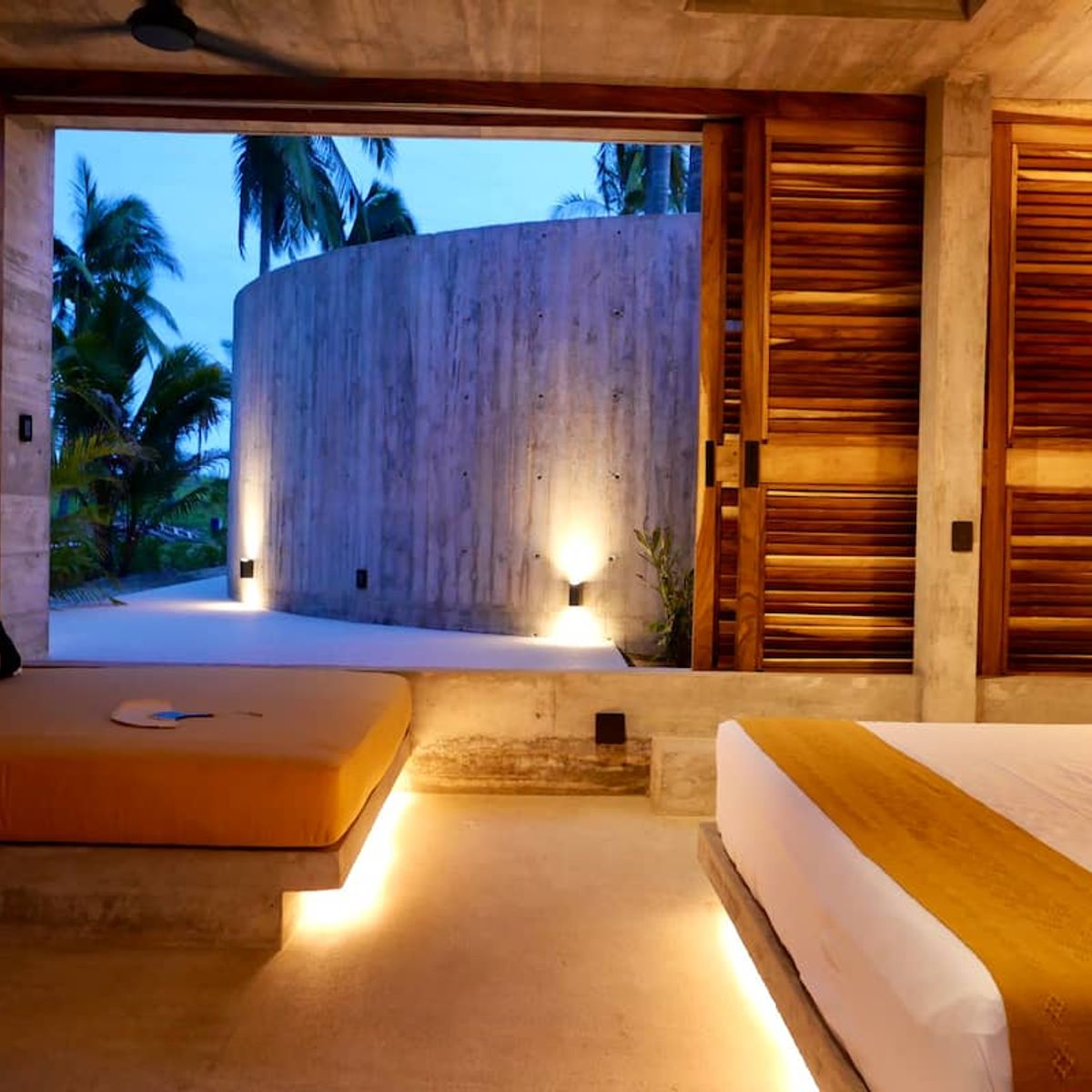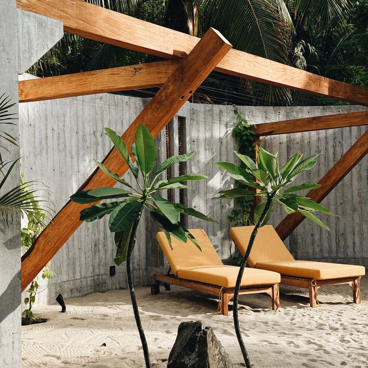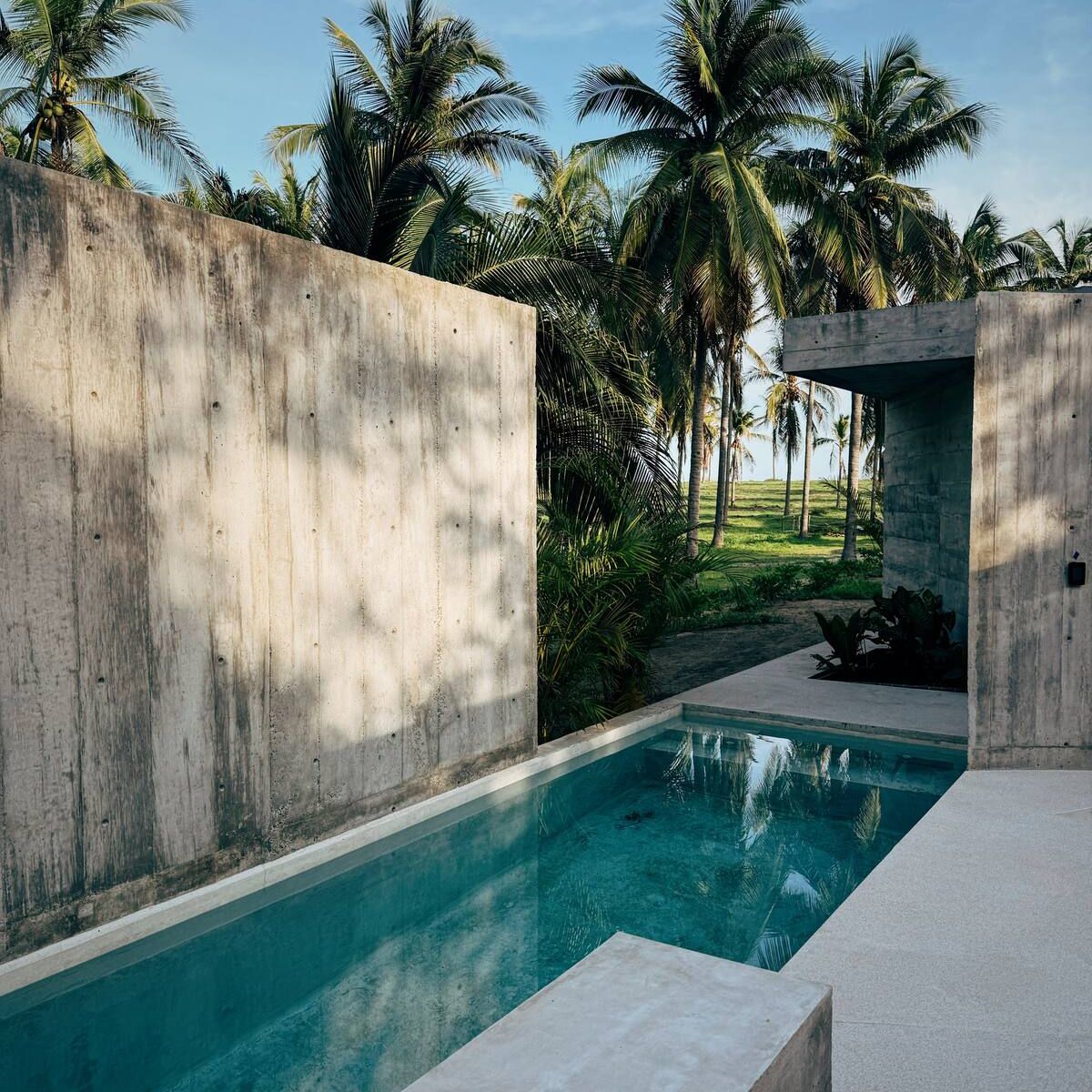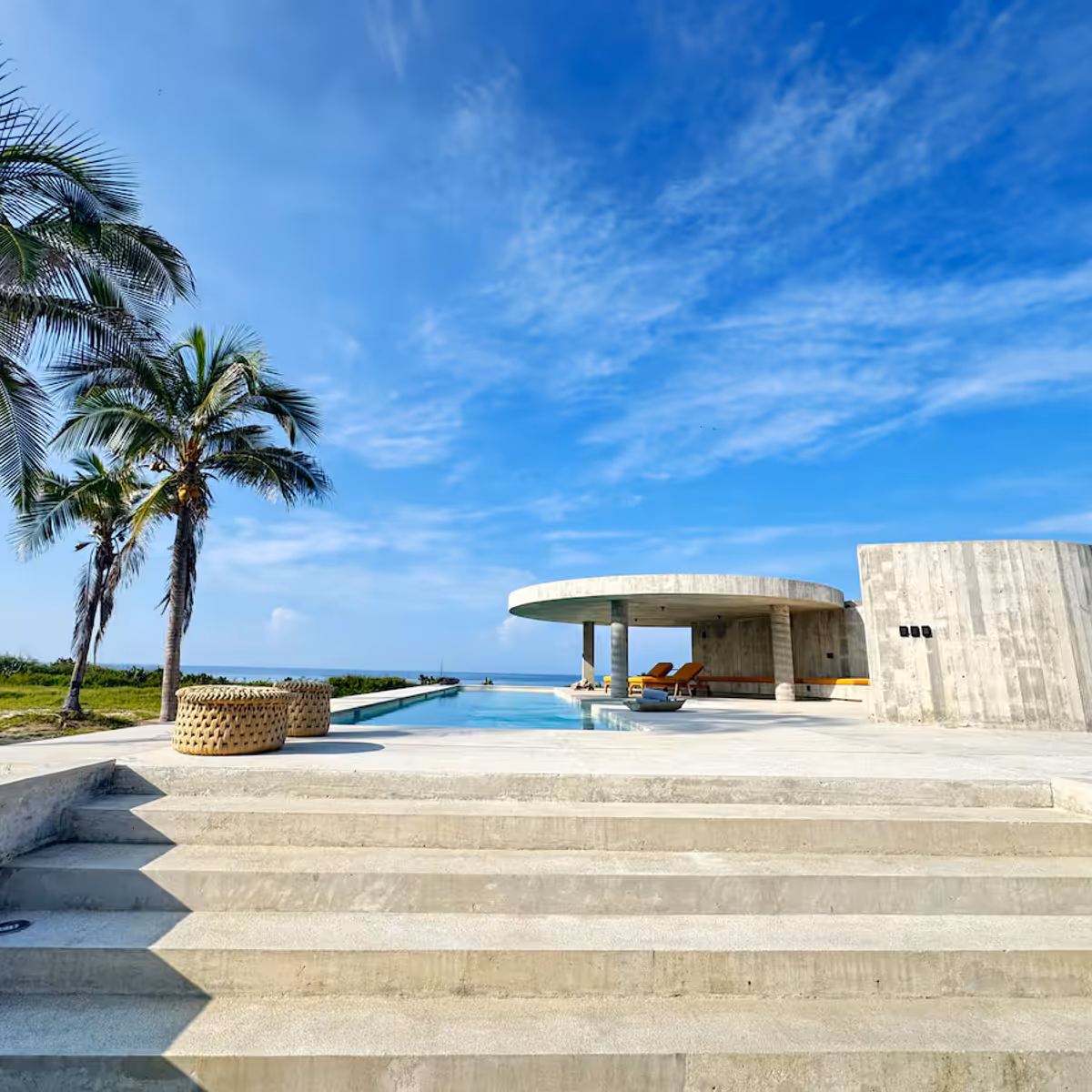 This brutalist masterpiece is a beachfront brutalist retreat located just 20 minutes from Casa Wabi and 45 minutes from Puerto Escondido airport. Surrounded by towering palm trees and untouched beaches, the house feels like a sculptural hideaway carved into the coastline — a place designed for stillness, introspection, and true disconnection.