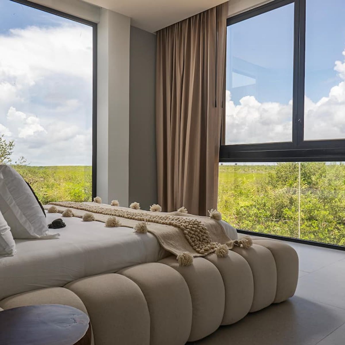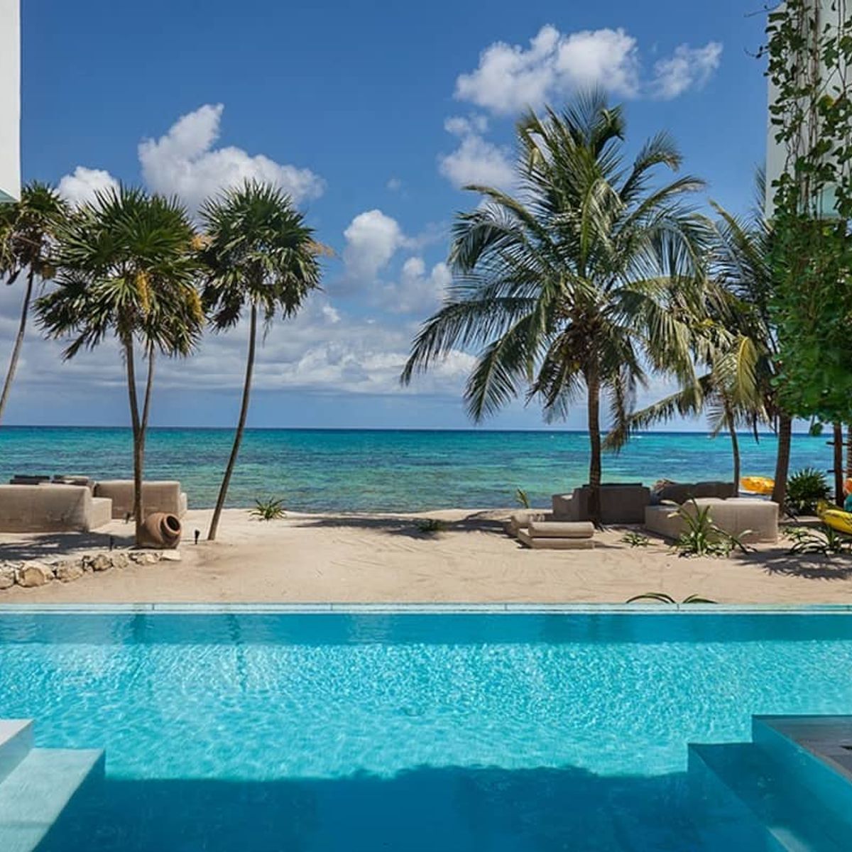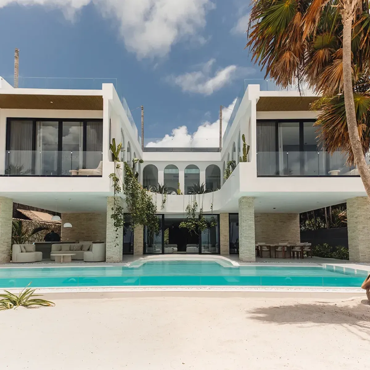 Studio 54 is an 800 sqm architectural beachfront residence, set within a secluded private bay just 10 minutes from Tulum. Designed to frame both the ocean and the surrounding jungle, the villa blends clean contemporary lines with warm natural textures, creating a serene and sophisticated retreat.