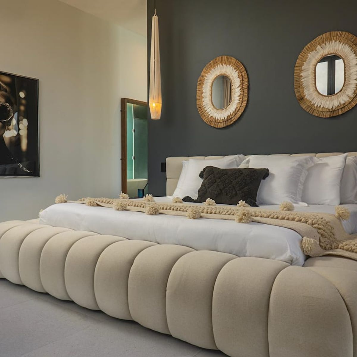 Beyond its architectural elegance, Studio 54 is fully serviced for a seamless stay. A private chef, dedicated concierge, butler, and daily housekeeping attend to every detail, while curated amenities include a cinema room, gym, paddleboards, kayaks, Green Egg BBQ, and dining for twelve both indoors and out. A private generator ensures uninterrupted comfort, making this villa as functional as it is beautiful.