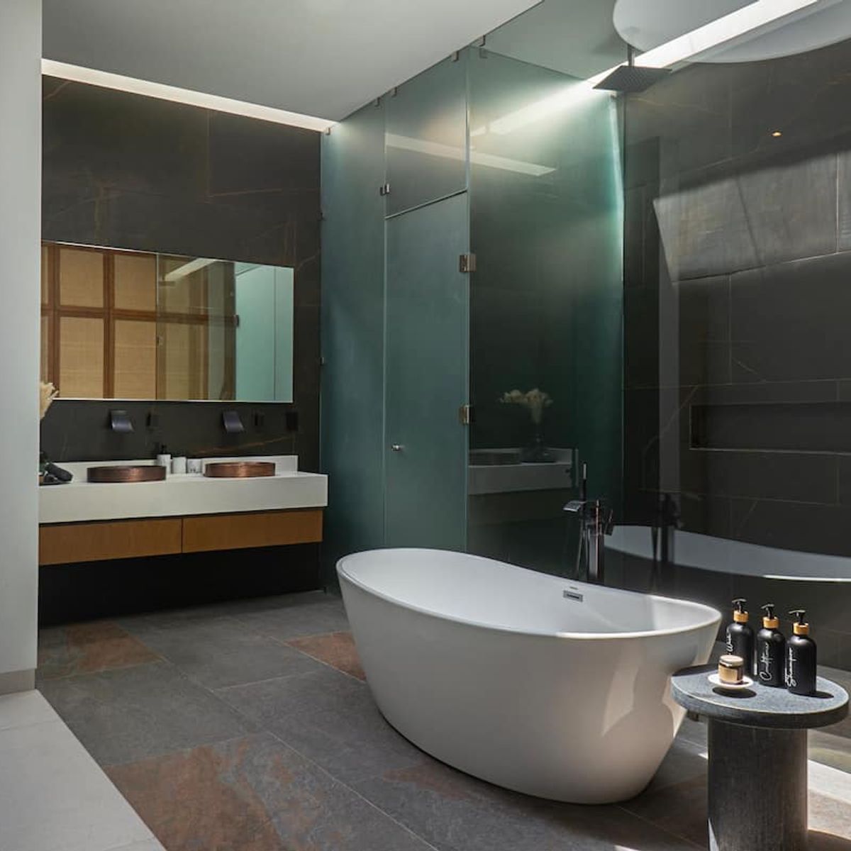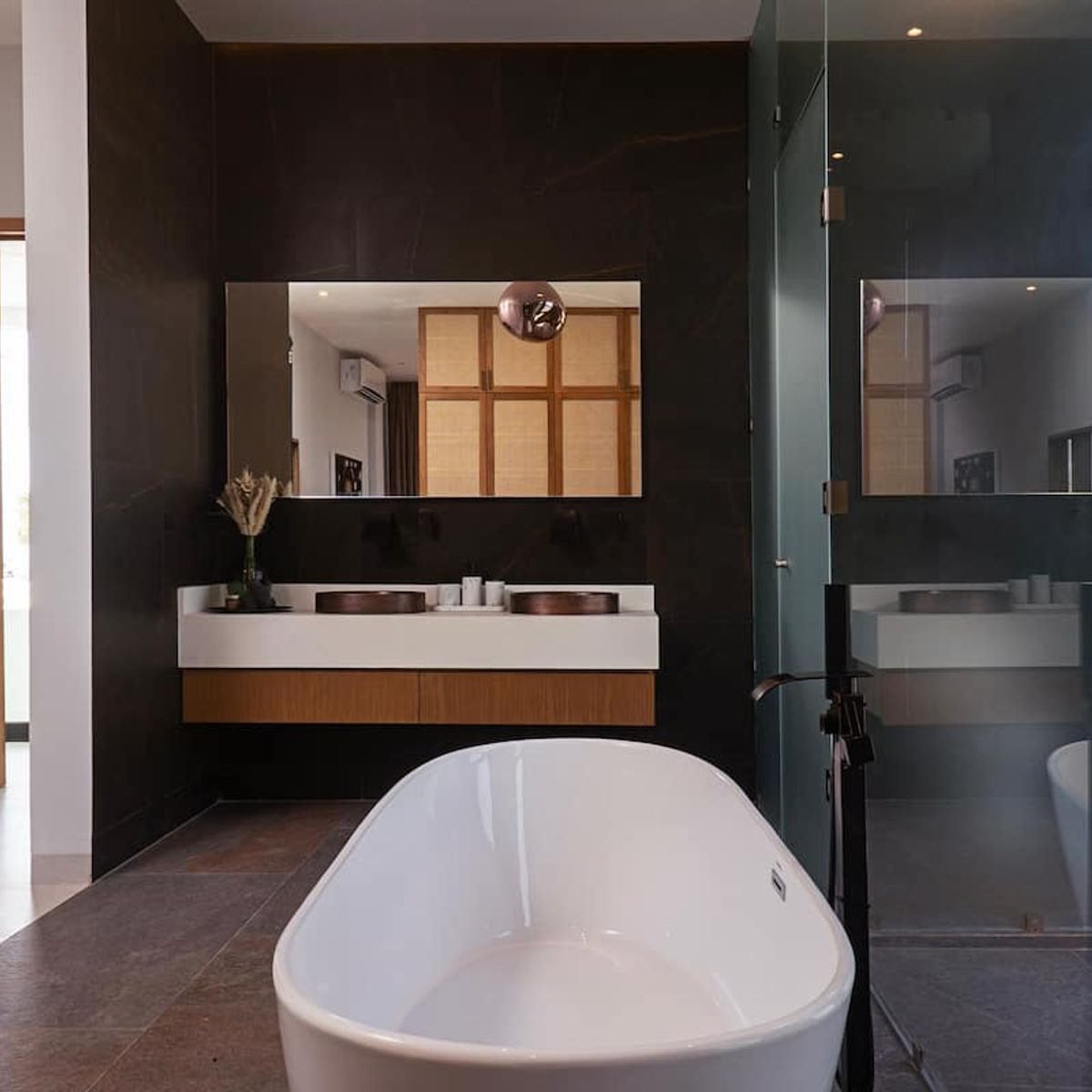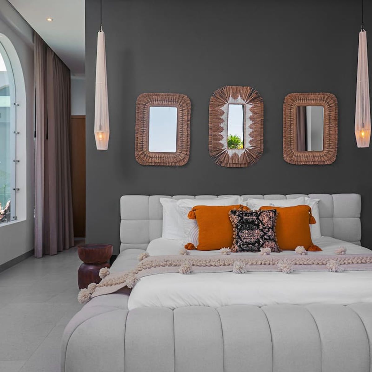 The home offers expansive indoor–outdoor living, two pools — including a rooftop pool that transforms into a jacuzzi — and direct access to a pristine stretch of beach. Six generously proportioned suites, each with a king-size bed, en-suite bathroom, and air conditioning, are oriented to capture either sweeping sea views or lush jungle vistas. Two master suites feature private terraces and spa-style bathrooms with rain showers and freestanding bathtubs.