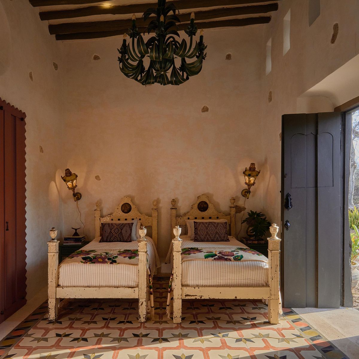 This room offers two twin beds and a private bathroom with a tub and a waterfall shower.