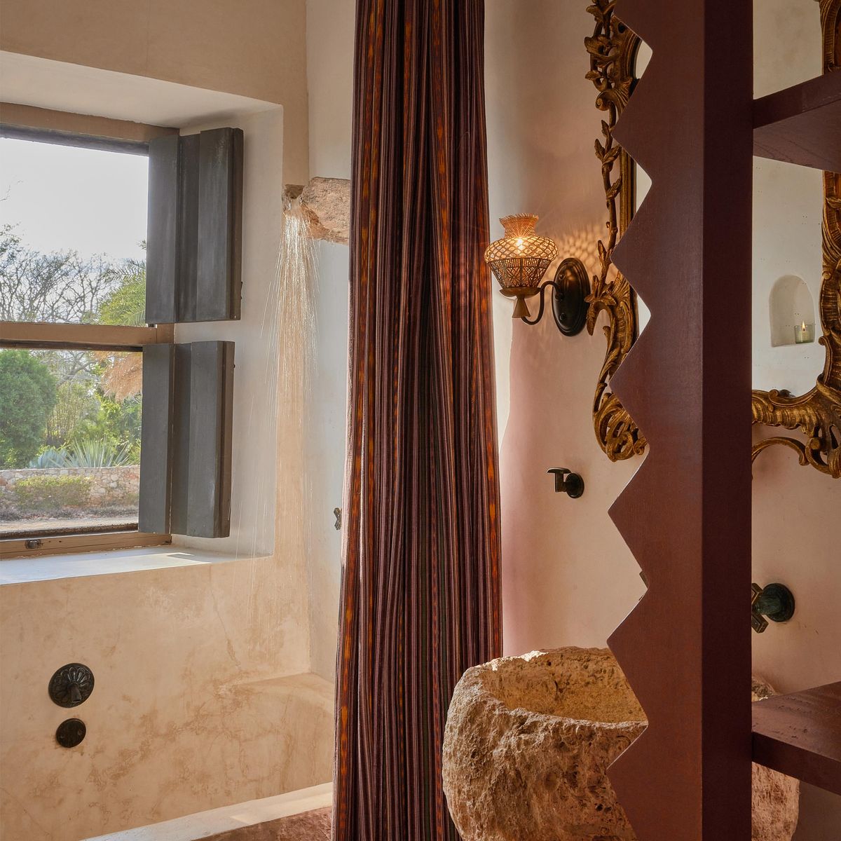 Each room has a King bed and a private bathroom with a tub and a waterfall shower.