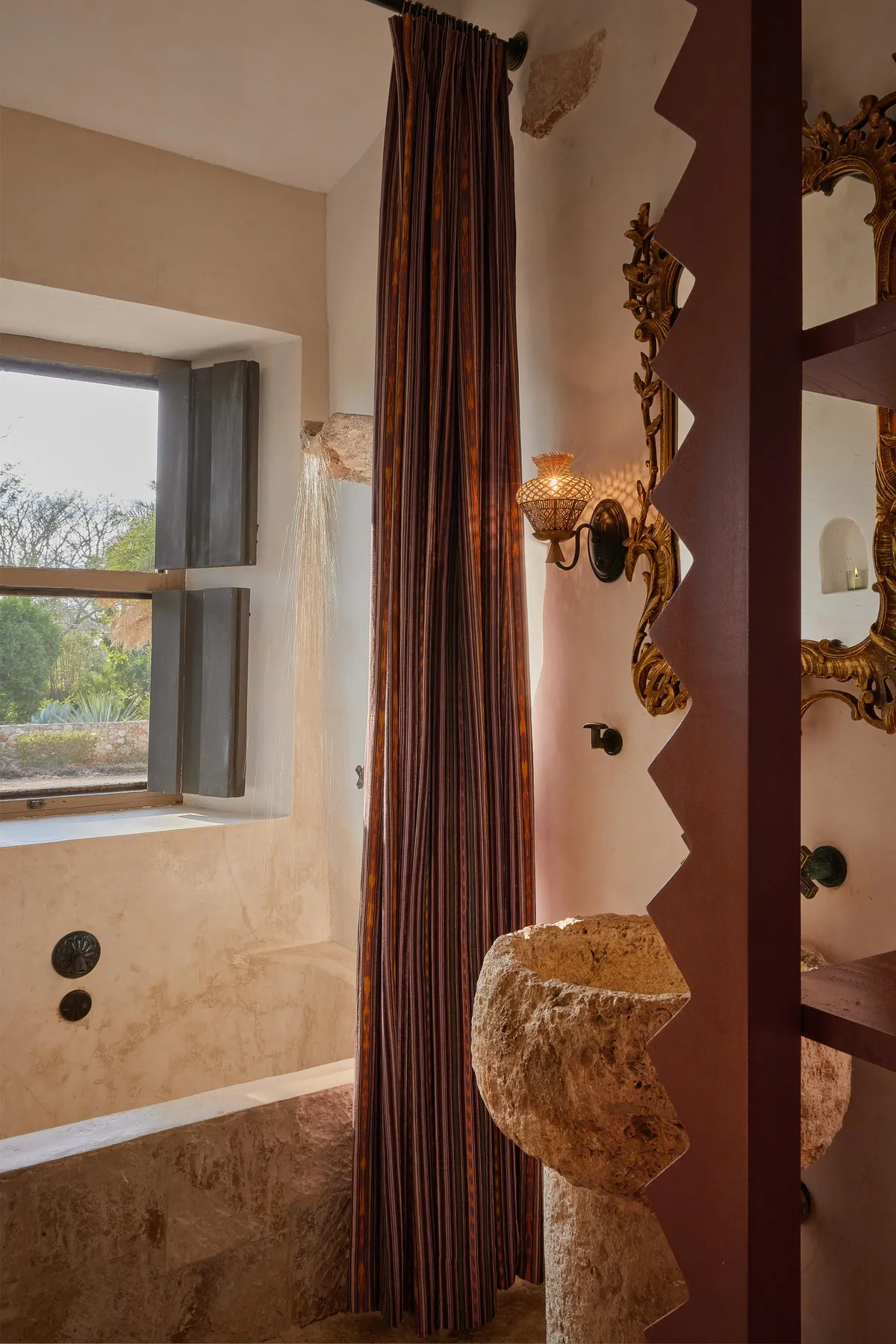 Each room has a King bed and a private bathroom with a tub and a waterfall shower.
