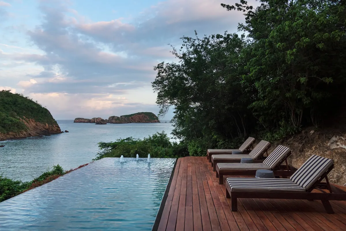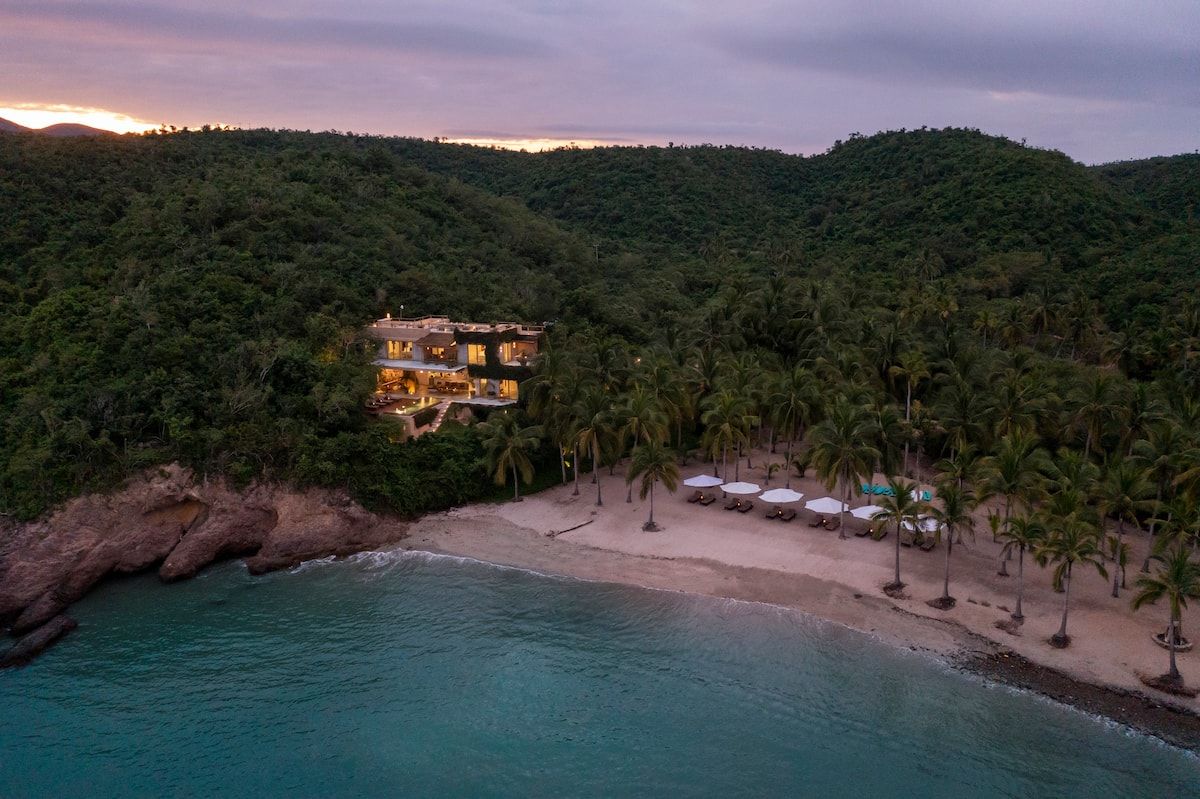 Set in a carefully crafted space that blends contemporary architecture with modern Mexican style, the villa offers expansive terraces, two infinity pools, and uninterrupted views of the Pacific—all within a secluded private bay, complete with its own beach.