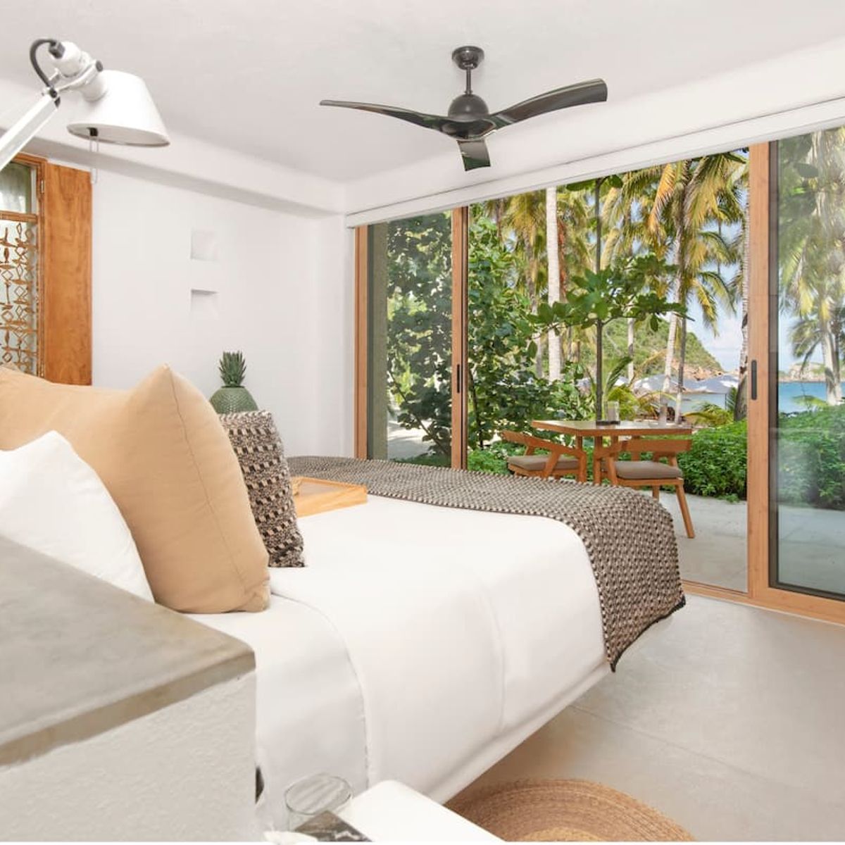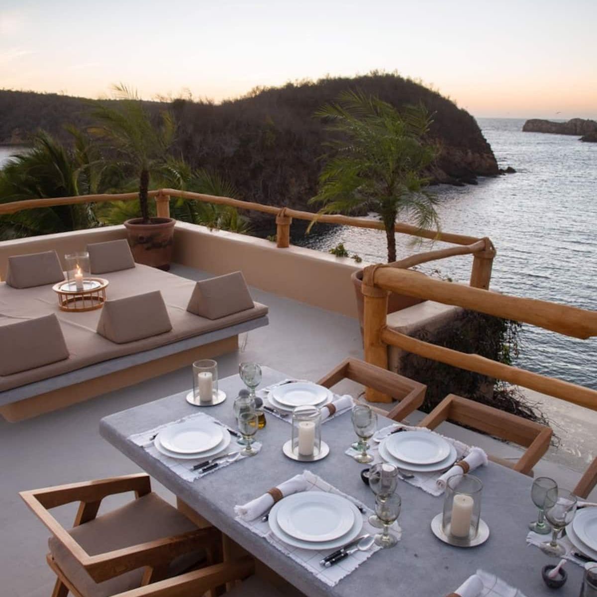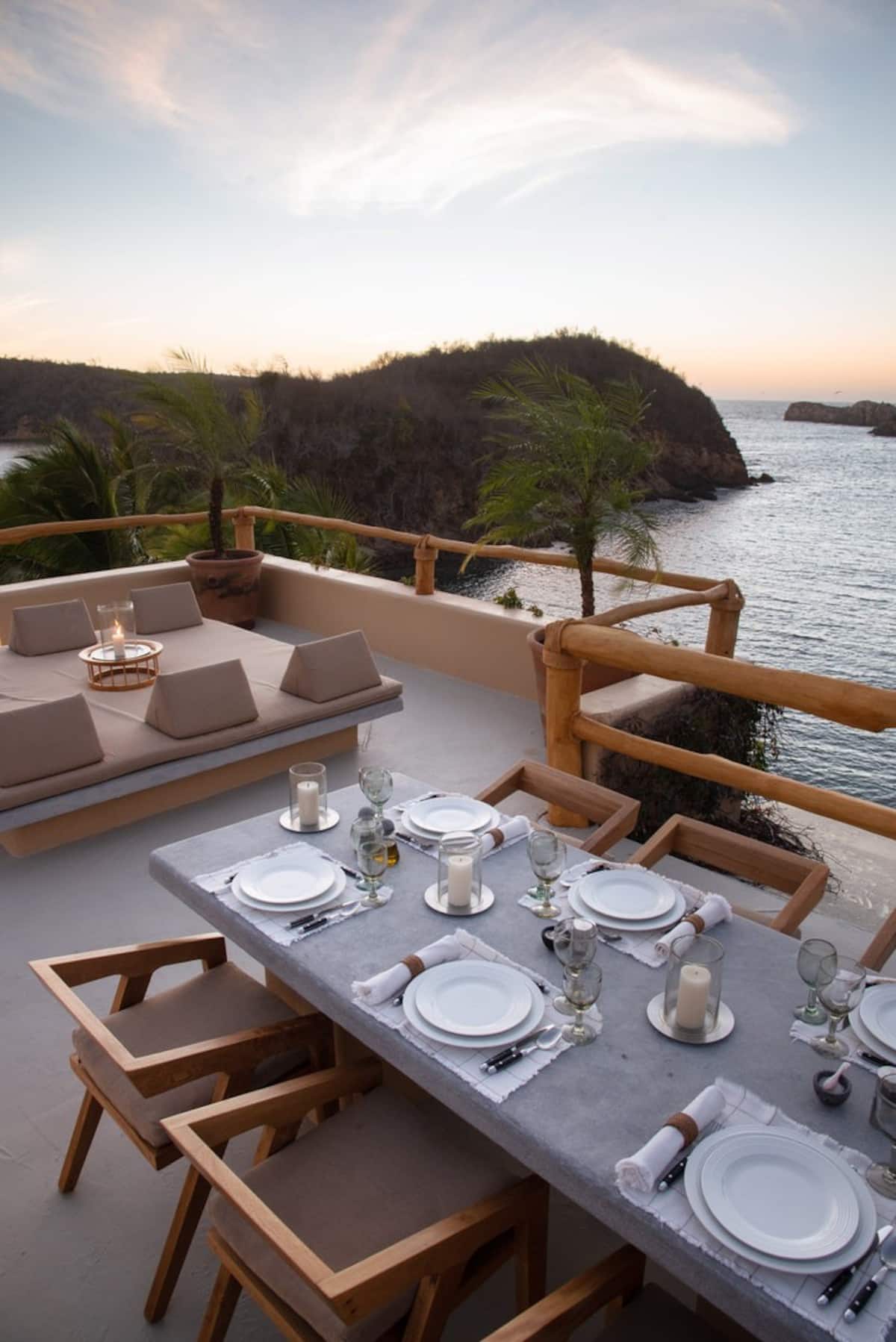 The property includes 6 total suites, accommodating up to 12 guests across six ocean-view suites, each with a private terrace. Whether you choose a single suite, a private villa, or the full estate, we curate every detail of your stay to match the season and your vision.