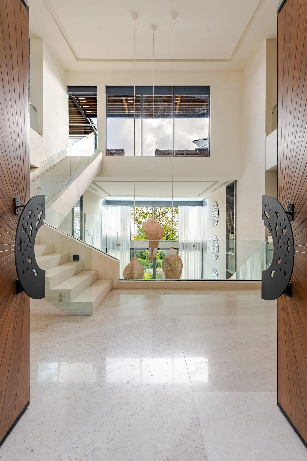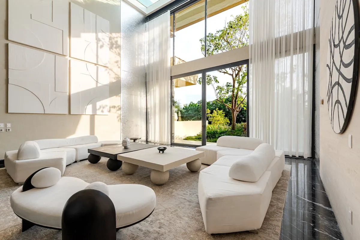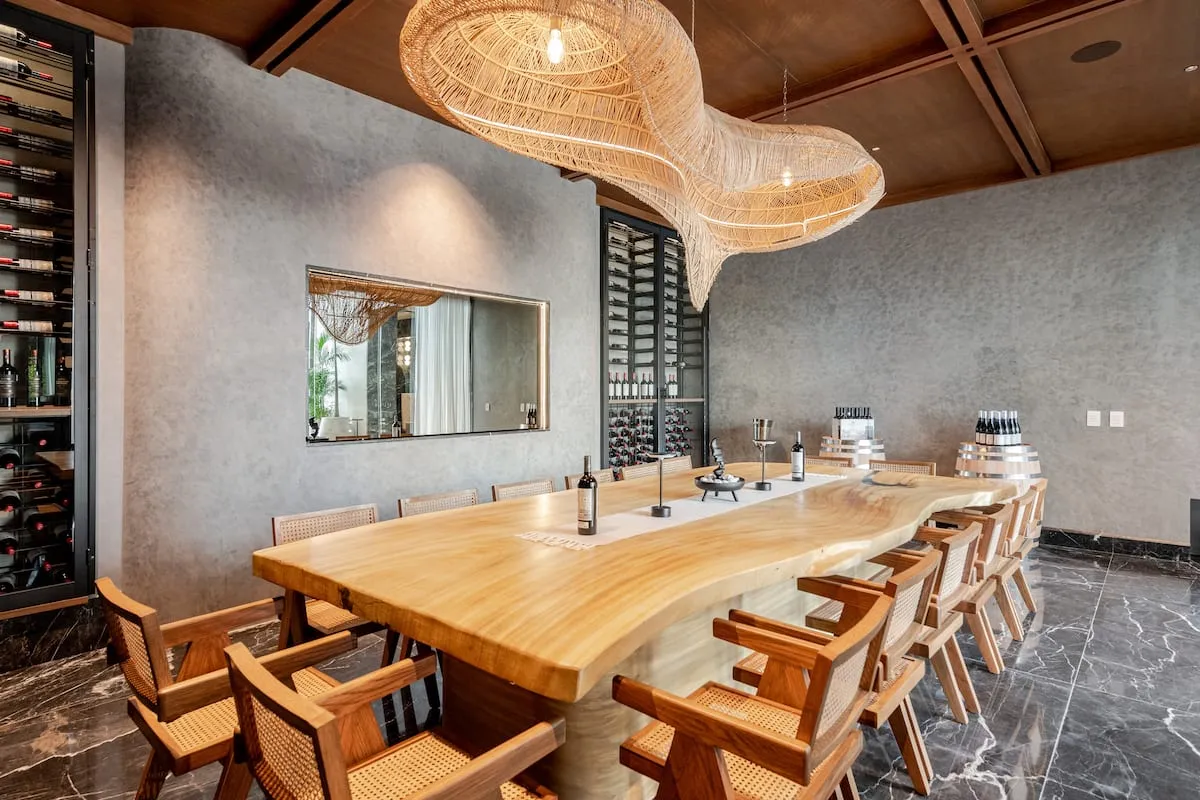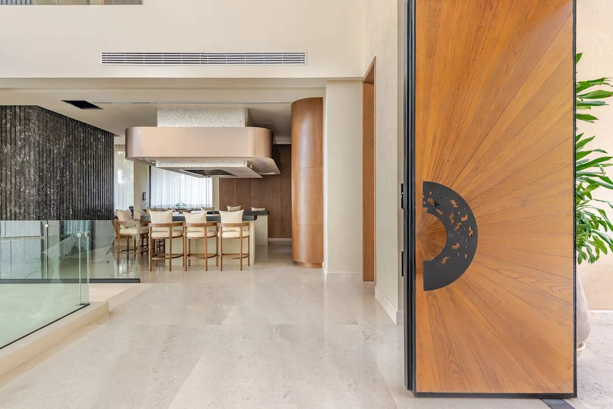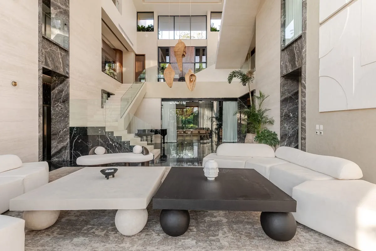 The architecture is bold yet fluid. A grand living space with a 50-foot ceiling opens entirely to the ocean breeze, dissolving the boundary between indoors and out. Natural light, scale, and materials work together to create a constant sense of openness and awe.