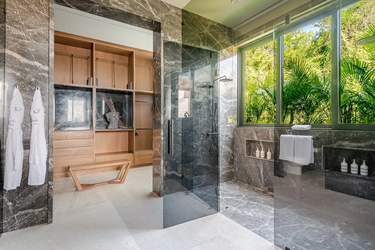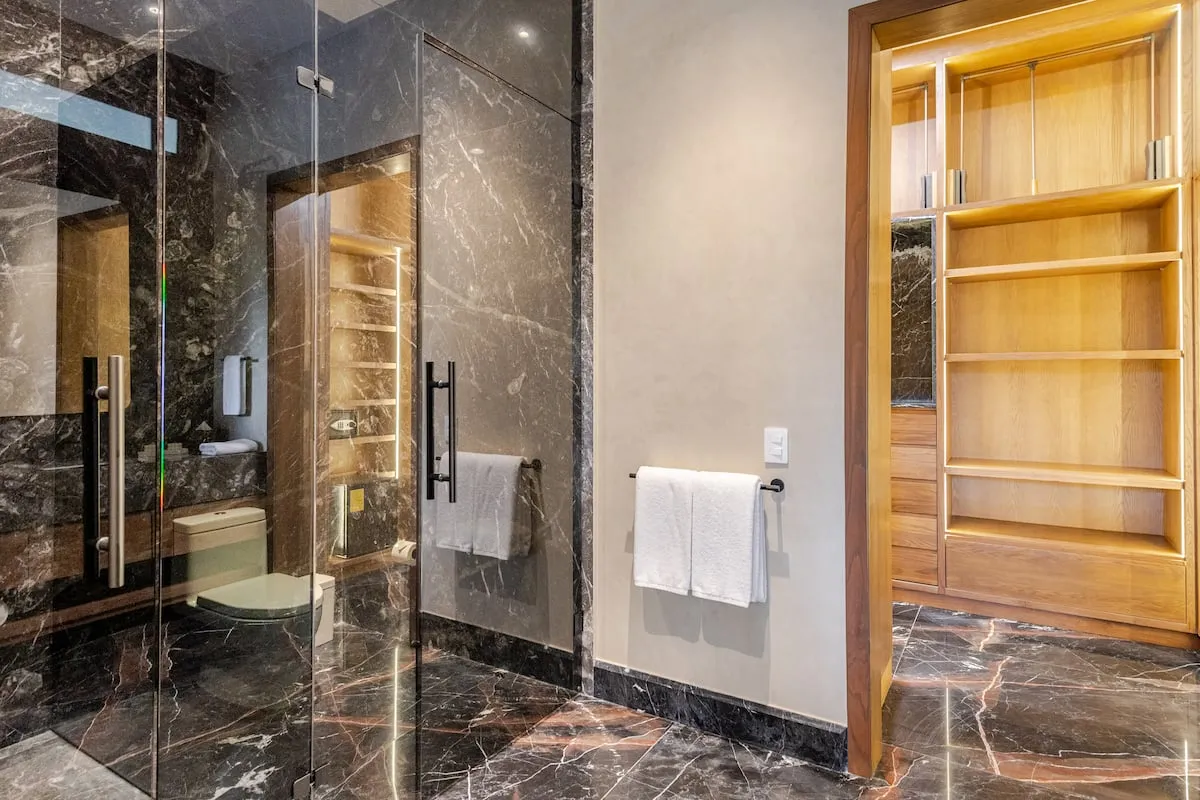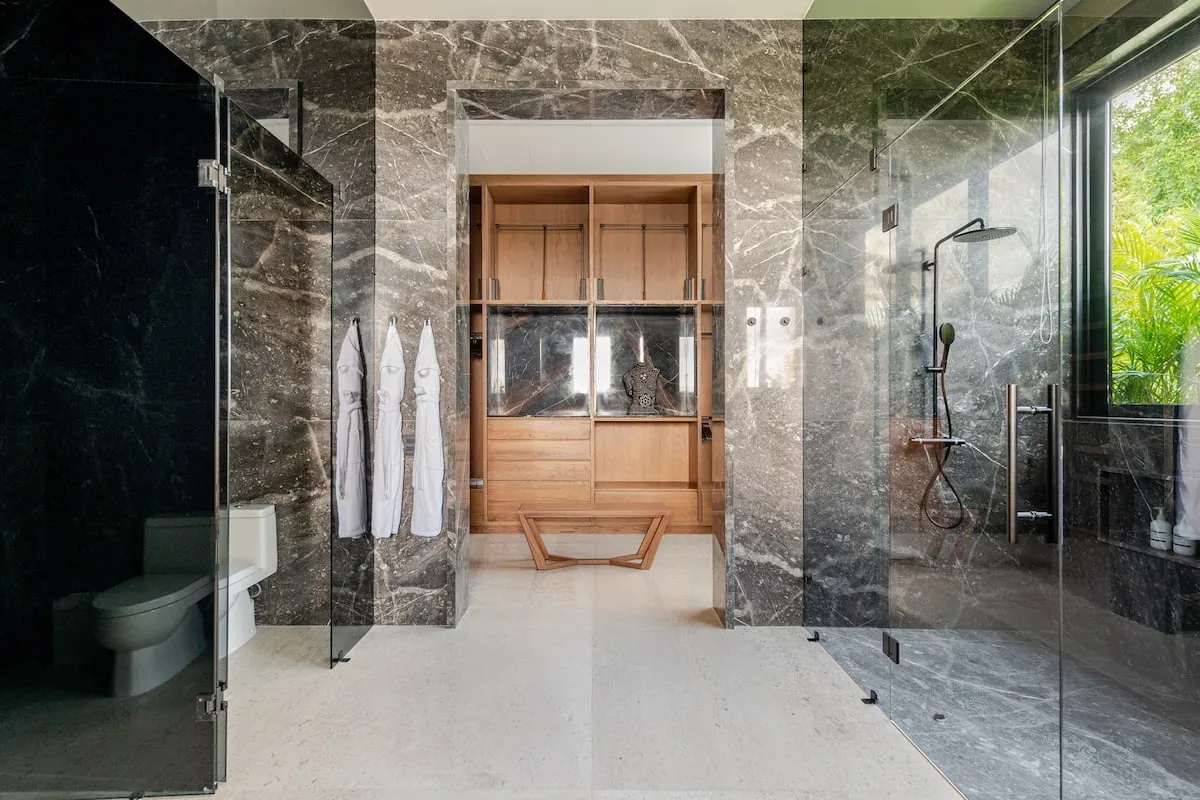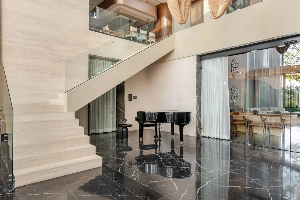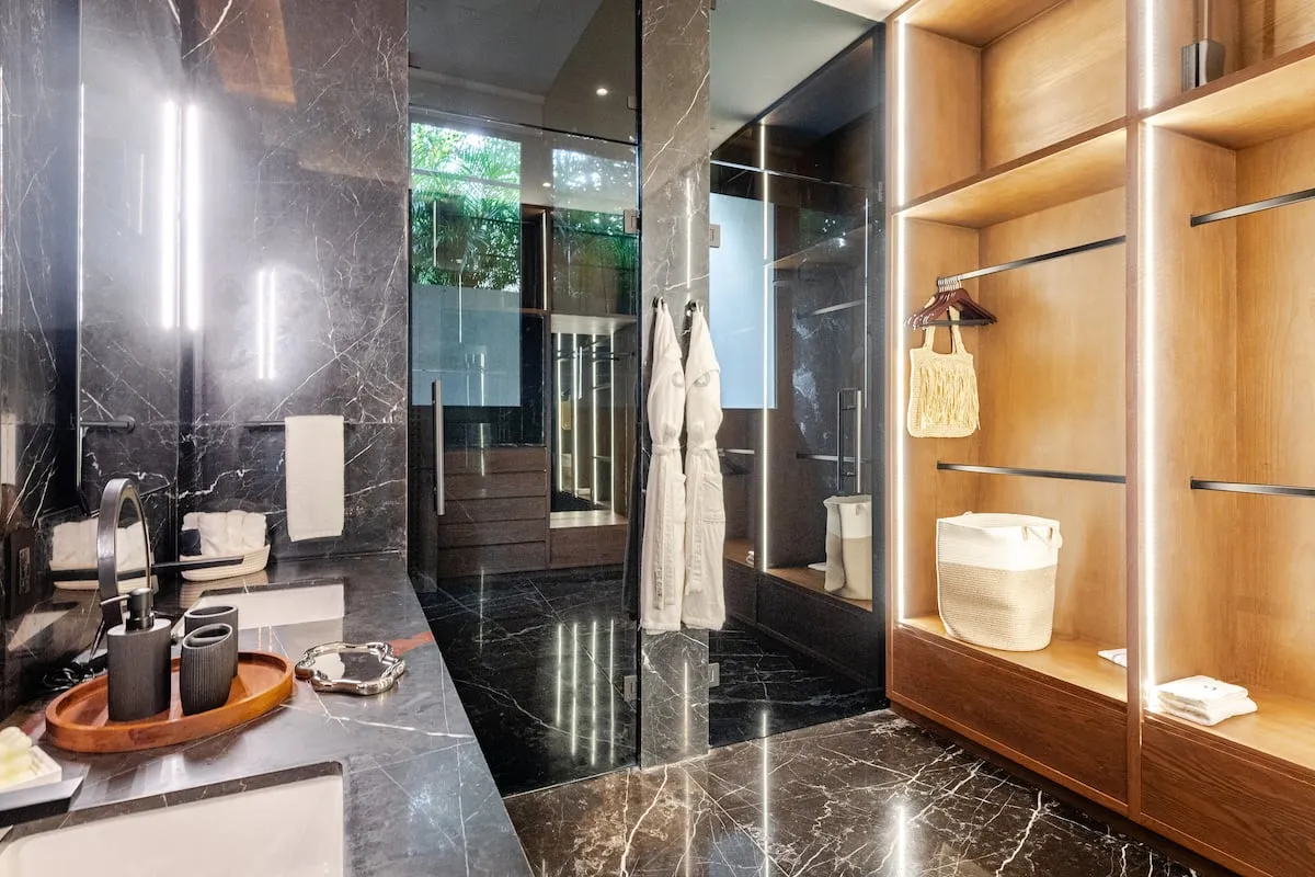 Crafted with exceptional detail, the villa features floor-to-ceiling marble, hand-finished cedar, natural stone, and a glass-bottom pool that connects levels in unexpected ways. Every element has been designed not just to impress, but to evoke—spaces that feel both grounding and expansive at once.